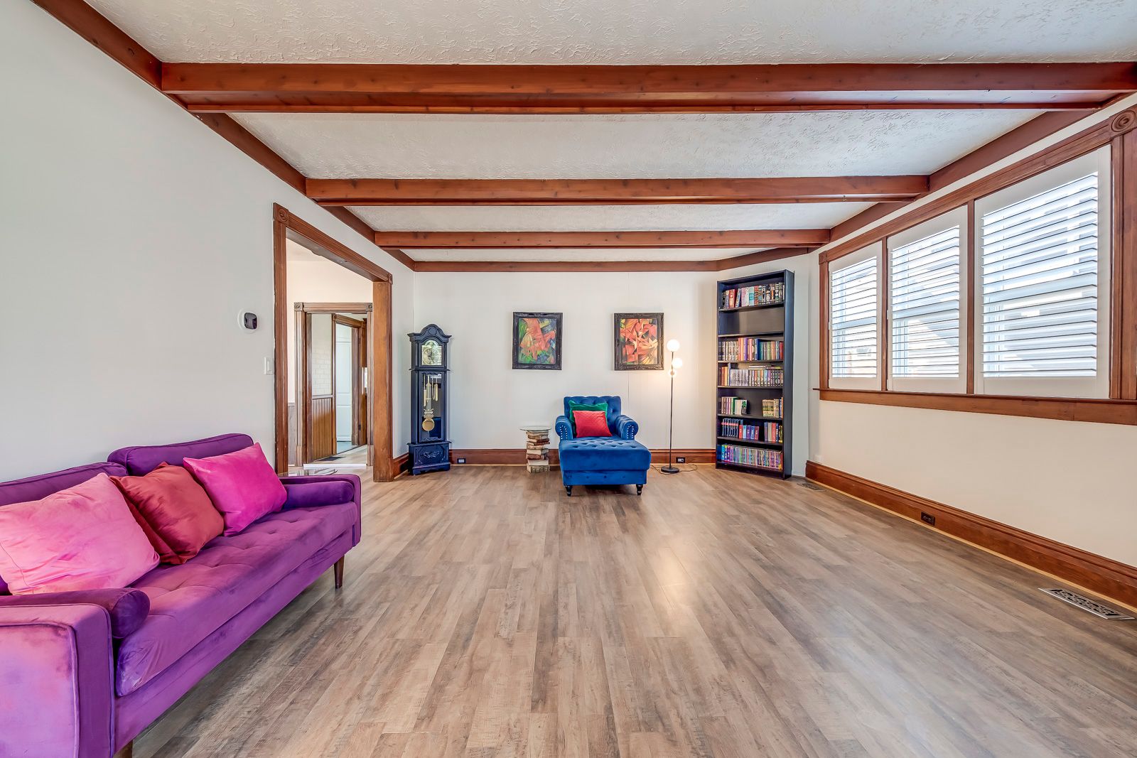Charming century home on a deep, tree-lined lot! Welcome to 4456 ellis st, offering nearly 1,600 sq ft of living space with 4 bedrooms and 2 bathrooms, blending timeless character with thoughtful modern updates, highlighted by exposed natural wood beams, california shutters, fresh paint throughout, and new flooring on the second floor. The kitchen is equipped with newer appliances including a brand new dishwasher and stove, while major updates completed in 2017 include the roof, furnace, a/c and windows, providing peace of mind for years to come. The triple-wide driveway accommodates up to four vehicles and offers space for a trailer. Situated within walking distance to the go train station, library, niagara parkway and scenic trails, this property offers the perfect combination of charm, space and convenience. Some pictures contain virtual staging.