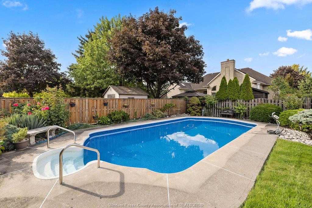 • Private backyard with a seasonal room, covered porch, and in-ground pool.
