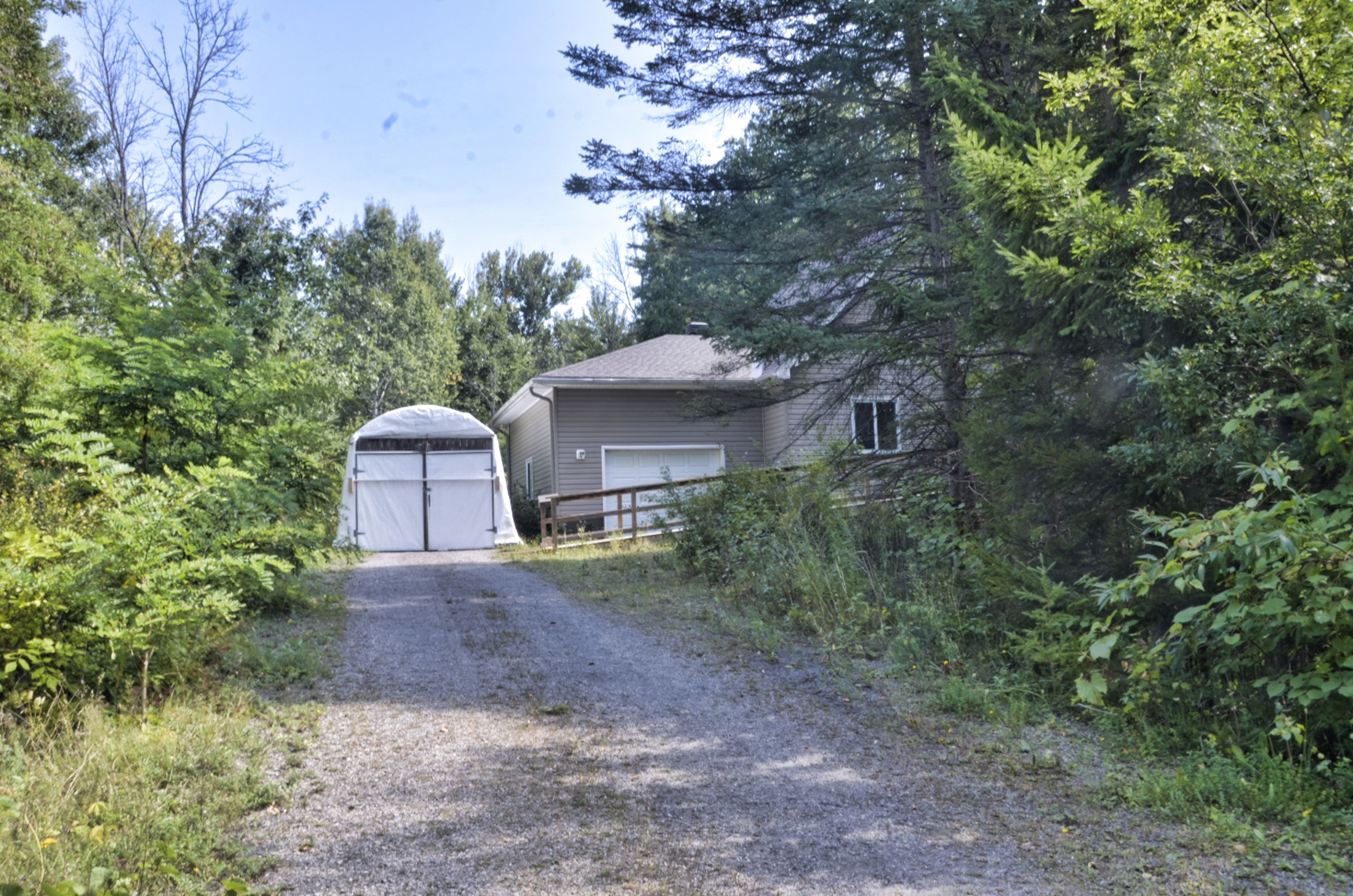 Escape to your own private 10-acre woodland sanctuary! Located just 10 minutes north of iroquois, this charming 1,790 sq. Ft. 1. 5-storey home was custom-built in 2006 and has been maintained by the original owners. Set deep back from the road with over 1,800 feet of frontage, this property offers unparalleled privacy and a true "hidden gem" feel. The main level features a cozy living room and a functional eat-in kitchen with direct access to a private backyard deck-the perfect spot to enjoy the sights and sounds of the surrounding forest. This floor also hosts two comfortable bedrooms and a spacious 5-piece bathroom, and direct access to the garage for true one level living. Head upstairs to find two more bedrooms featuring large windows that frame the lush, leafy canopy like living art. One of these rooms is currently serving as an inspired artist's studio, complemented by a convenient 2-piece bath. The living space continues in the full-height, finished basement, which offers a large family room that flows seamlessly into an open office area-ideal for those who work from home. A dedicated utility room provides extra storage and organization. With an attached single-car garage and a landscape where the trees grow right up to your doorstep, this home is a nature lover's dream. Whether you are looking for a creative retreat, a family home, or a peaceful escape from the city, this property offers the space and serenity you've been searching for. Don't miss your chance to own this unique piece of paradise! Allow 24 hours for irrevocable time. Approximate annual utility costs: electric $1600, propane $2730 (includes kitchen stove, bbq & hwt).