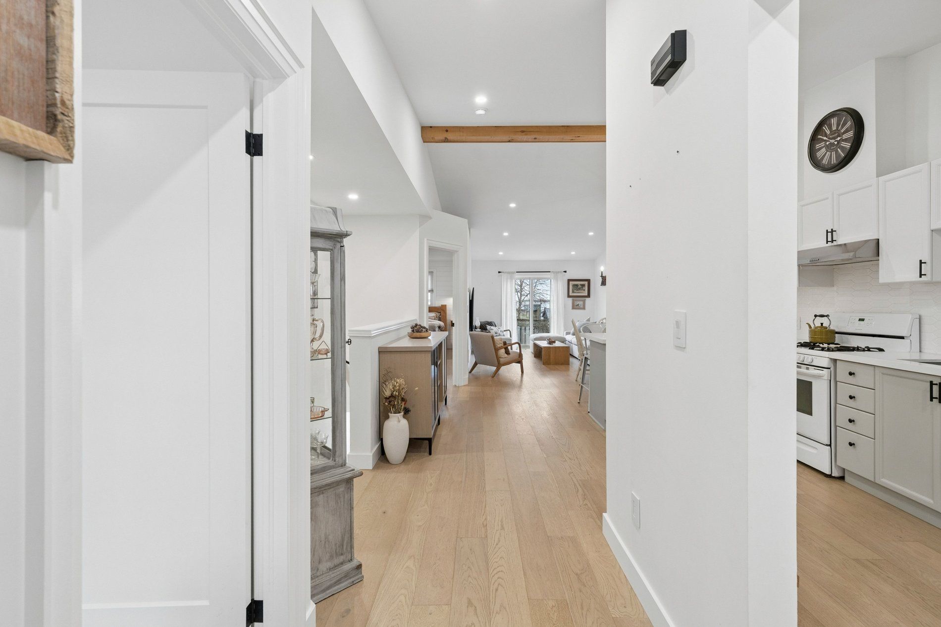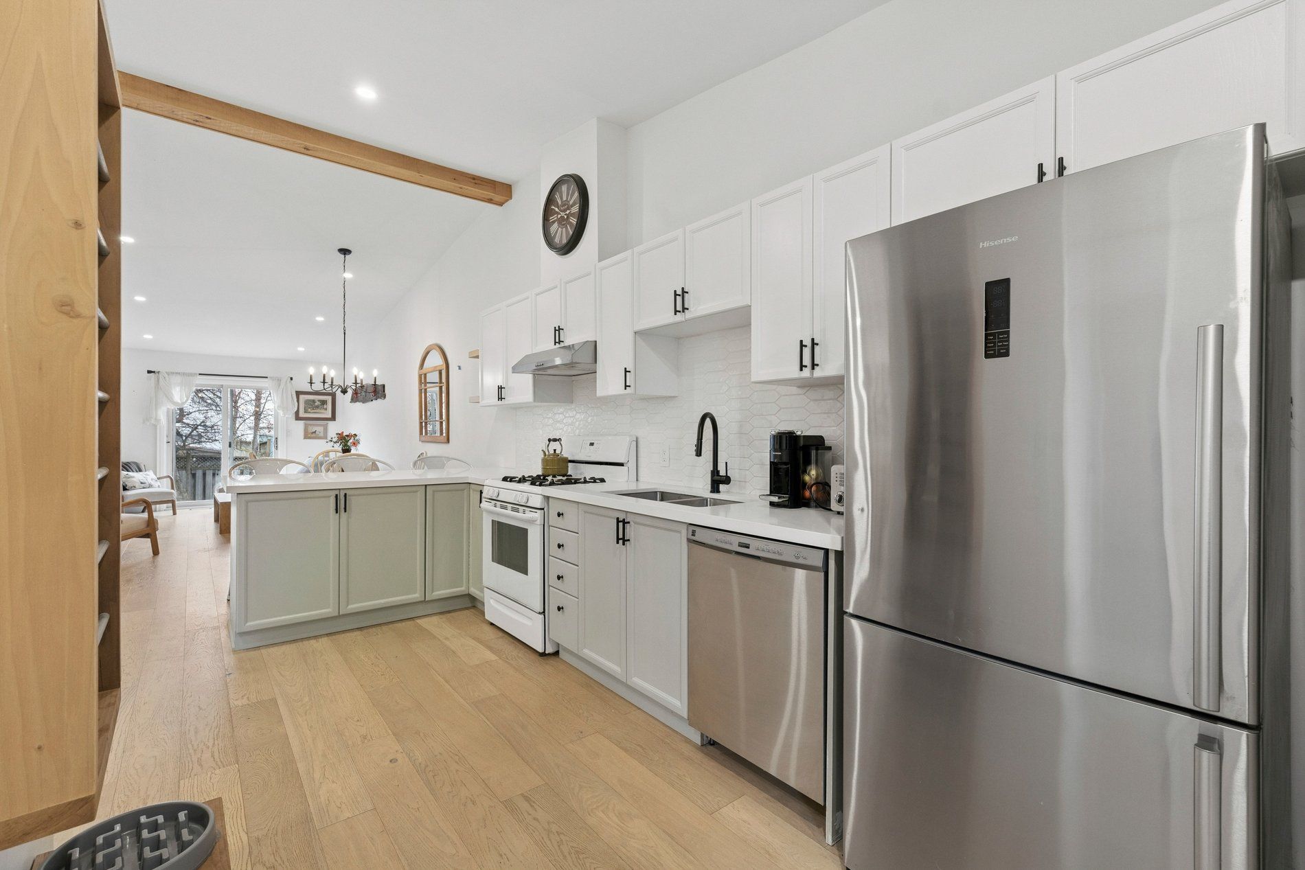 Rarely offered 2+1-bedroom, 2-bathroom freehold bungalow townhome in beamsville with no condo fees. Fully renovated with luxury finishings and move-in ready; offering easy single-level living. The main floor features an open layout with vaulted ceilings, new pot lights, and engineered hardwood throughout. The eat-in kitchen has updated countertops, backsplash, modern fixtures, and a built-in pantry. Sliding doors from the living room lead to a private, fully fenced backyard with a large deck. The primary bedroom includes a built-in closet and its own ensuite. Both bathrooms recently renovated. The partially finished basement offers an additional bedroom and plenty of storage space. Attached garage with inside entry and a long private driveway. Conveniently located within minutes from the qew and close to downtown beamsville, parks, schools, and local wineries.