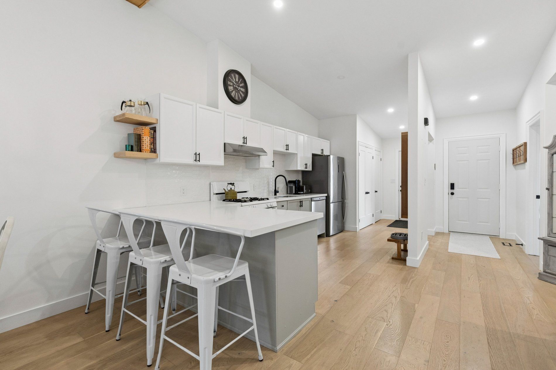 • Open layout with vaulted ceilings and engineered hardwood floors.