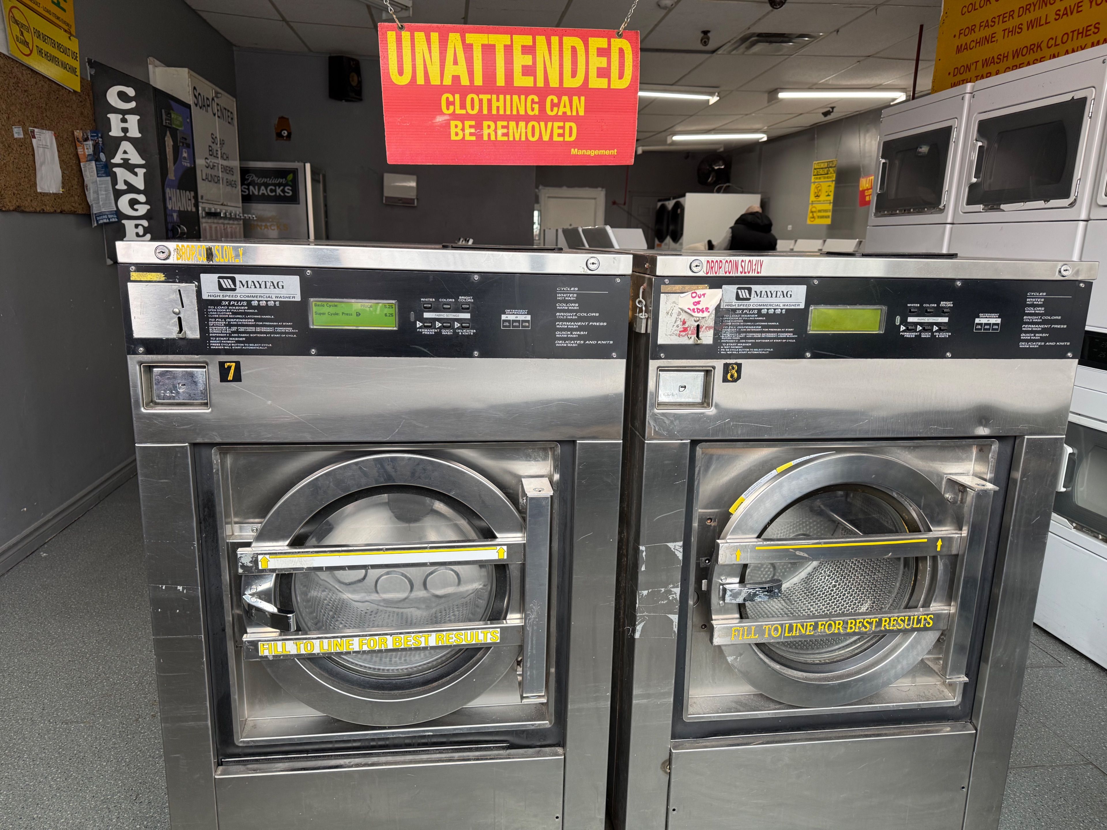• Commercial coin laundry operating hours from 6 am to 10:30 pm.