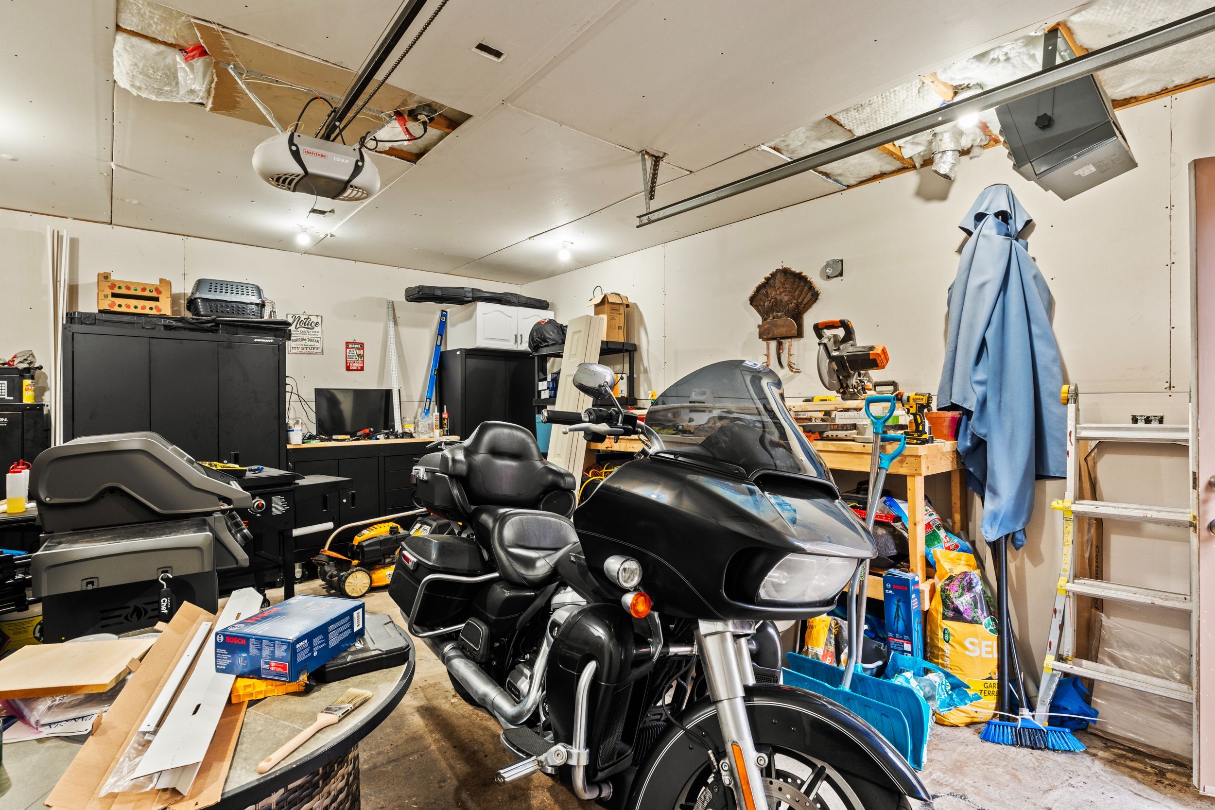 • Heated garage provides year-round flexibility for hobbies or workshop.