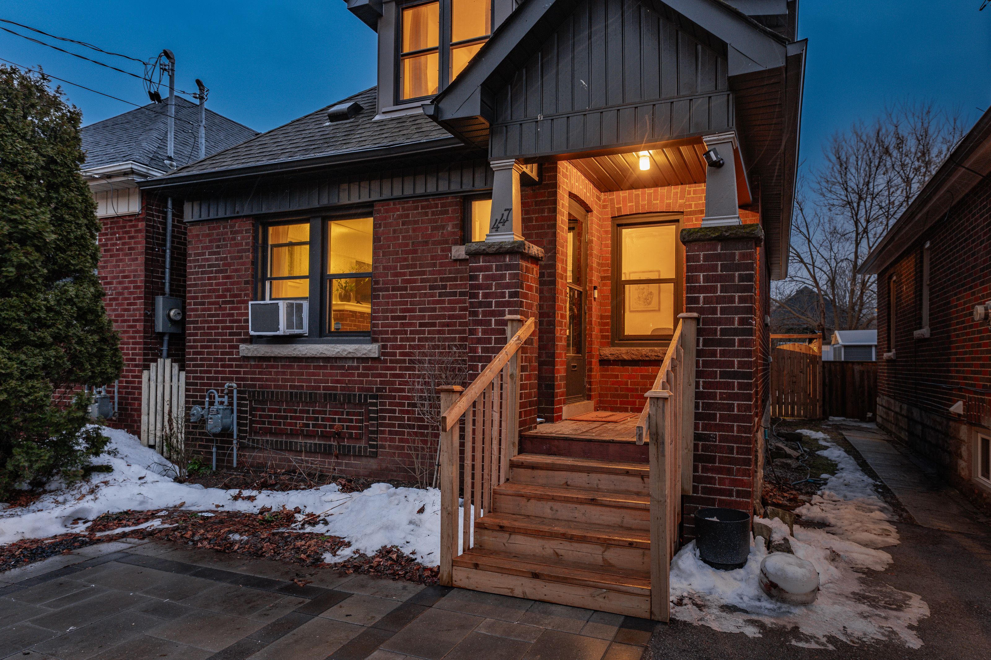 Welcome to this beautifully updated 3-bedroom home in the vibrant and family-friendly kirkendall neighbourhood. Thoughtfully renovated and move-in ready, this property offers a blend of modern upgrades and timeless character. The main floor features a bright bedroom and a stylish 4-piece bathroom complete with ceramic tile and a classic cast-iron tub. The eat-in kitchen is a standout, showcasing soft-close cabinetry and newer appliances including dishwasher, microwave hood range, fridge, and flat-top stove. Perfect for both everyday living and entertaining. The second floor offers two additional bedrooms with a renovated 3-piece bath, while the unfinished basement provides flexible bonus space with upgraded plumbing (2022), ideal for a rec room, home office, gym, or storage. Extensive updates include eaves and soffits (2022), interlock driveway and walkway (2024), fencing and shed (2022), select new windows, and a digital thermostat. Fully fenced and ideally located just steps from locke street south, parks, schools, transit, fine dining, and entertainment, this home delivers lifestyle, comfort, and long-term value in one of hamilton's most sought-after communities.