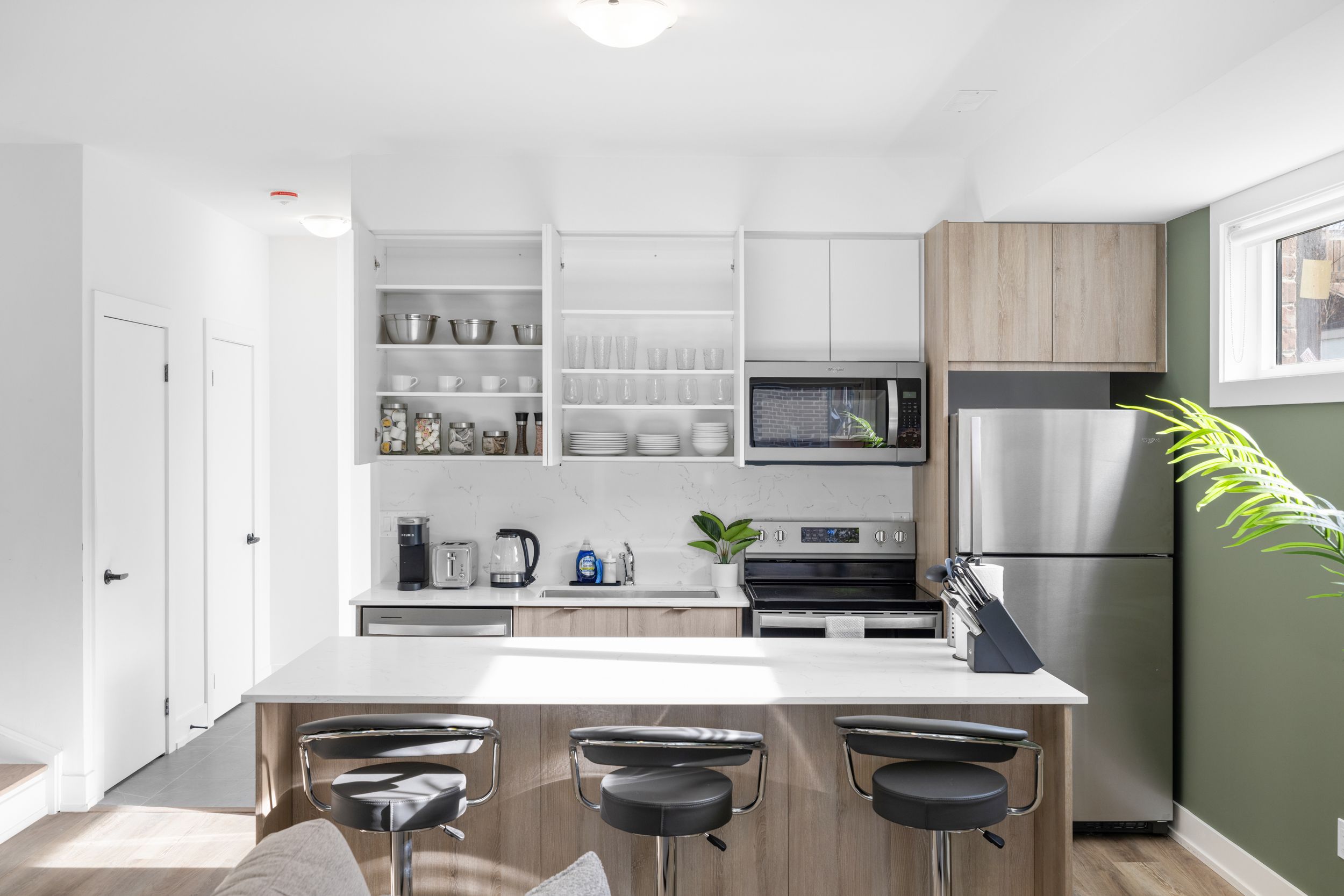 A fully-furnished, bright and modern laneway home in the heart of roncesvalles. This well-laid-out 3-bedroom, 3-bathroom unit offers 1,274 sq ft of living space over two levels. The main floor features an open-concept living and dining area with laminate flooring, connected to a modern kitchen with stainless steel appliances, a centre island, and backsplash. Ensuite laundry is included. All three bedrooms are located on the second floor for added privacy. The primary bedroom features a walk-in closet and 3-piece ensuite. A second 3-piece bathroom serves the remaining bedrooms, with an additional 3-piece bathroom on the main floor. The unit includes one parking space. Located steps from roncesvalles shops, cafés, and restaurants, with easy access to ttc, bloor go station, dufferin mall, high park, grocery stores, and specialty markets. Short-term rental options available.