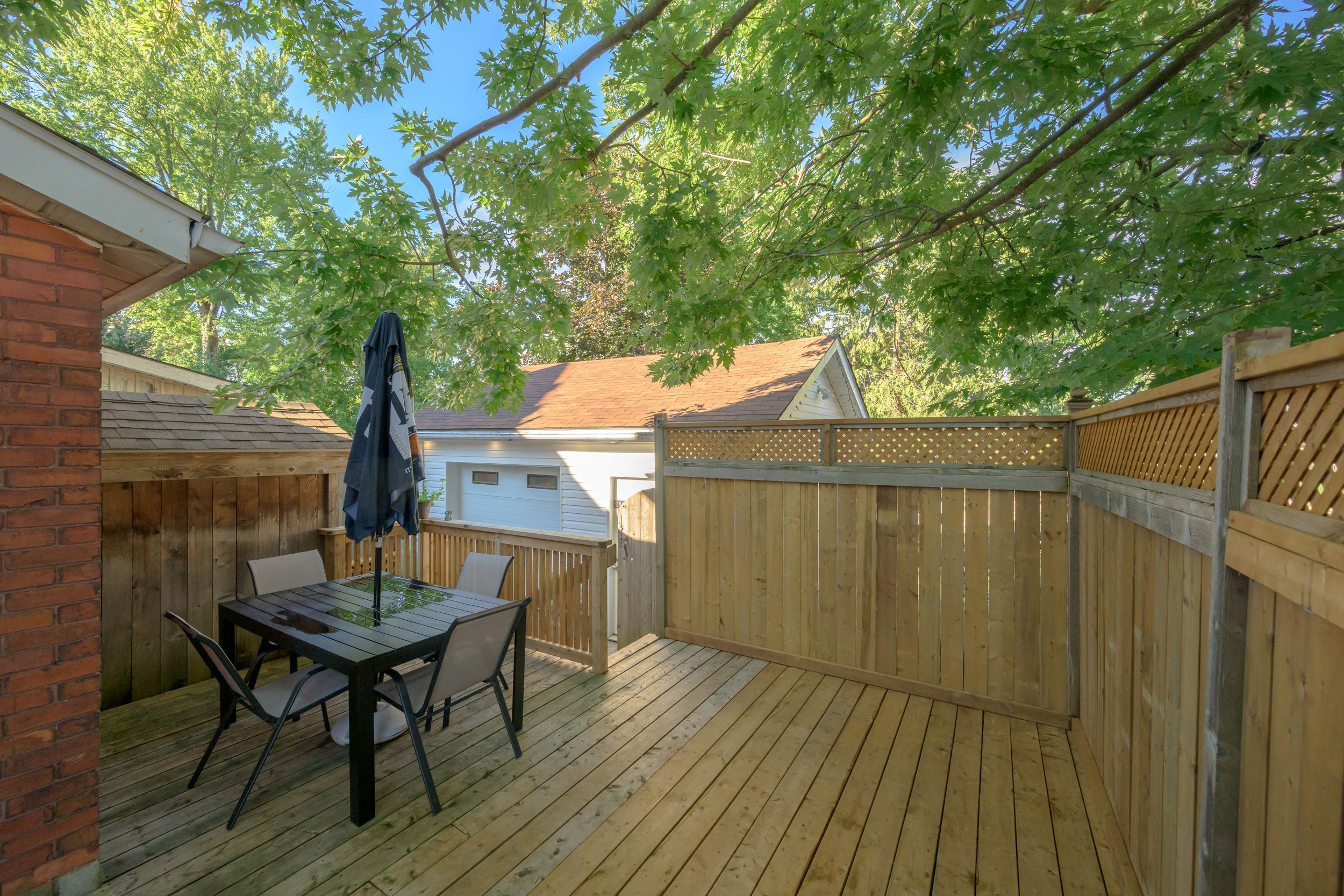 • Great outdoor spaces with a side/rear deck, patio, and a large shed.