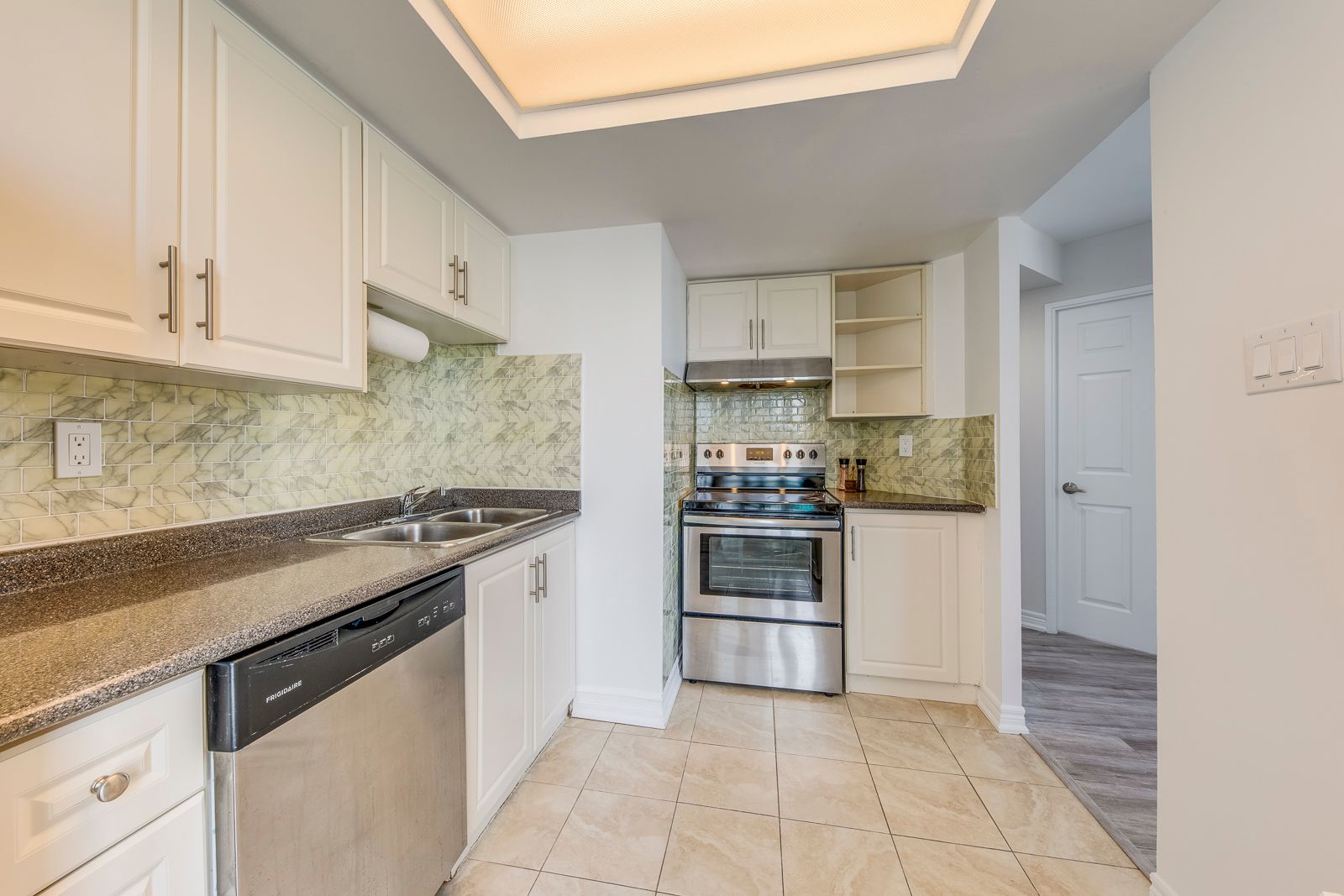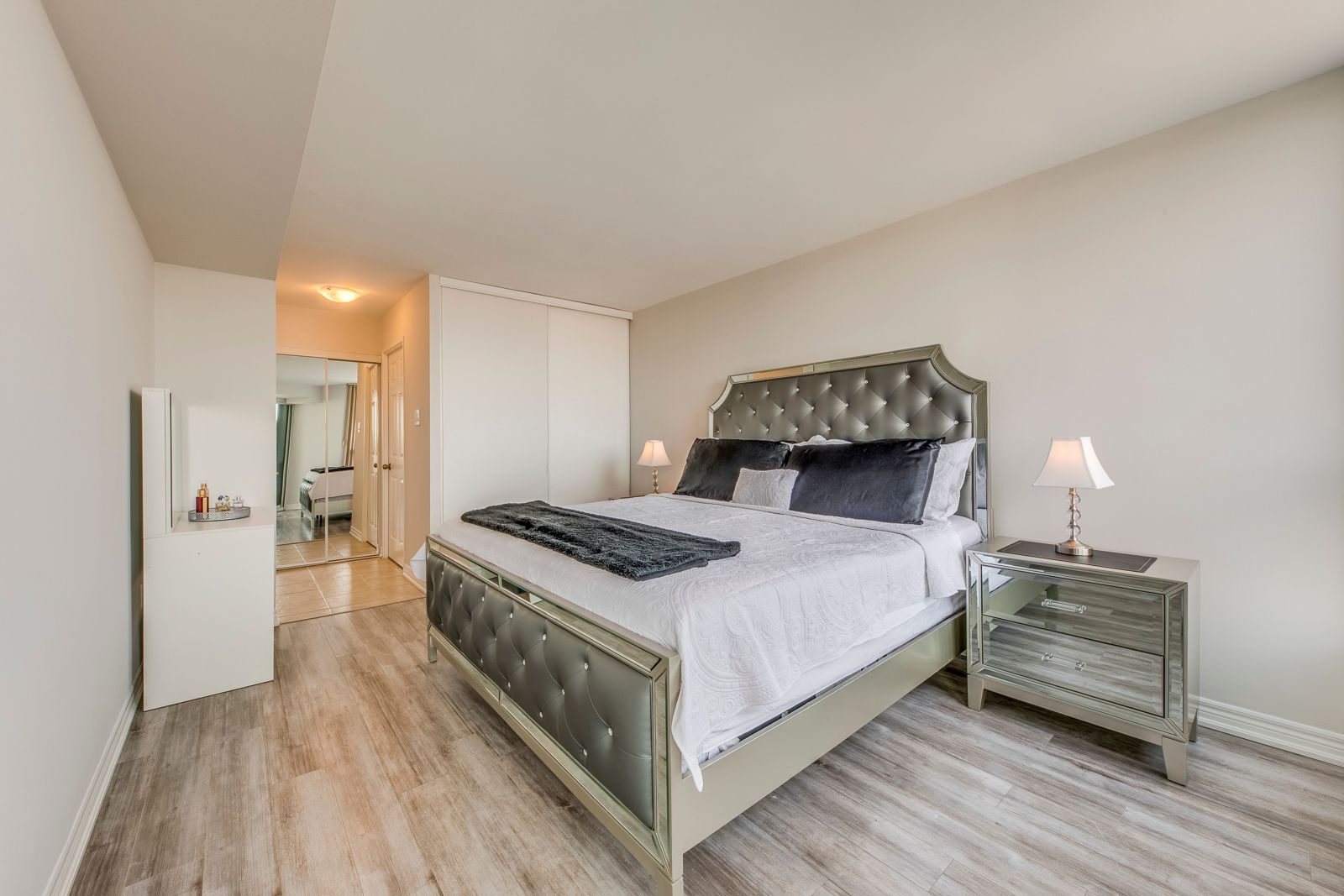 Great value! Bright and spacious 2-bedroom condo with solarium and 2 full bathrooms, featuring an unobstructed view and abundant natural light. This freshly painted unit offers laminate floors and updated kitchen cabinets and updated vanities creating a clean and move-in ready space. Functional layout ideal for families or investors. Includes one parking space and one locker for added convenience enjoy excellent building amenities including an indoor pool, fully equipped gym, party room and tennis court and much more. Perfect for an active lifestyle. Prime location just minutes to square one shopping centre, close to hwy403 for easy commuting, close proximity to schools, public transit, parks and restaurants. Exceptional opportunity to own in a highly desirable area with everything at your doorstop.