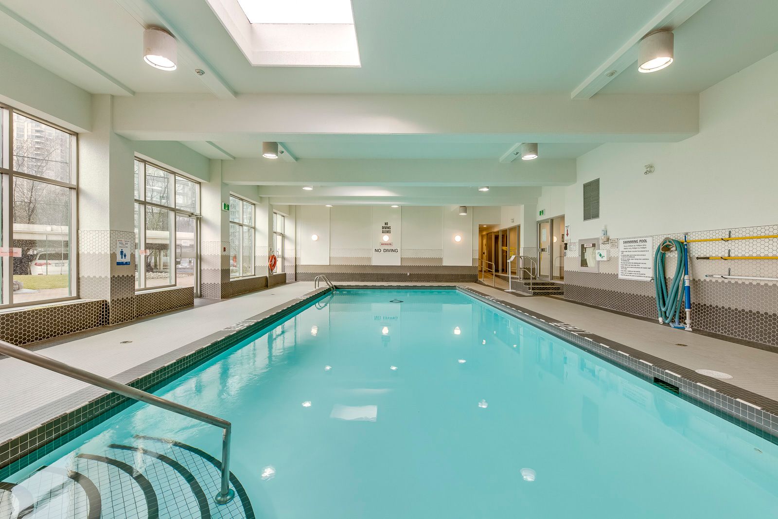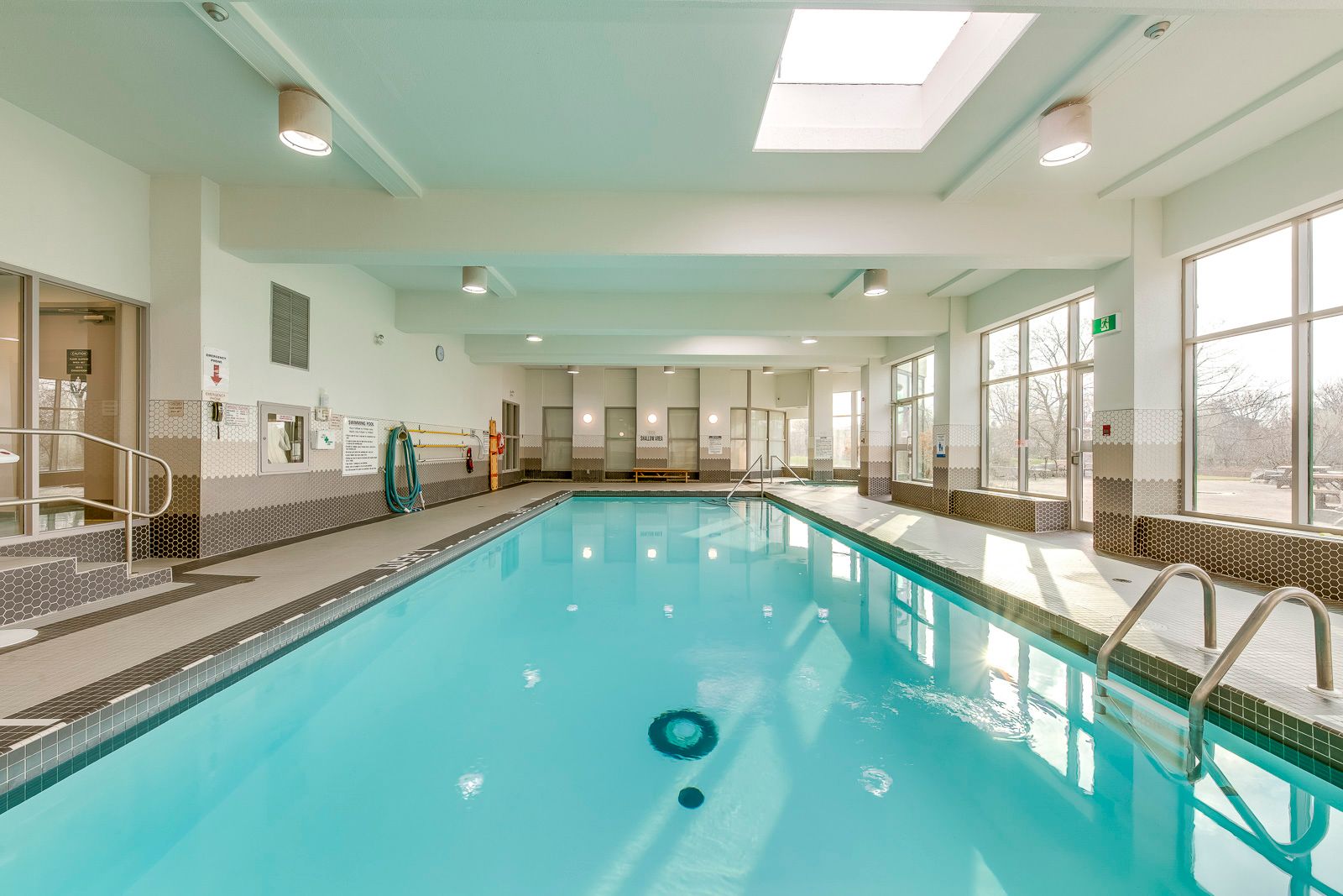 • Building amenities include a gym, indoor pool, and tennis court.