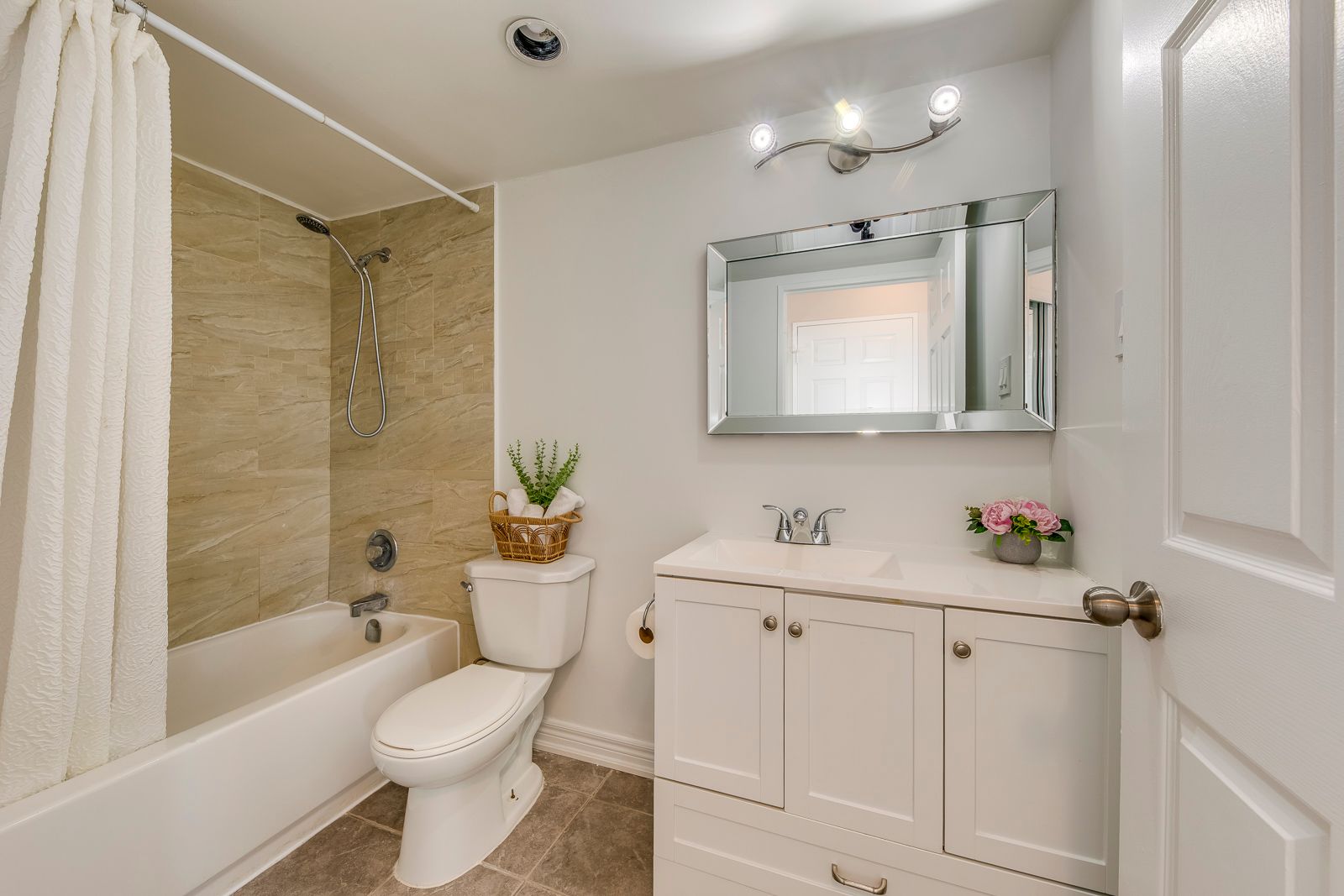 • Freshly painted with updated kitchen cabinets and bathrooms.