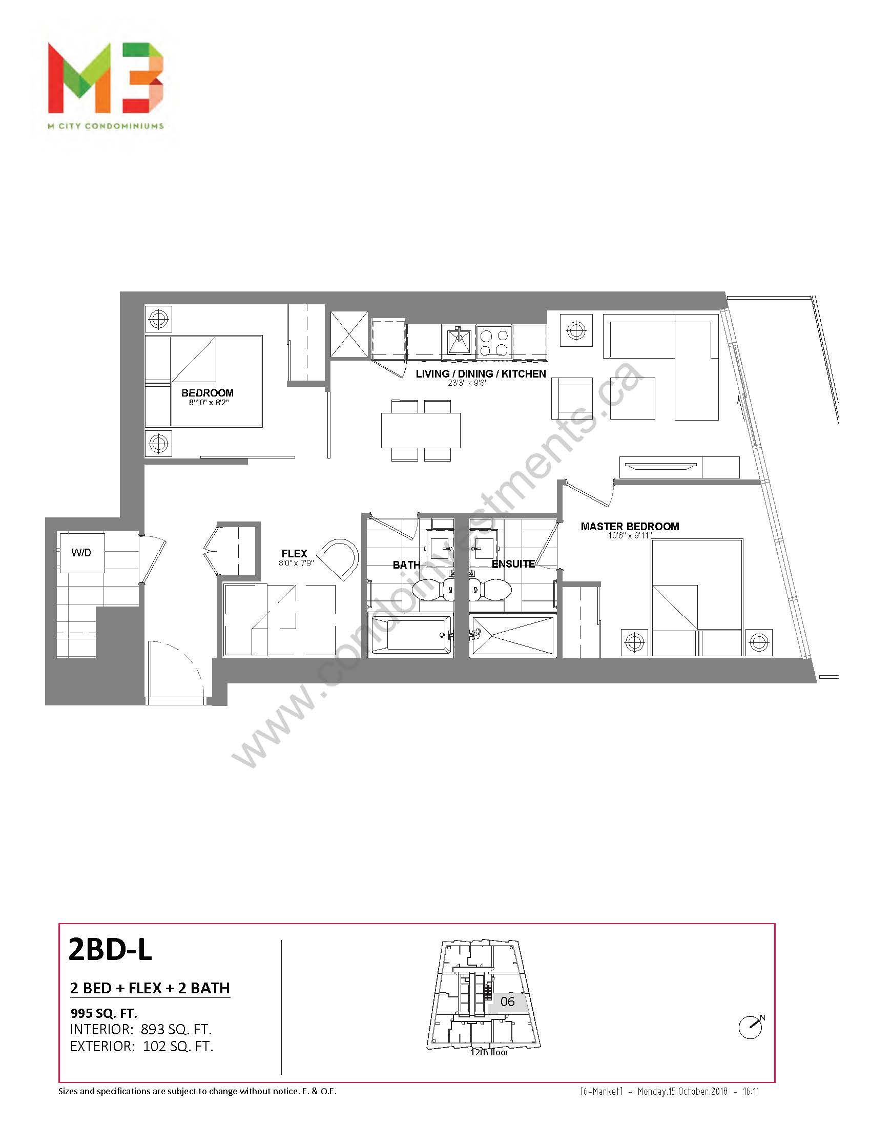 Live elevated at brand new m city iii and experience everything this landmark tower has to offer. This spacious 2 bedroom flex, 2 bathroom suite offers 995 sq ft including the balcony, delivering the kind of layout and square footage that actually feels like a home. The open-concept living and dining area runs wide across the suite, framed by floor-to-ceiling windows that bring in natural light throughout the day. The sleek kitchen is finished with quartz countertops, contemporary cabinetry, and integrated stainless steel appliances for a clean, modern aesthetic. The primary bedroom features a private ensuite and comfortable proportions, while the second bedroom is positioned separately for privacy. The enclosed flex space is a true bonus, ideal for a proper home office, study area, nursery, or additional storage. Two full bathrooms and ensuite laundry complete a highly functional layout. Residents of m city iii enjoy premium amenities including concierge service, fitness facilities, pool, and beautifully designed common spaces. Steps to square one, celebration square, dining, transit, and with quick access to hwy 403, 401, and the upcoming lrt, this is downtown mississauga living at its best.