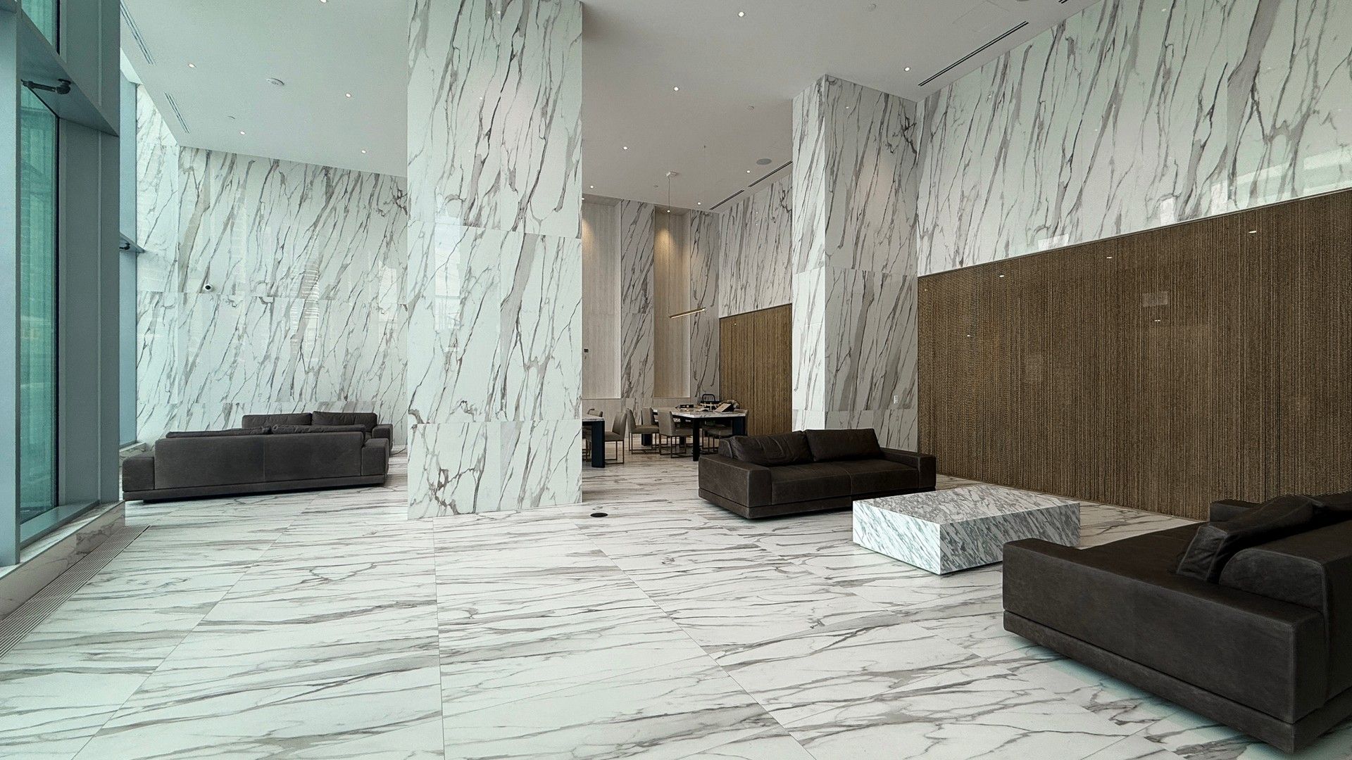 • Modern finishes and floor-to-ceiling windows create a bright, spacious living area.