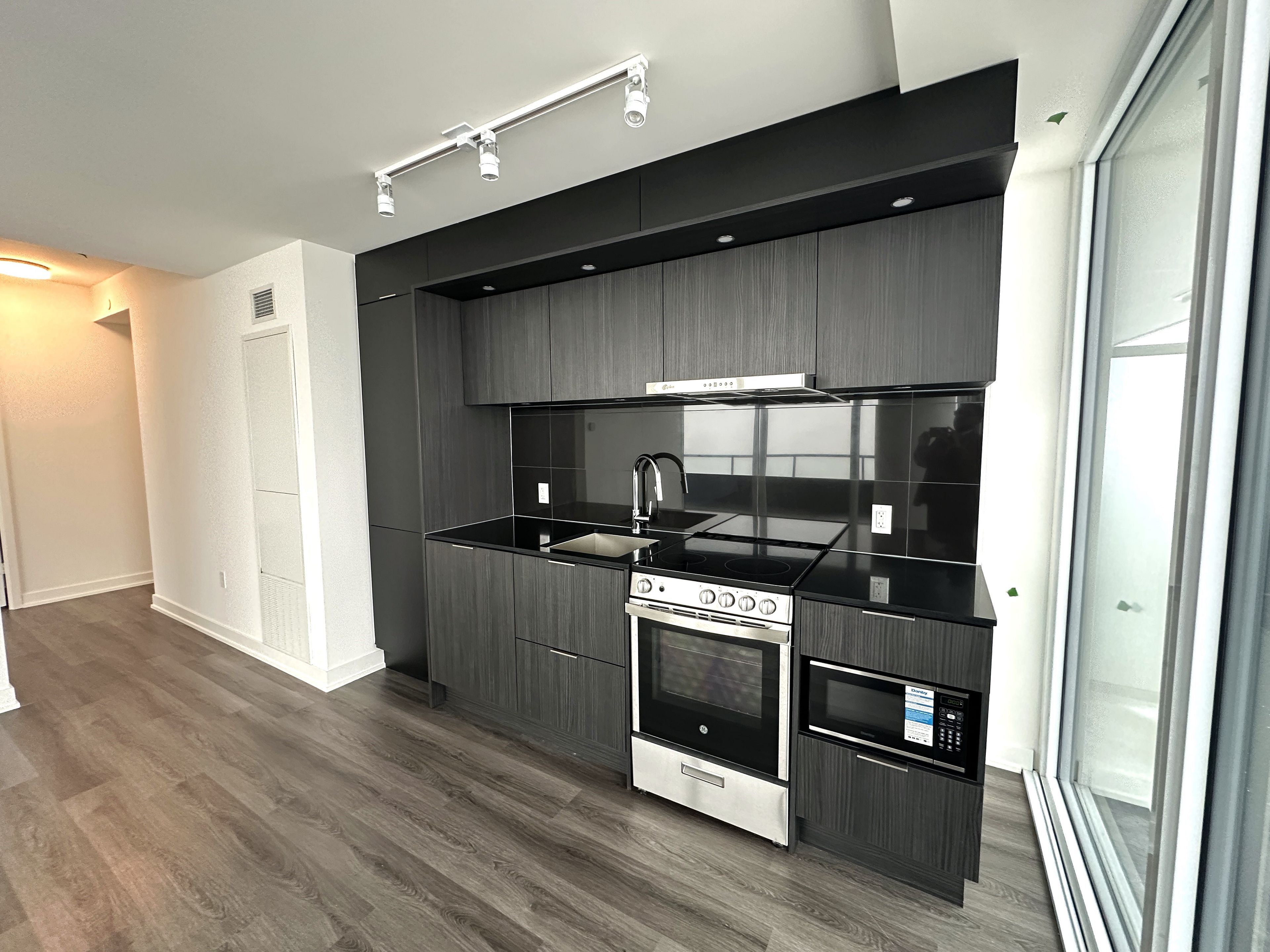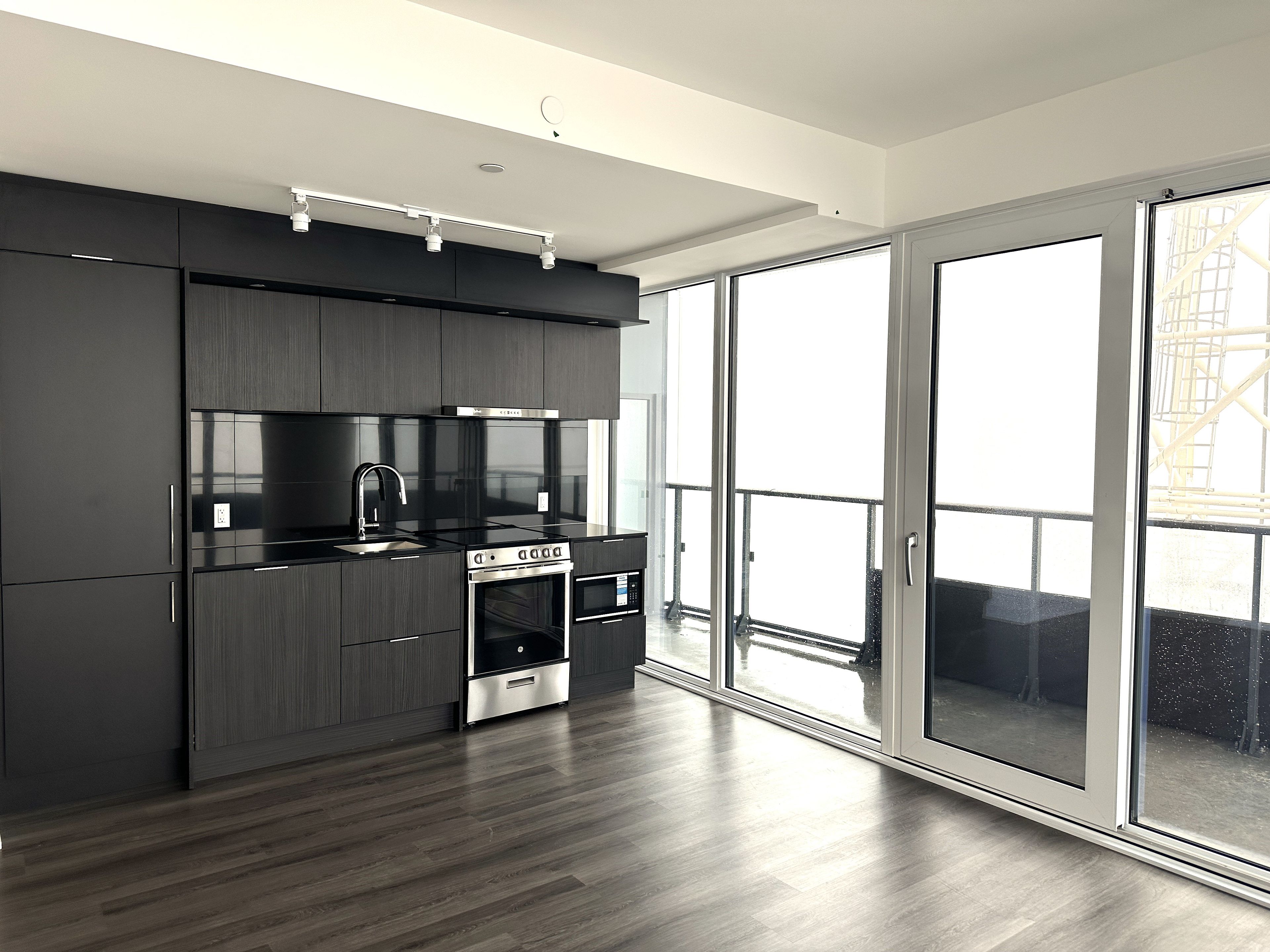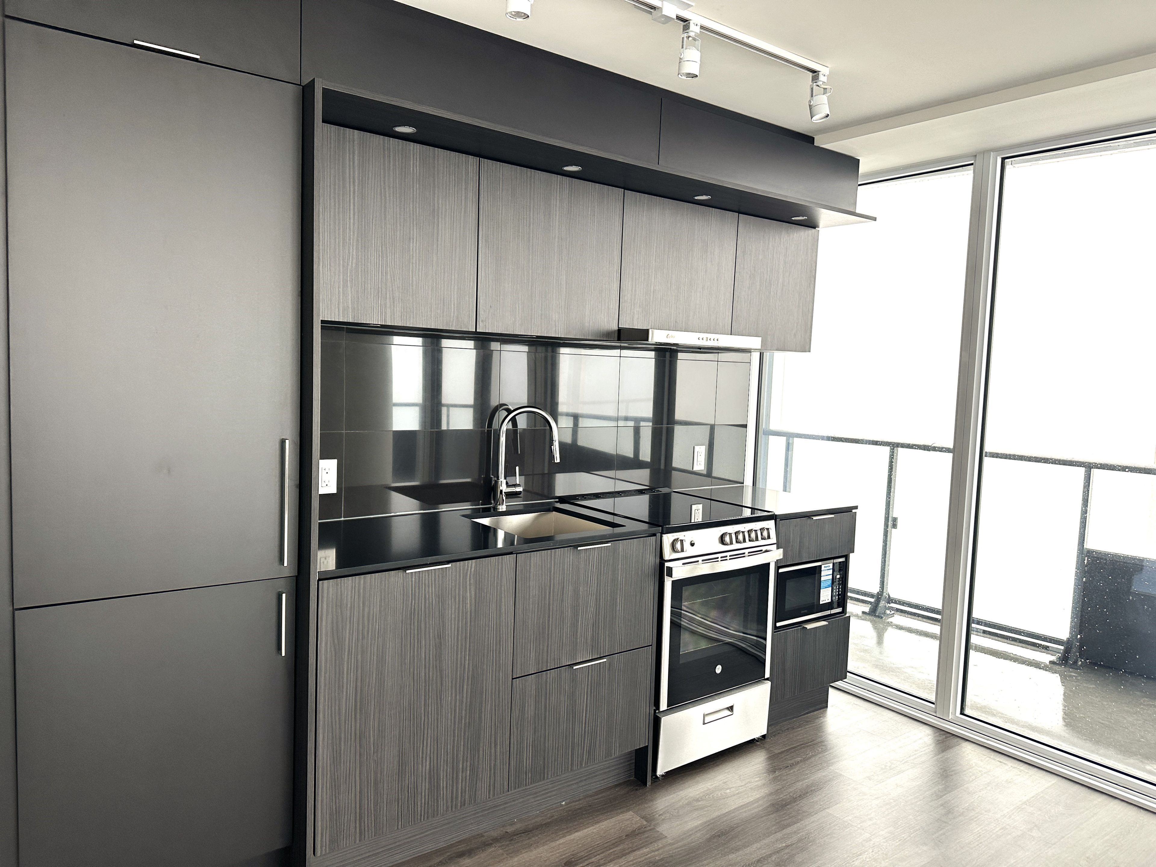 • New corner condo with stunning city and Lake Ontario views from a wrap-around balcony.