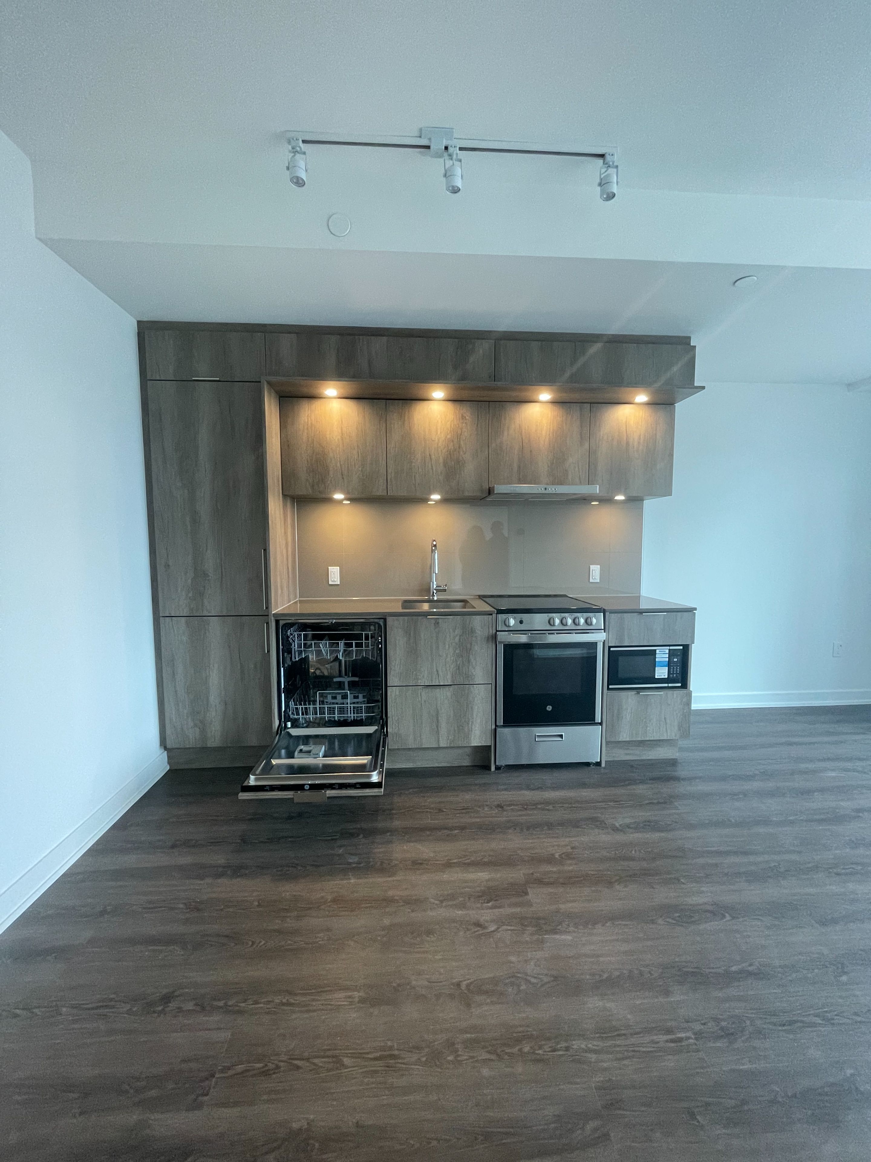 ***rogers xfinity internet, smart lock access to the suite, 1 underground parking space & 1 locker are included in the rent*** experience refined urban living in this never-lived-in residence at the iconic m3 tower, mississauga's tallest and most prestigious address. Rented on the 34th floor, this elegant 1bedroom + den suite captures breathtaking panoramic views of the city skyline and lake ontario. Thoughtfully designed with a seamless open-concept layout, the suite features floor-to-ceiling windows that bathe the interior in natural light, complemented by sophisticated finishes and contemporary design throughout. The sleek, modern kitchen is appointed with brand-new stainless steel appliances and stylish cabinetry, perfect for both everyday living and entertaining. A versatile den offers the ideal space for a private home office or study, while the spacious bedroom provides a serene retreat. Step onto your private balcony to enjoy morning coffee or unwind with spectacular sunset views. Residents enjoy access to premium amenities including a state-of-the-art fitness centre, indoor pool, elegant party lounge, and24-hour concierge and security services. Perfectly situated in the heart of mississauga's vibrant downtown, just steps to square one, fine dining, transit, parks, sheridan college, and more, with effortless access to major highways. A rare opportunity to live in one of the city's most anticipated luxury residences. This home is owned by genuinely kind and thoughtful landlords who take pride in creating a positive living experience. If you're someone who values calling a place "home", this is the perfect fit!