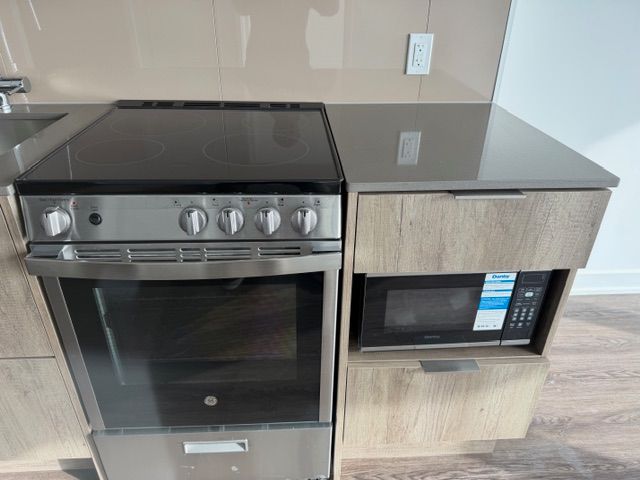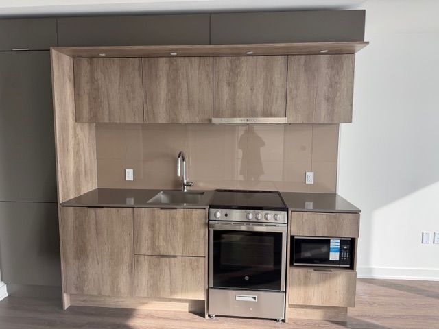Brand new one-bedroom condo! Experience luxury living in this iconic m city 3 condominium, an award-winning architectural masterpiece in the heart of mississauga. This stylish studio unit boasts a bright and functional open-concept layout, highlighted by 9-foot ceilings and floor-to-ceiling windows that flood the space with natural light. The modern kitchen features high-end built-in appliances, sleek cabinetry, and a contemporary design perfect for urban living. The unit is finished with laminate flooring and an oversized 4-piece bathroom, adding both comfort and elegance. Enjoy being minutes away from square one shopping mall, kariya park, t&t supermarket, transit hubs, major highways, restaurants, entertainment. Don't miss this gem!