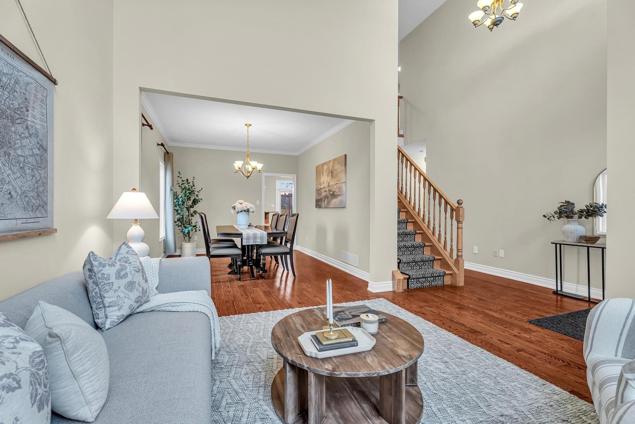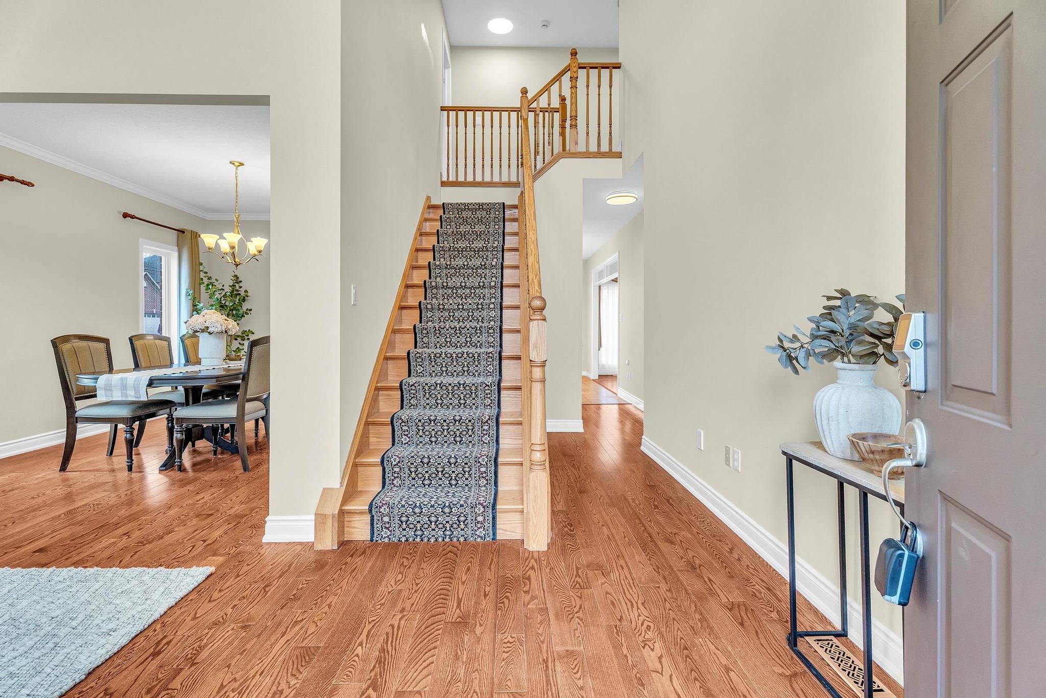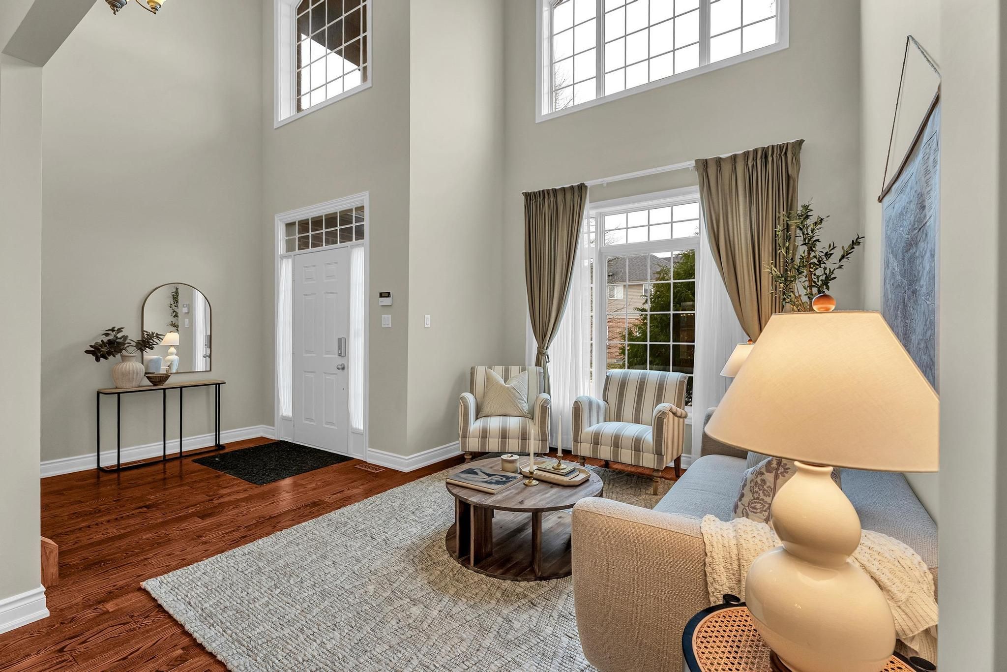 • Bright foyer with 17-foot ceilings and large windows for natural light.