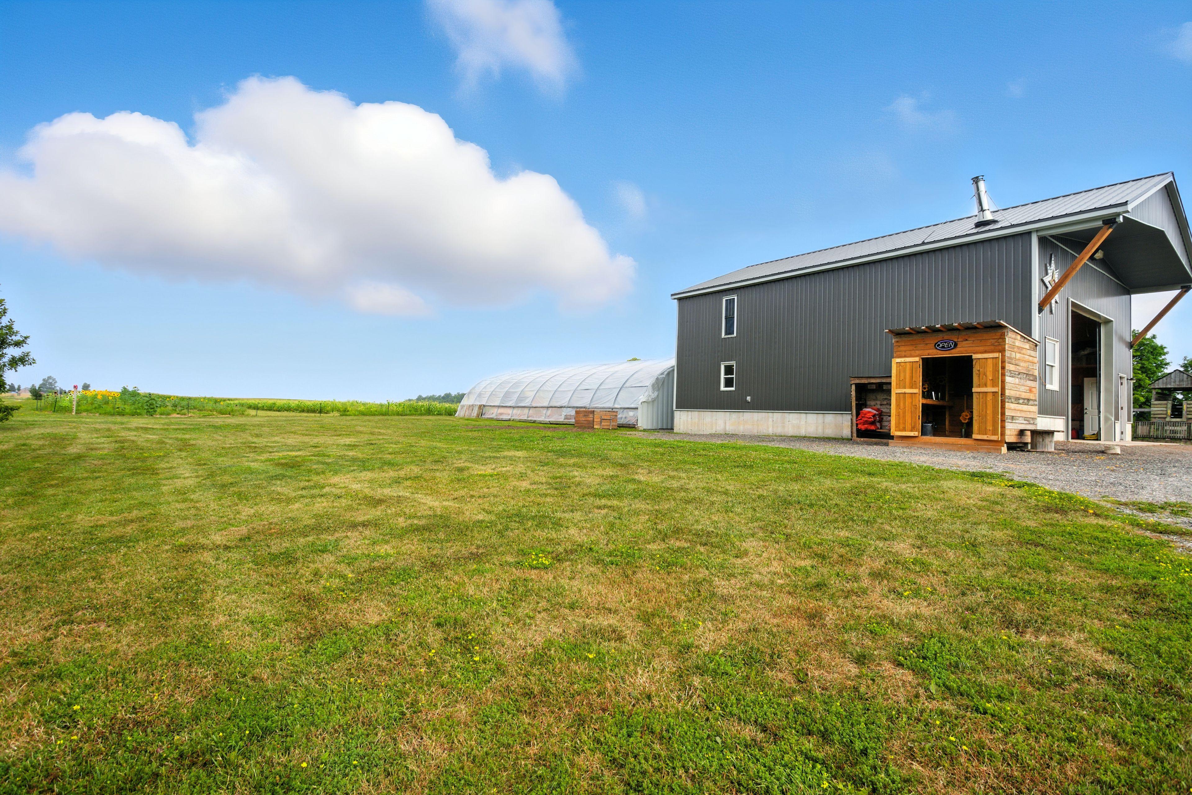 • Greenhouse and acreage perfect for hobby farming or recreation.