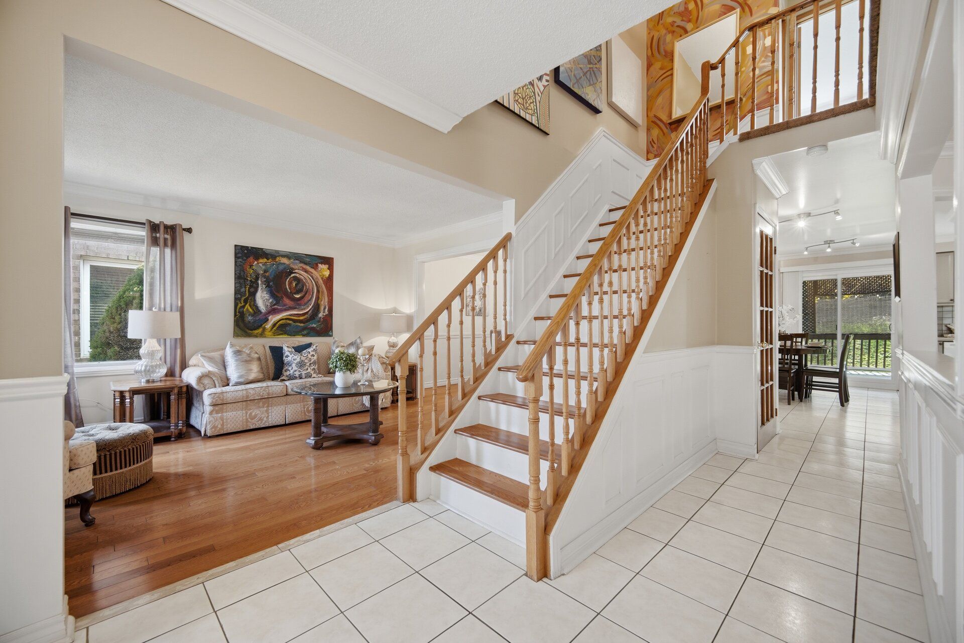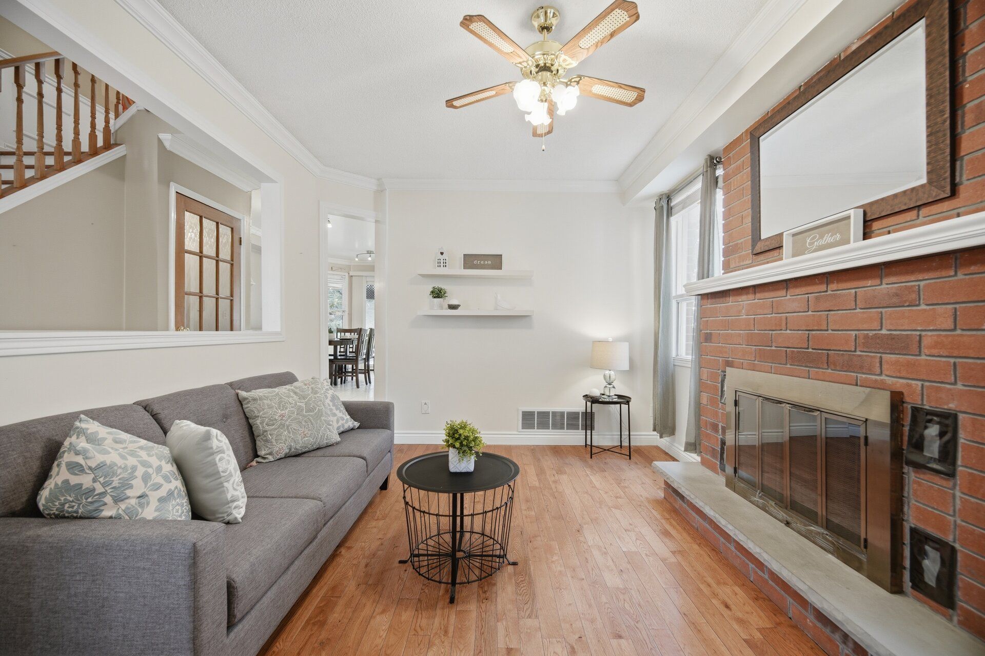 When you first walk into this home, you realize its been filled with love & laughter. A spacious family home, this property has been well cared for. With a formal layout, a sweeping central staircase features a formal living room one side which leads to the large dining room with a sparkling venetian glass inspired chandelier . The other side of the staircase highlights the family room with an original fireplace plus a newer powder room & main floor laundry room with a side door. The eat-in kitchen flanks the back of the house with a sliding door leading out to a covered deck, providing a perfect flow for entertaining or watching the kids play outside. The backyard is private with a reverse ravine-esque style so you can't see the road or houses beyond it. Back inside, as you walk upstairs, the 2nd floor foyer with the balcony all around overlooking the stairs & downstairs foyer provides a nice separation of the bedrooms. The primary bedroom extends into a large suite with a sitting room area, walk-in closet, & ensuite. The other 3 bedrooms are spacious with large closets & windows. The main washroom has been almost fully renovated with a spa-like feel. The basement is ready for guests & is awaiting your family's personal updates with a large rec room including a bar plus a kitchen, a den or potential bedroom, bathroom, workroom, & storage areas. Furnace is from 2024. Nearby trails & green spaces offer plenty of room to unwind, run, walk the dog, or let the kids play. Minutes to square one shopping centre with tons of restaurants, cafes, & conveniences all around. You're right in the heart of mississauga, with quick access to major highways (403, 401, 410 & qew) and easy commuting into toronto or across the gta. With a three minute walk to the nearest transit stop, its easy to get around. This property is in the highly desired central mississauga hurontario neighbourhood with mature trees, well cared for homes, & great neighbours. Don't miss this one!