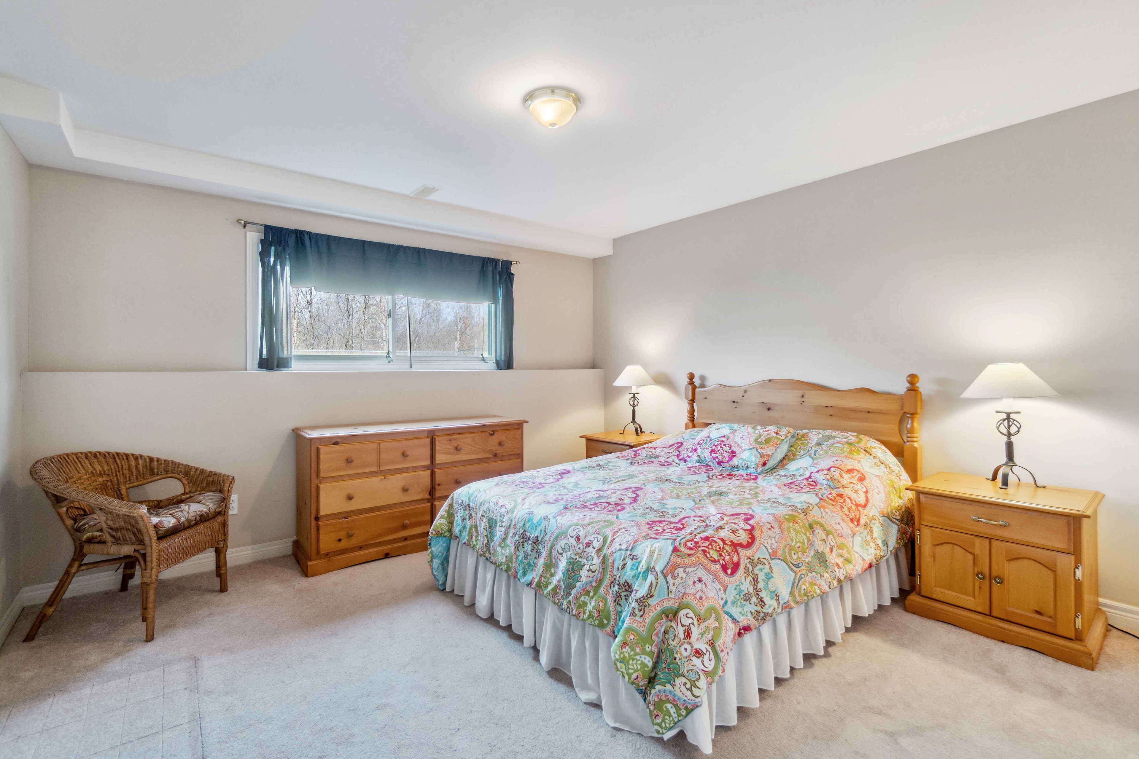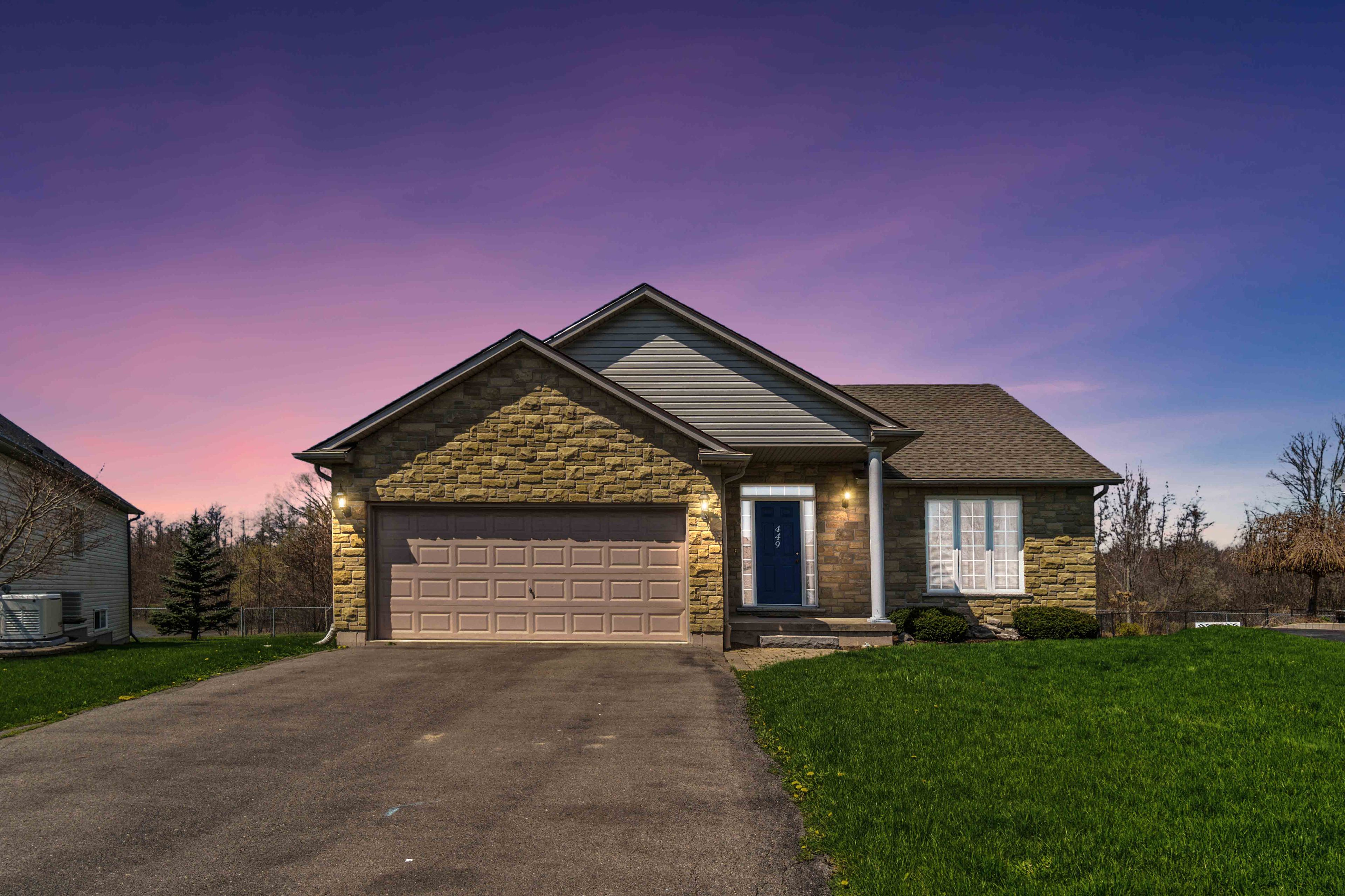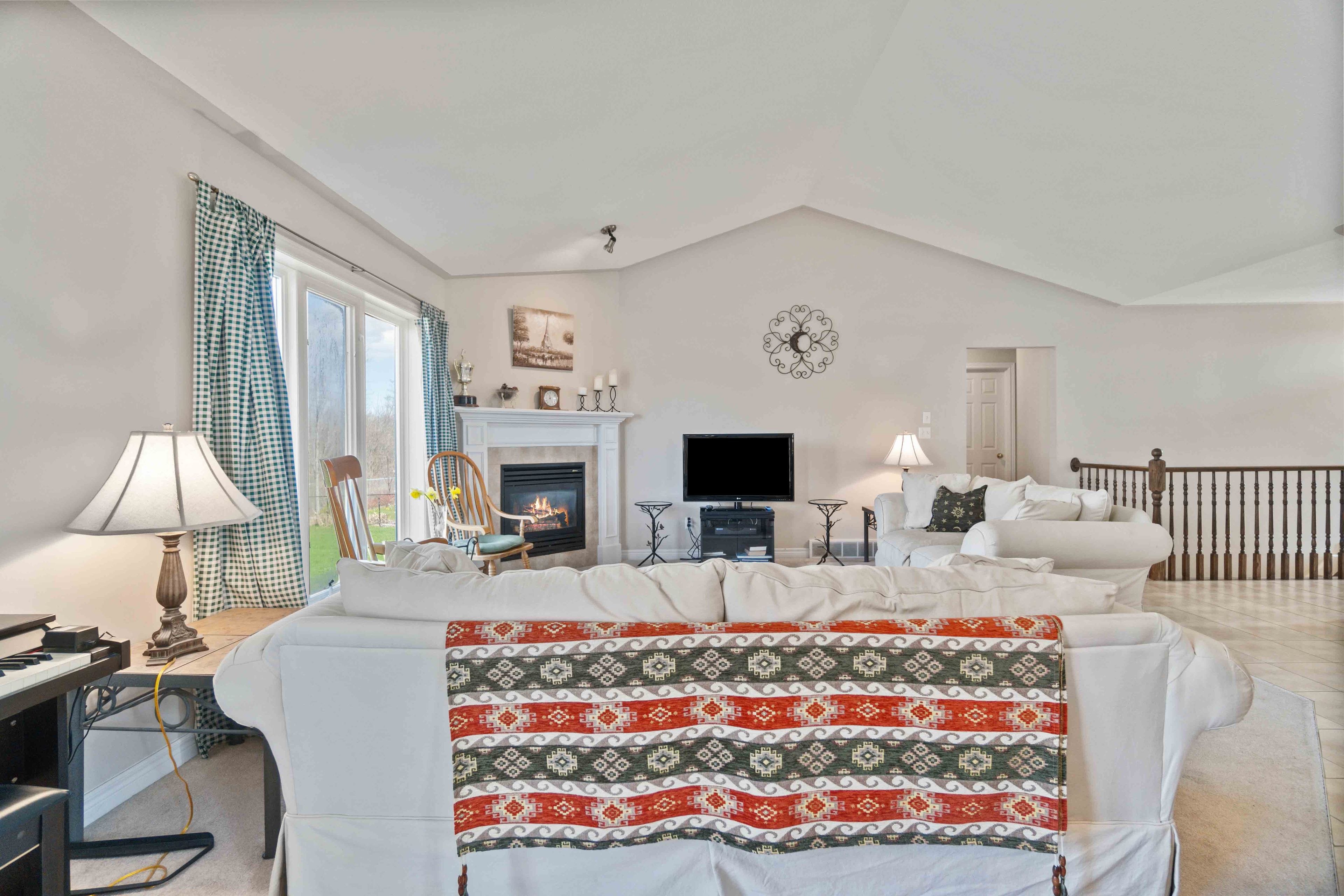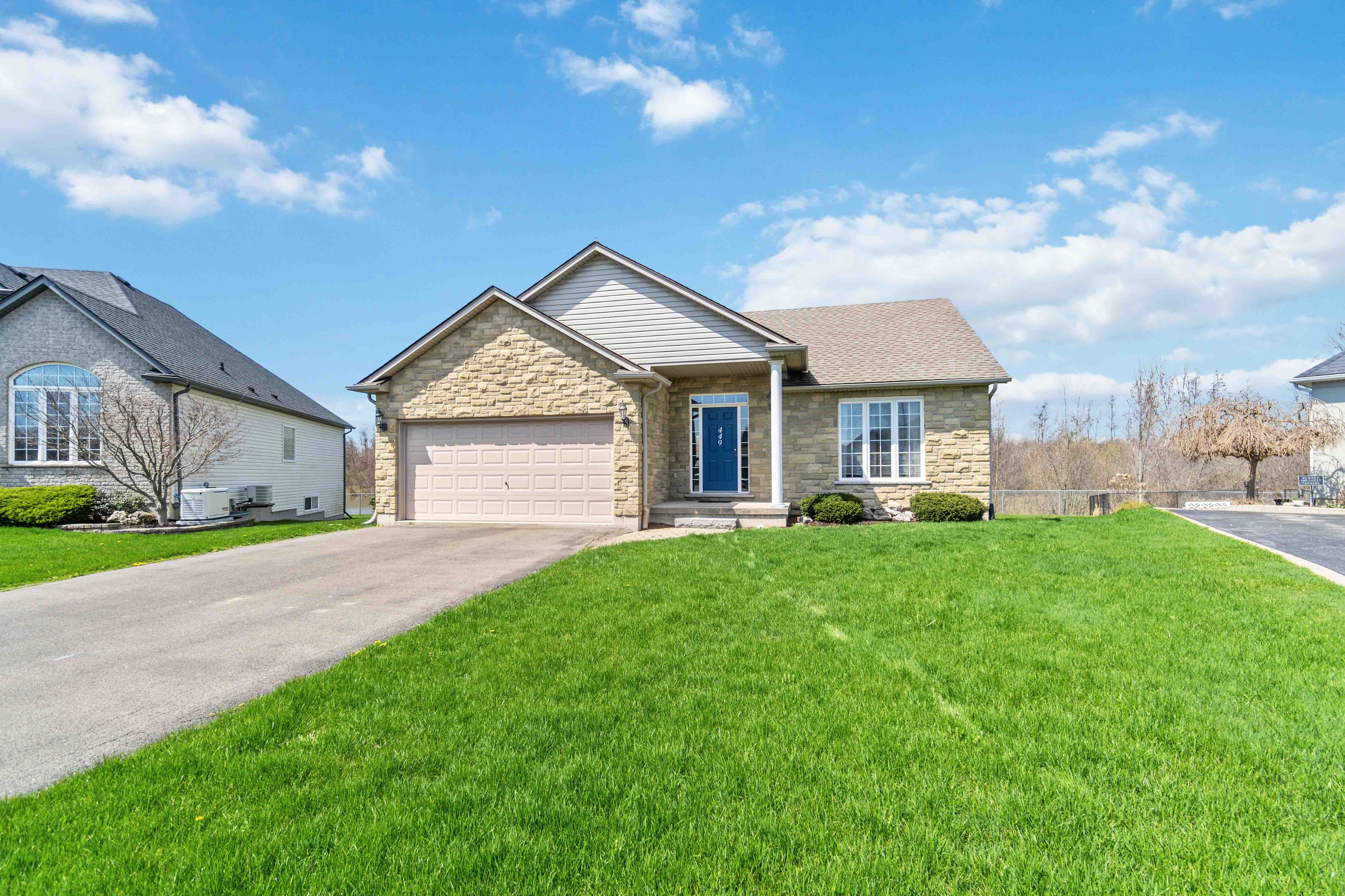 Stop by and visit this 2+2 bedroom bungalow with attached garage located on a cul-de-sac and backing onto pond with protected land. Property has been used as a secondary home for the past 20 years. Main floor features open concept kitchen/dining room and living room complete with gas fireplace. 2 oversized bedrooms, primary has access to the main floor bath. Lower level complete with 2 more bedrooms with large windows for extra light, family room with gas fireplace and walk-up to the rear yard, 3pc bath and laundry/storage room. Outdoor features include deck off the kitchen overlooking the pond.