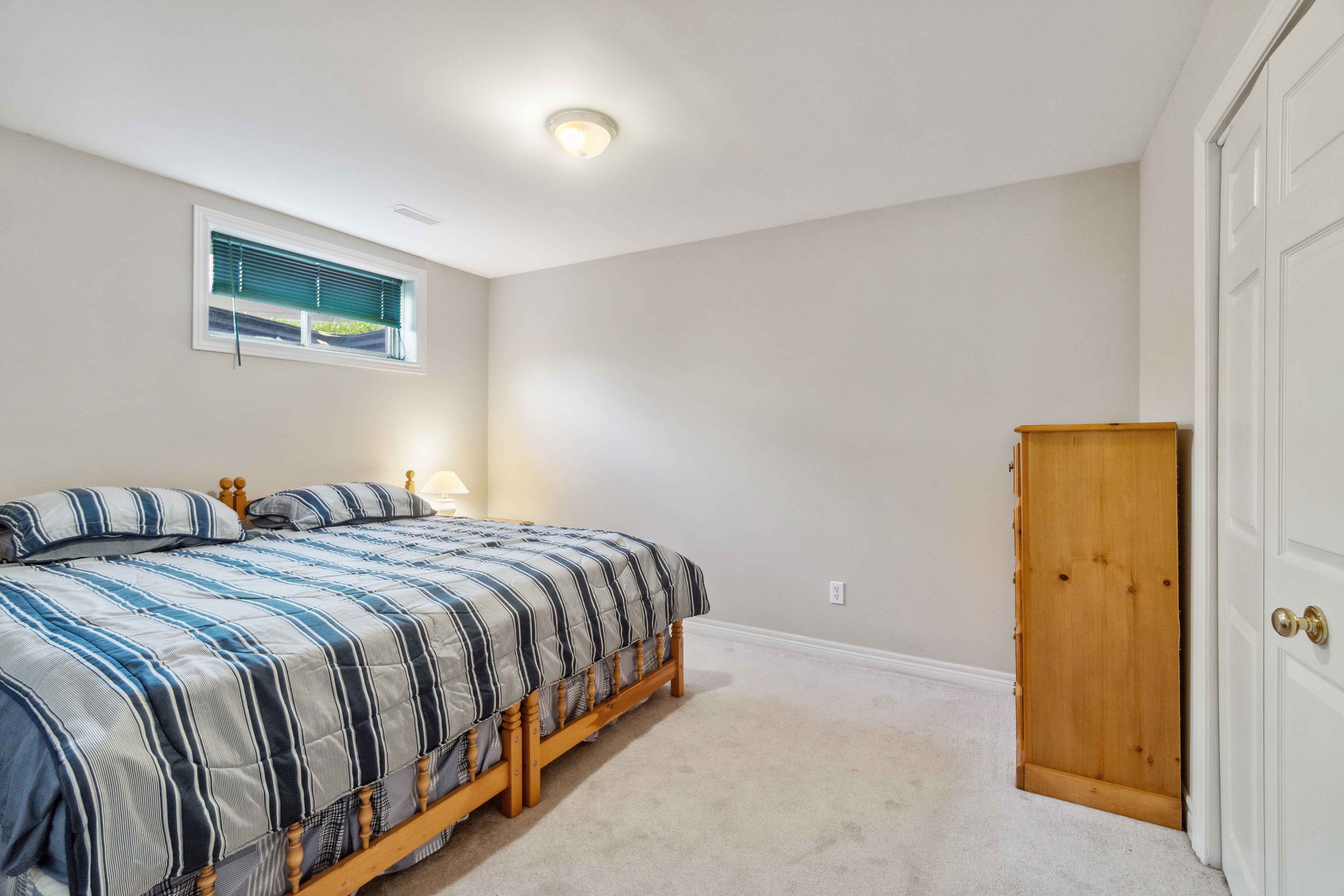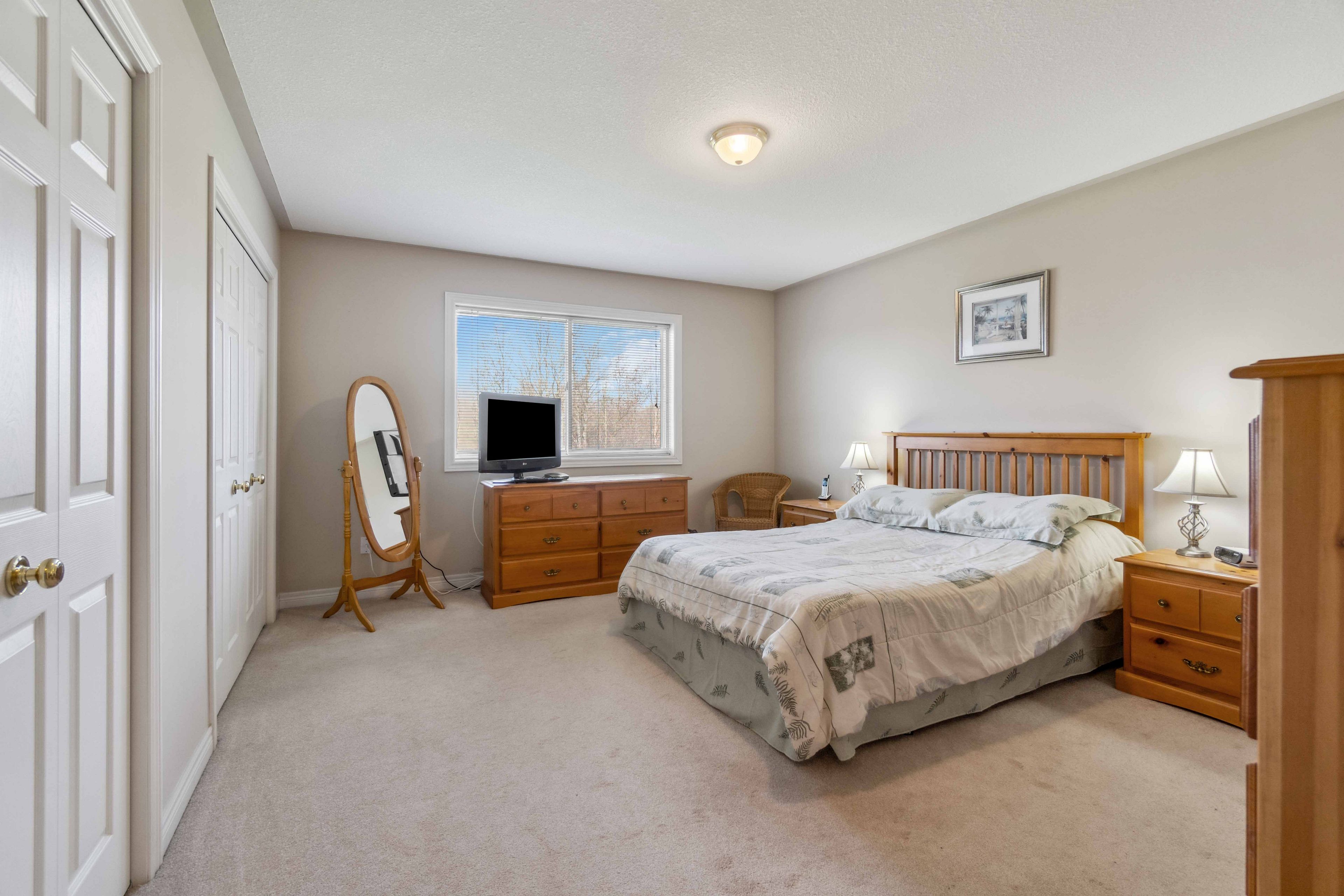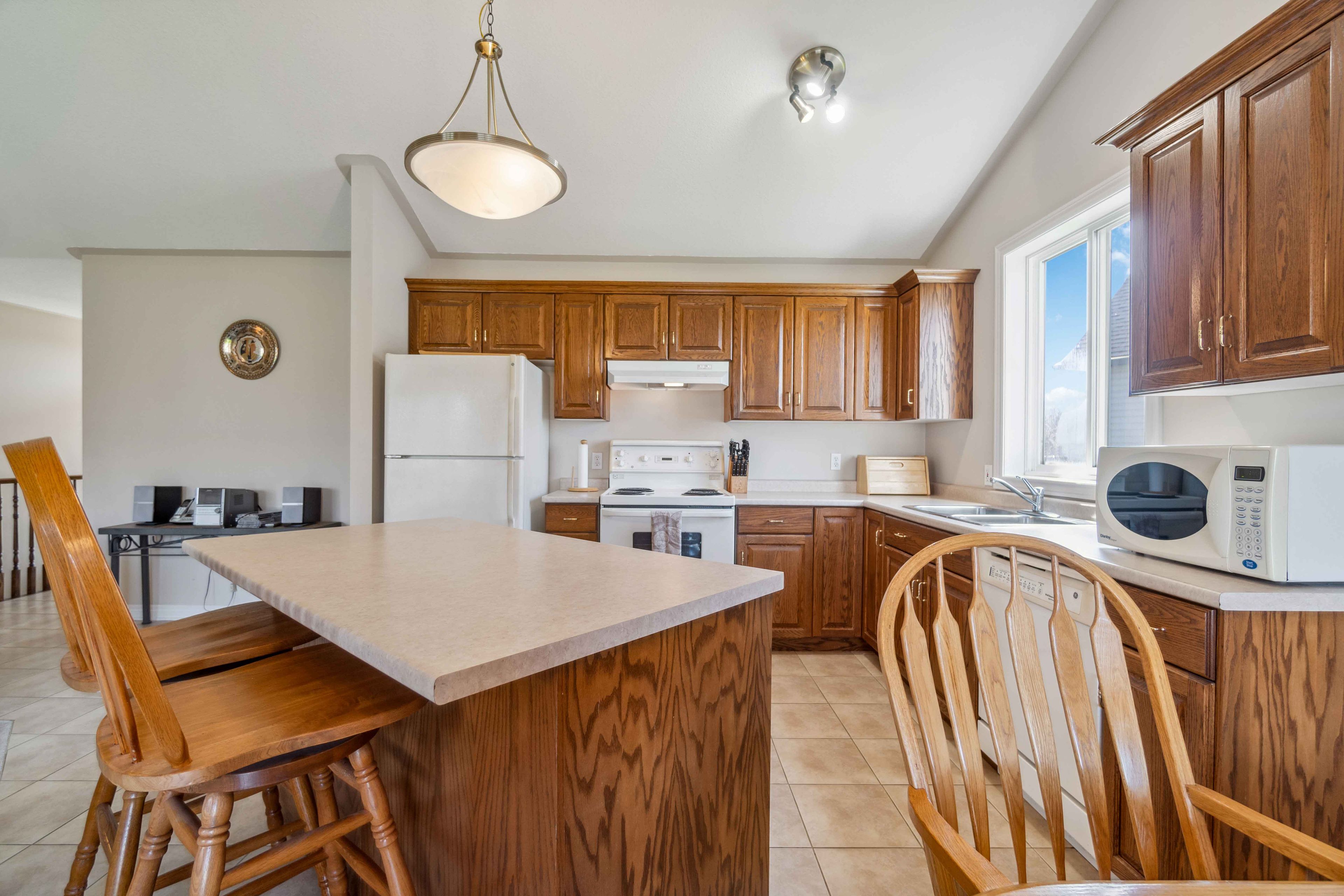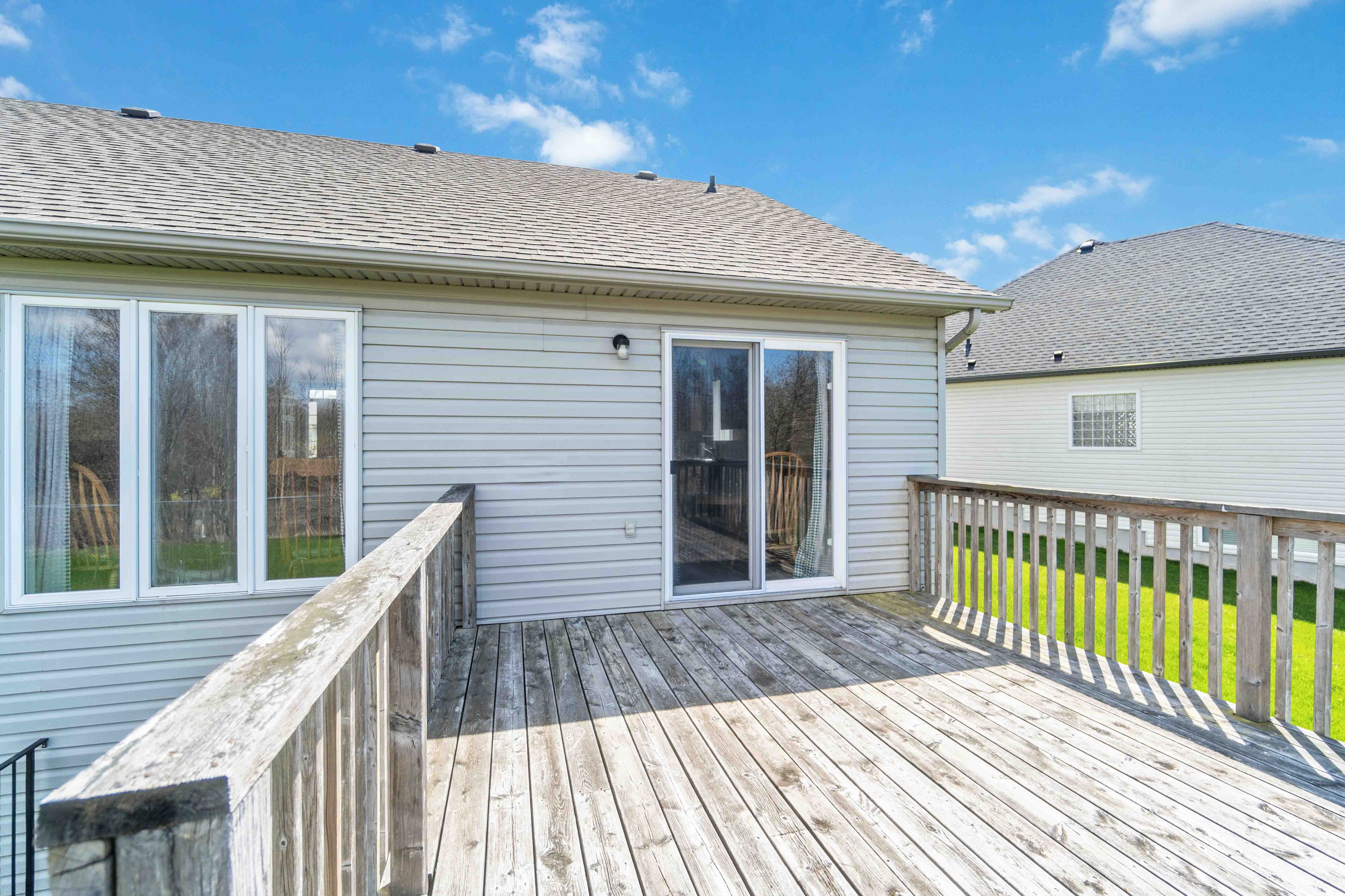 Stop by and visit this 2+2 bedroom bungalow with attached garage located on a cul-de-sac and backing onto pond with protected land. Property has been used as a secondary home for the past 20 years. Main floor features open concept kitchen/dining room and living room complete with gas fireplace. 2 oversized bedrooms, primary has access to the main floor bath. Lower level complete with 2 more bedrooms with large windows for extra light, family room with gas fireplace and walk-up to the rear yard, 3pc bath and laundry/storage room. Outdoor features include deck off the kitchen overlooking the pond.