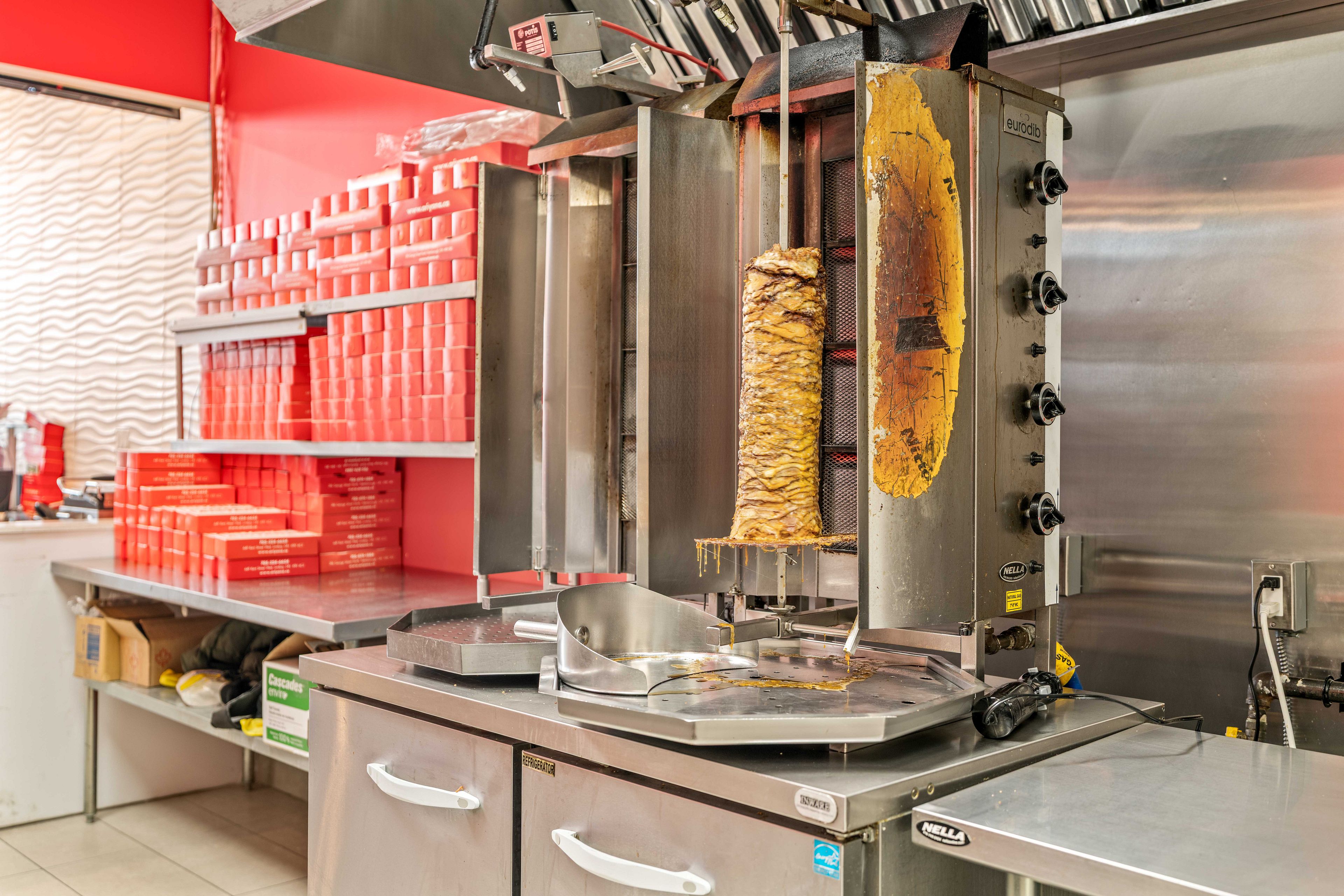 • Established kabab and shawarma takeout restaurant in a busy plaza.