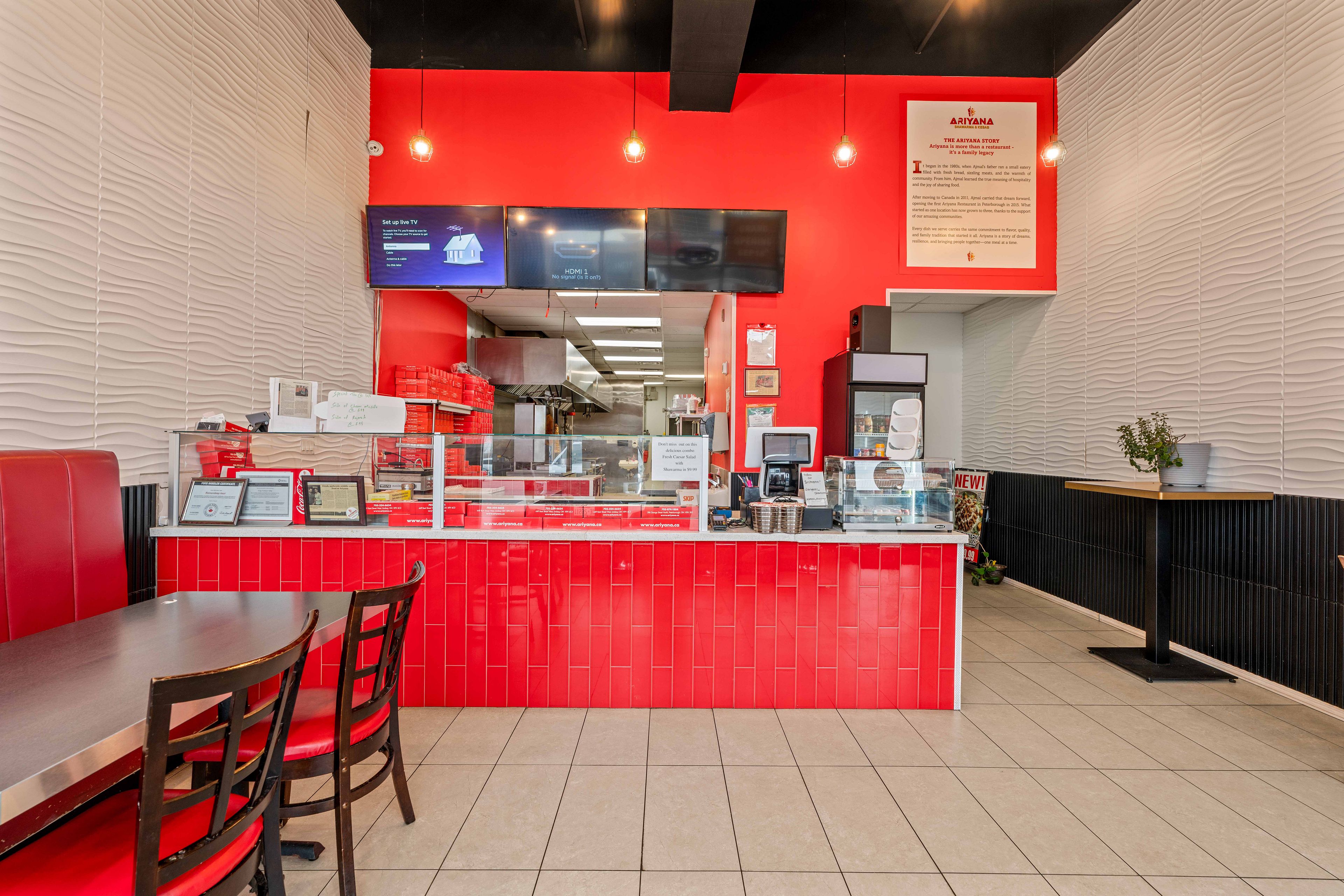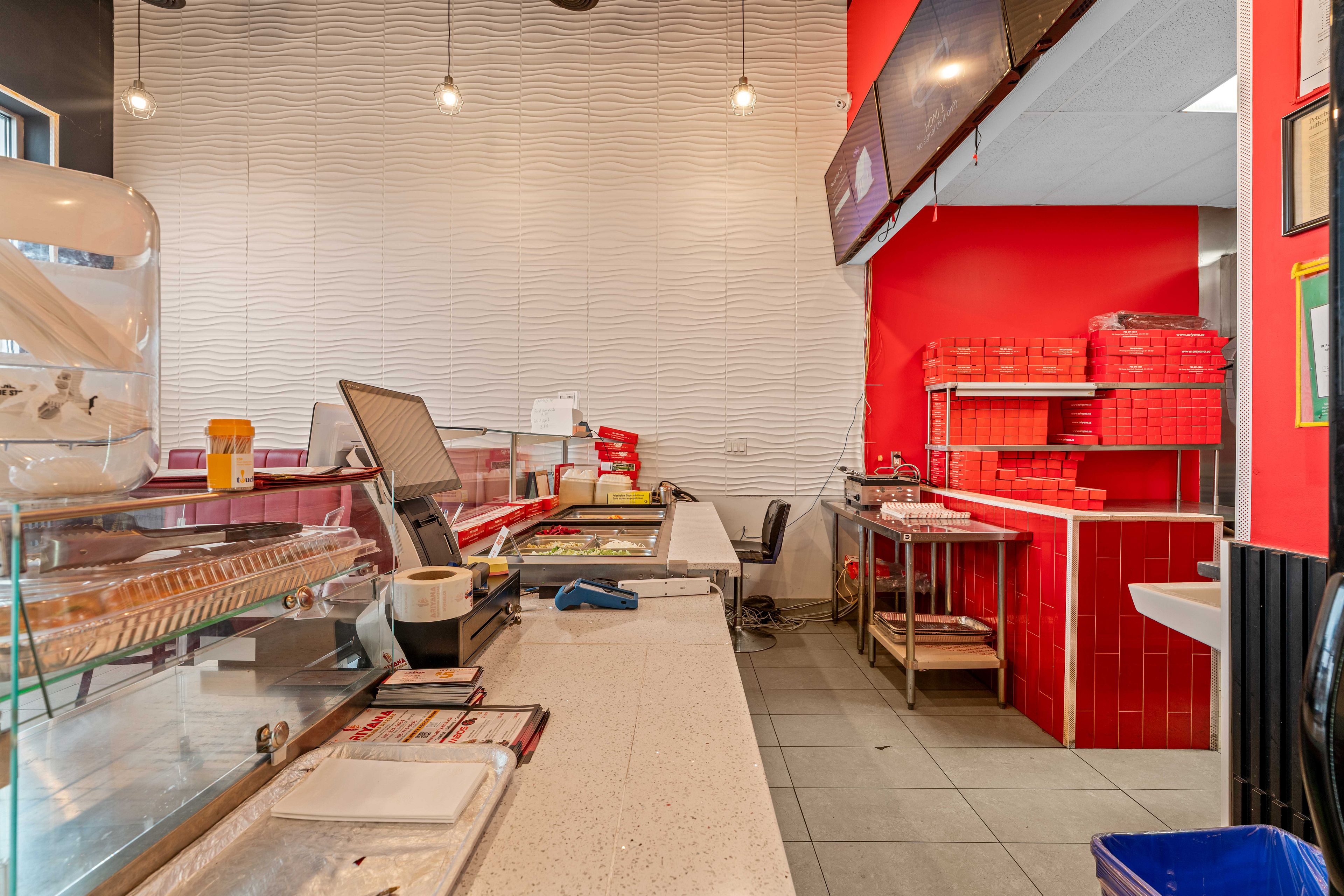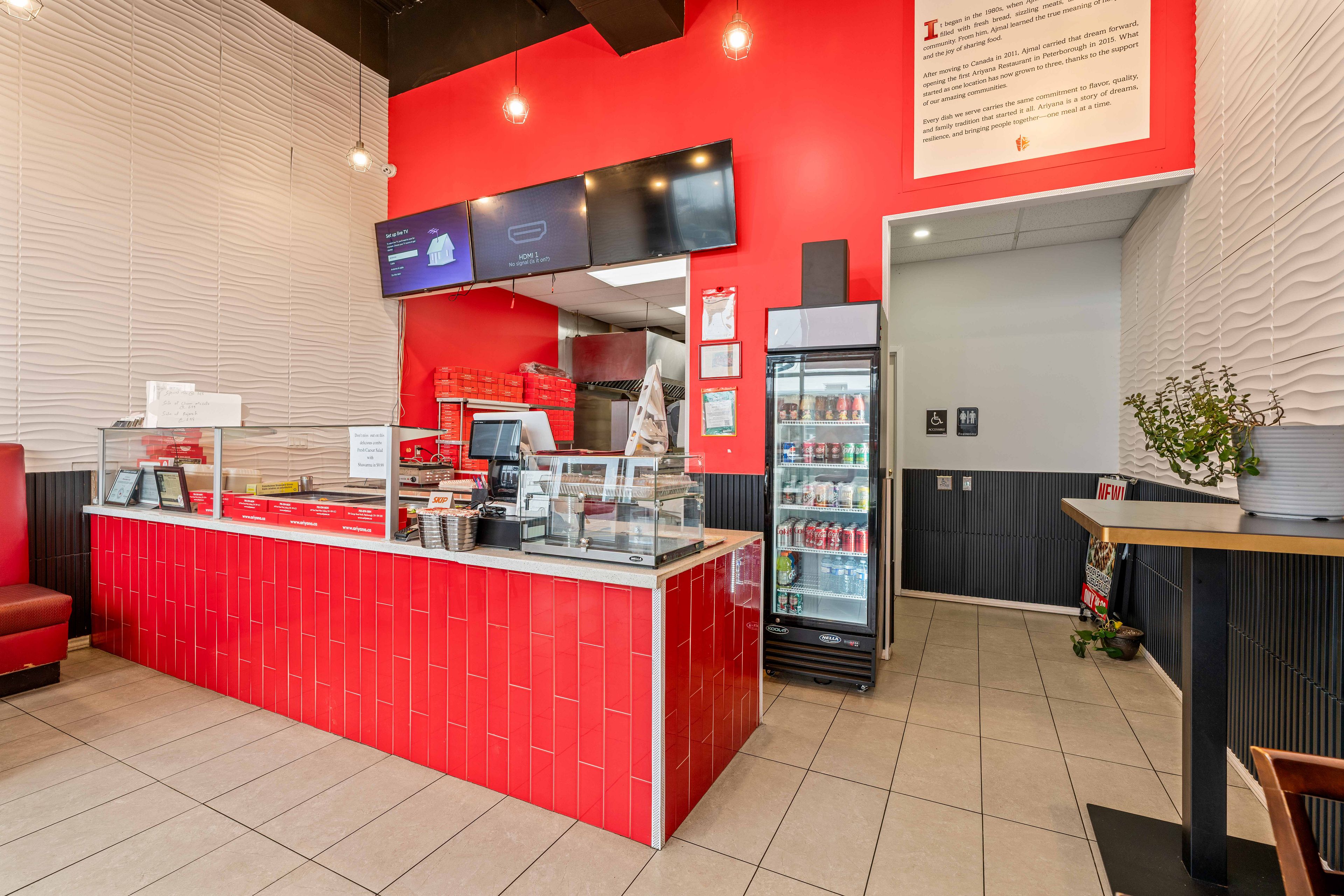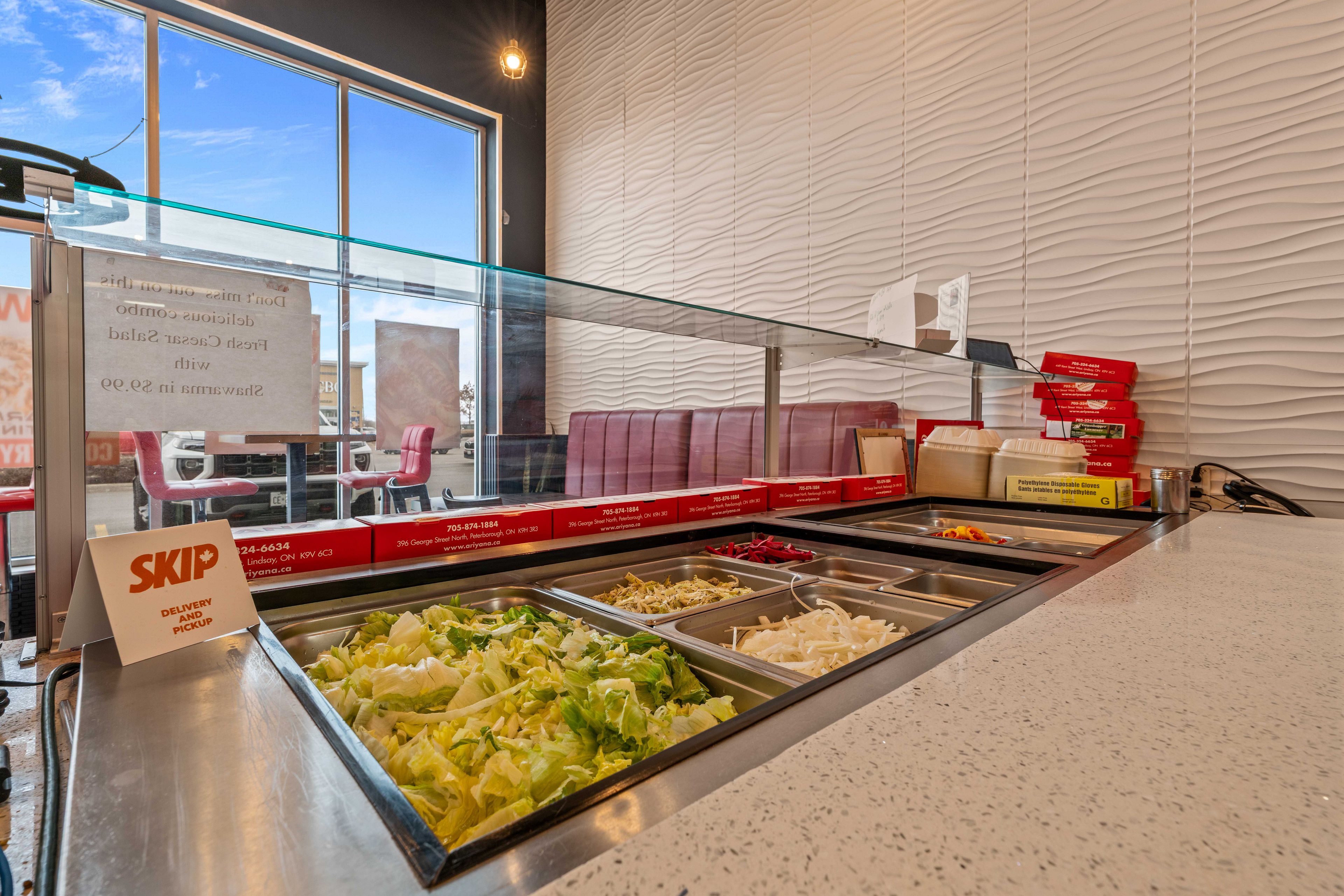 Established kabab and shawarma takeout restaurant located in a bustling plaza with exceptional visibility and traffic flow. The premises feature a lobby area with seating for dine-in customers and ample parking facilities. The business boasts an extensive menu and comes fully equipped with all necessary fixtures and equipment. Key highlights: - prime location in a busy plaza- high in/out traffic- ample parking available - lobby seating for dine-in customers- comprehensive menu - all fixtures and equipment included. This turnkey opportunity is ideal for a motivated buyer looking to hit the ground running.