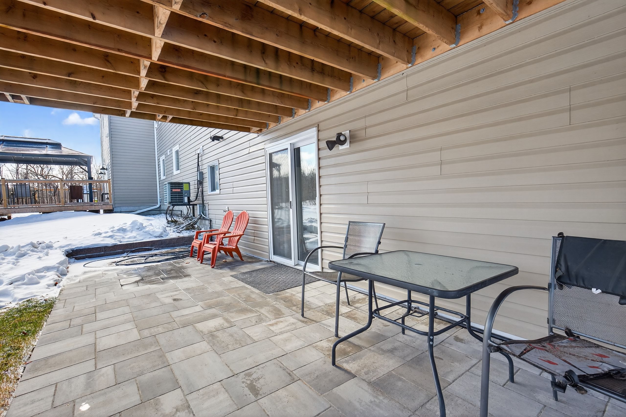 • Private backyard with a deck, great for entertaining guests.