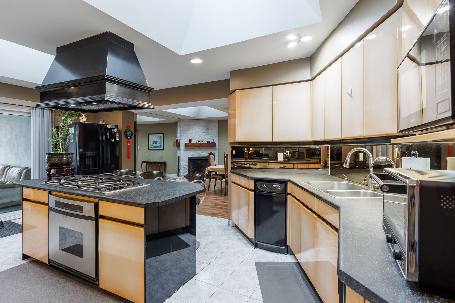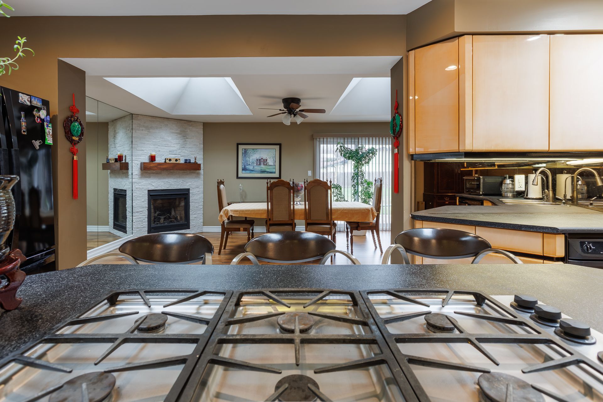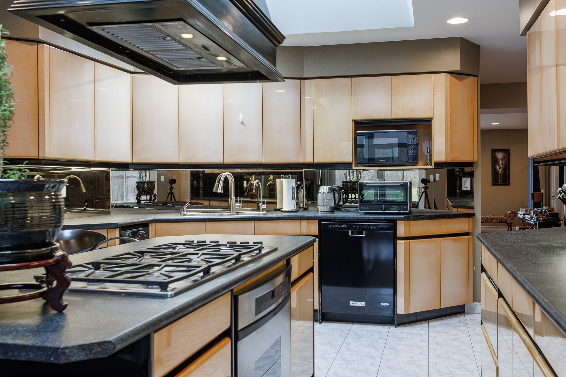 • Modern chef's kitchen equipped with a 6 burner gas stovetop.