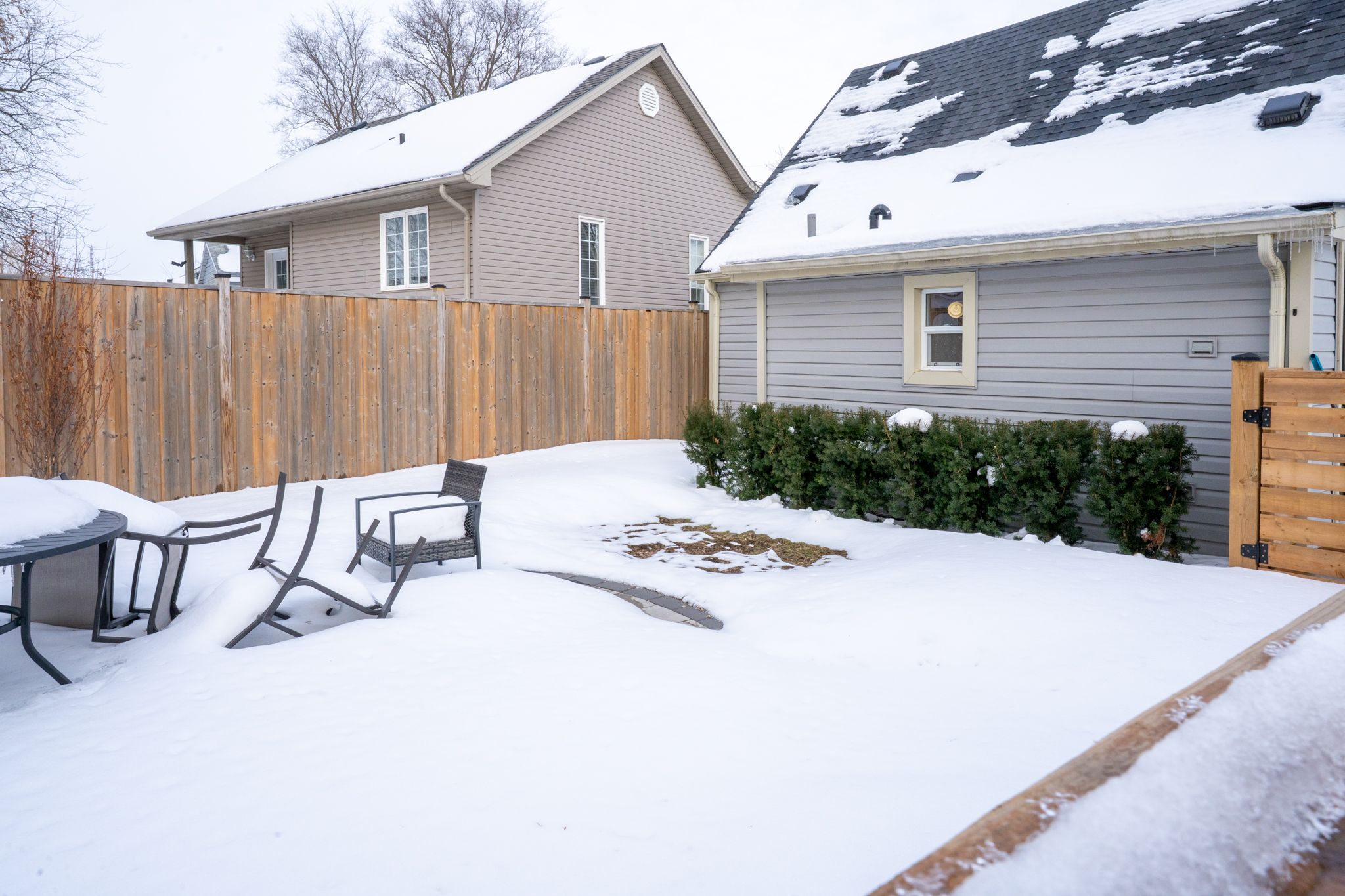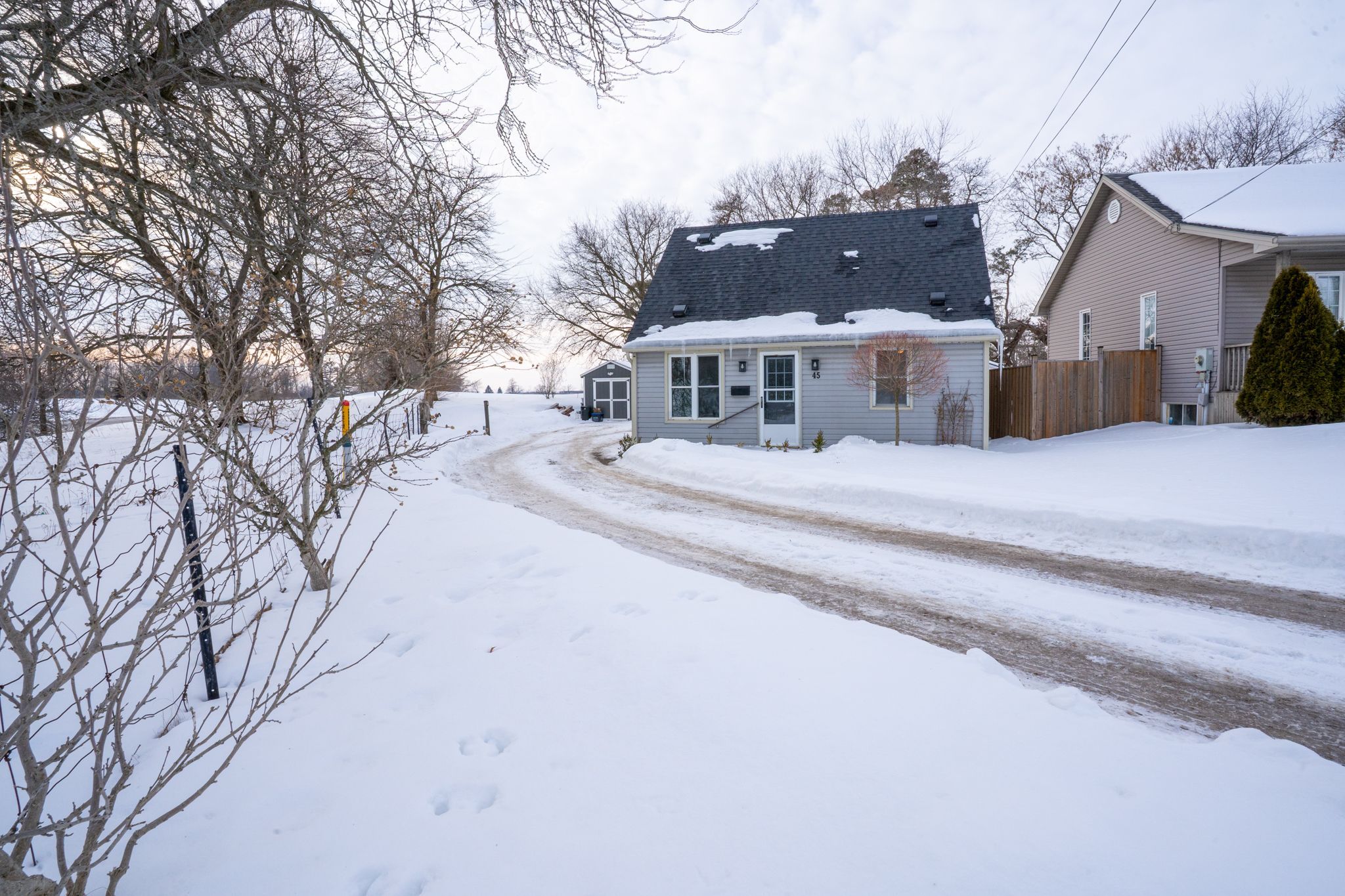 Attention homebuyers! This delightful, well-maintained residence features a 1. 5-storey layout situated on a generous lot with no rear neighbors, positioned at the end of a quiet dead-end road. You'll find plenty of parking space, along with a convenient detached shop for all your storage requirements. The main floor welcomes you into a bright, updated living room filled with natural light finished with luxury vinyl flooring throughout the main floor. The eat-in kitchen, equipped with newer cabinets and a stylish tile backsplash offers easy access to the mudroom and side entry/mudroom. Completing this level is a 3-piece bathroom featuring a large walk-in shower and a spacious laundry room. Upstairs you will find two additional bedrooms. No expenses were spared with the exterior which includes a new fence around the back yard, professionally installed paving stone deck, natural stone side/front steps and lush landscaping. Conveniently located on the edge of tillsonburg, this home provides easy access to shopping, golf course, amenities and a quick connections to hwy 3. All that's left to do is move in and enjoy!