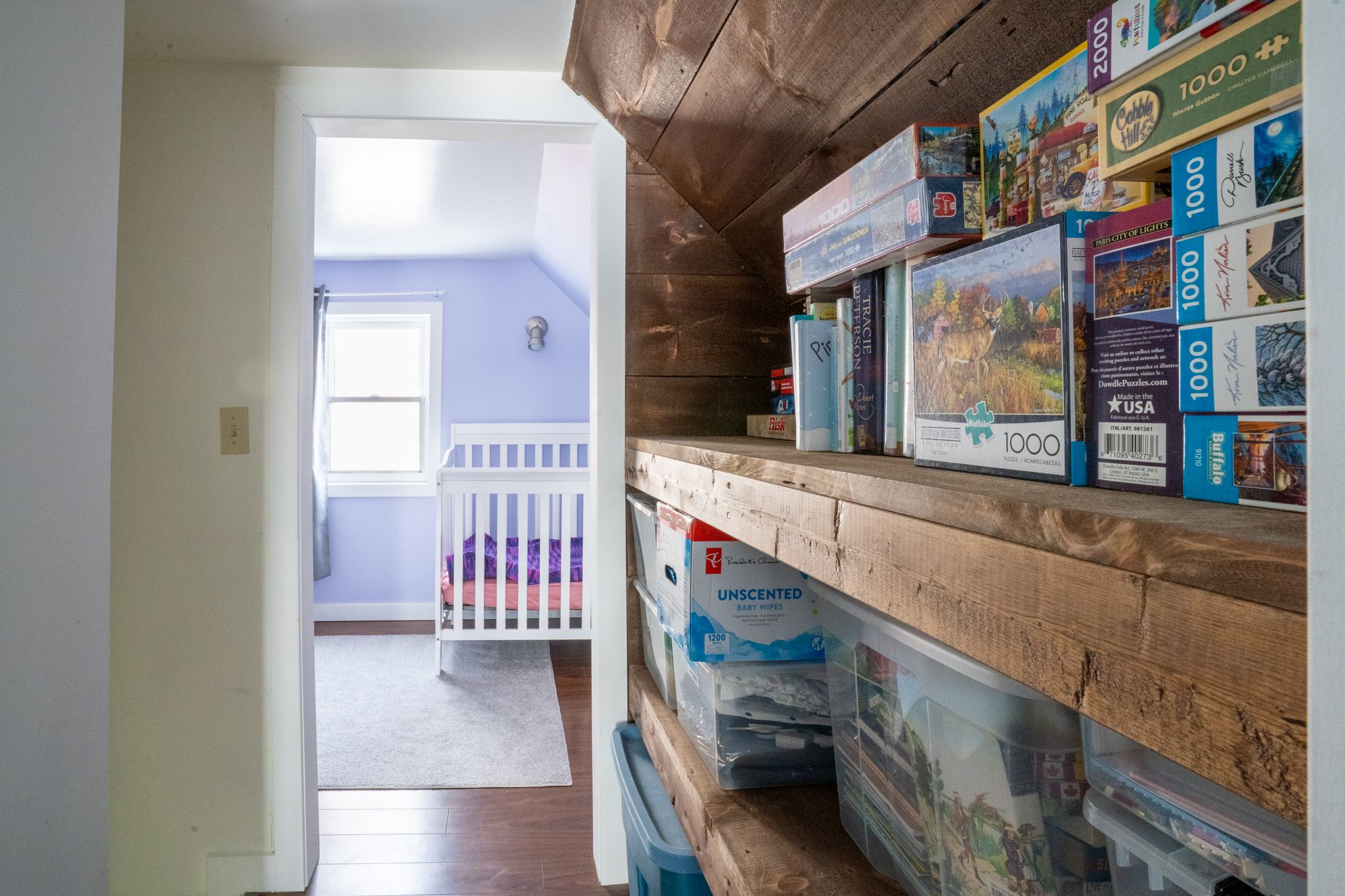 • Updated eat-in kitchen with newer cabinets and stylish tile backsplash.
