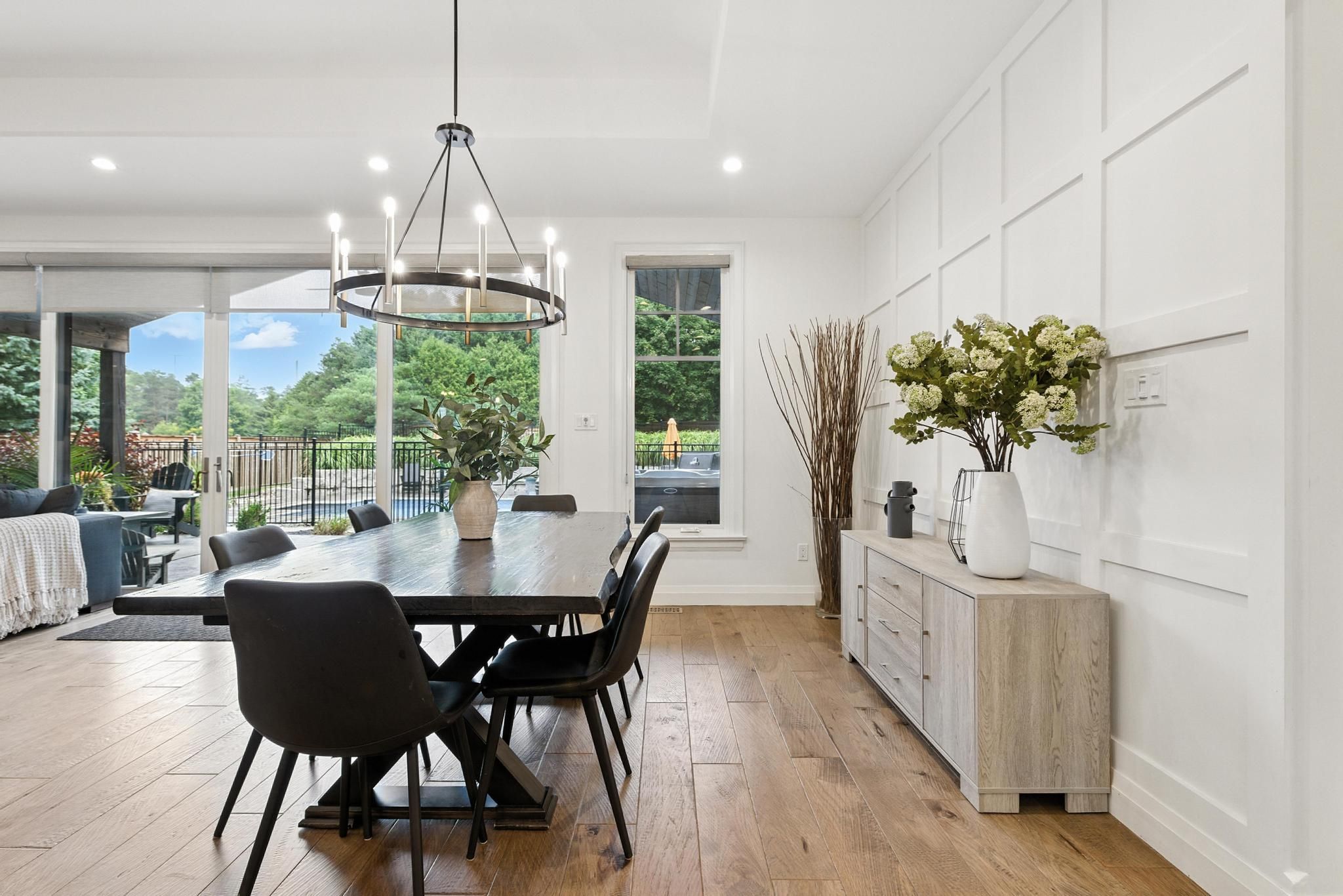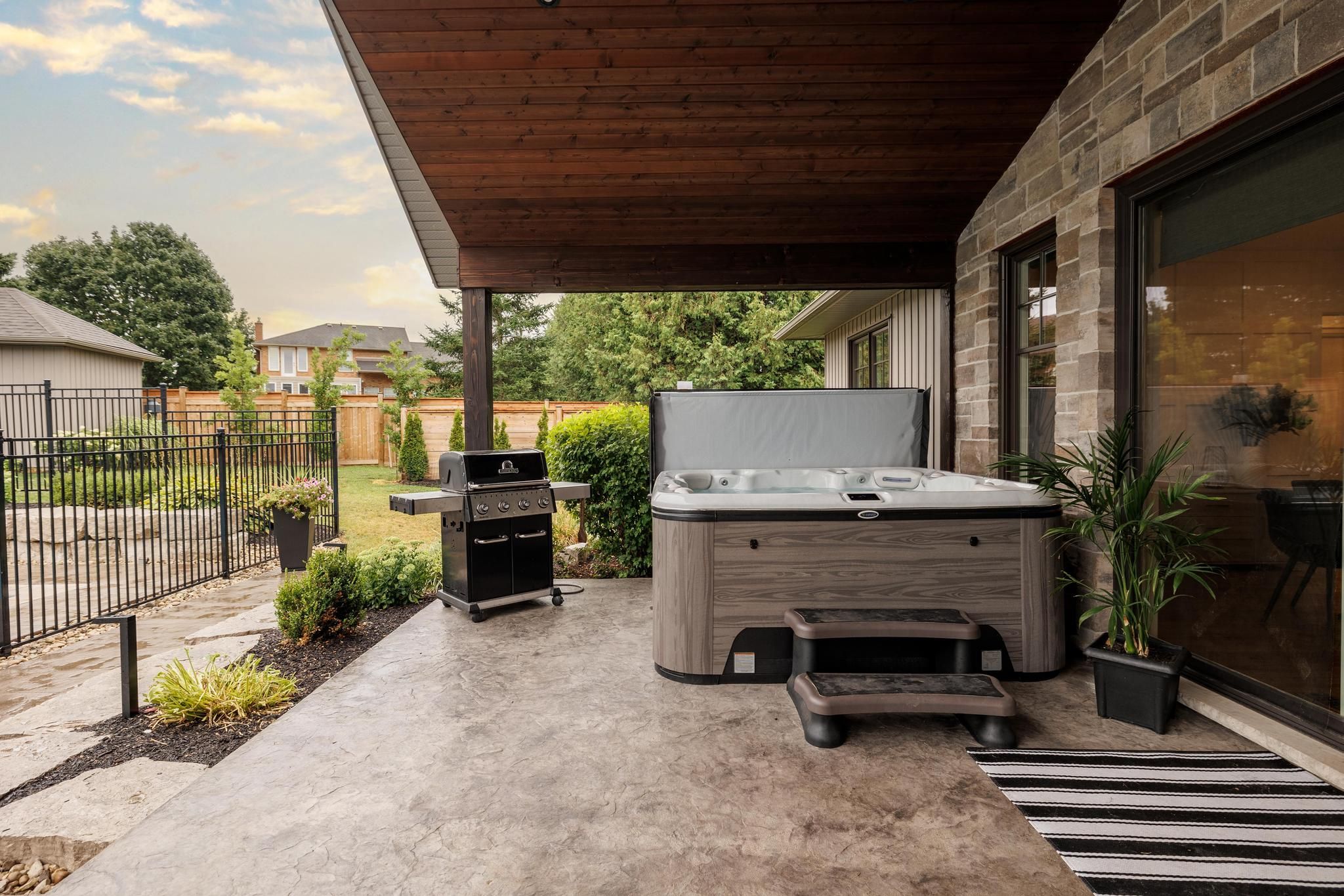 • Backyard oasis with a saltwater pool, hot tub, and covered living space.
