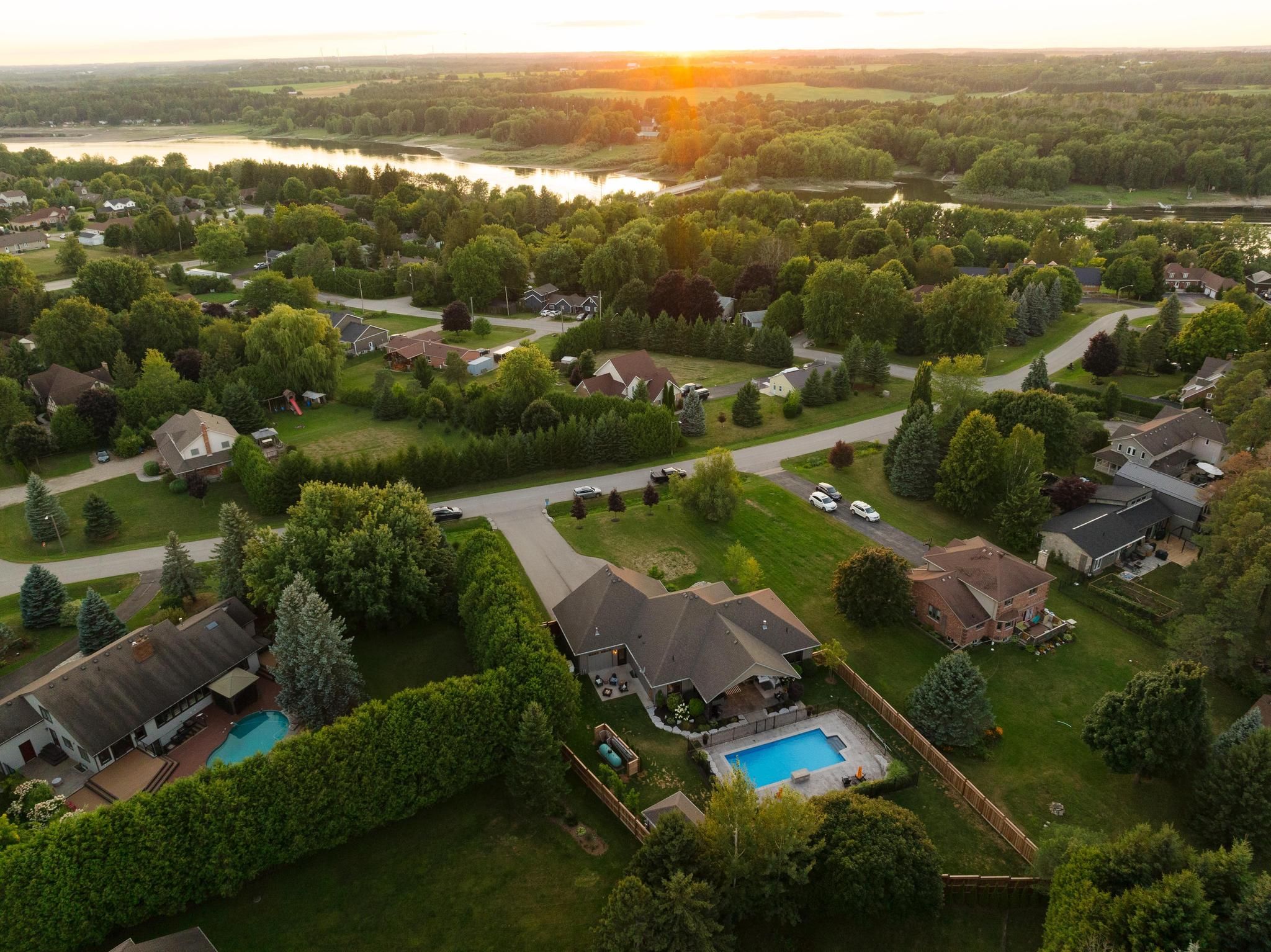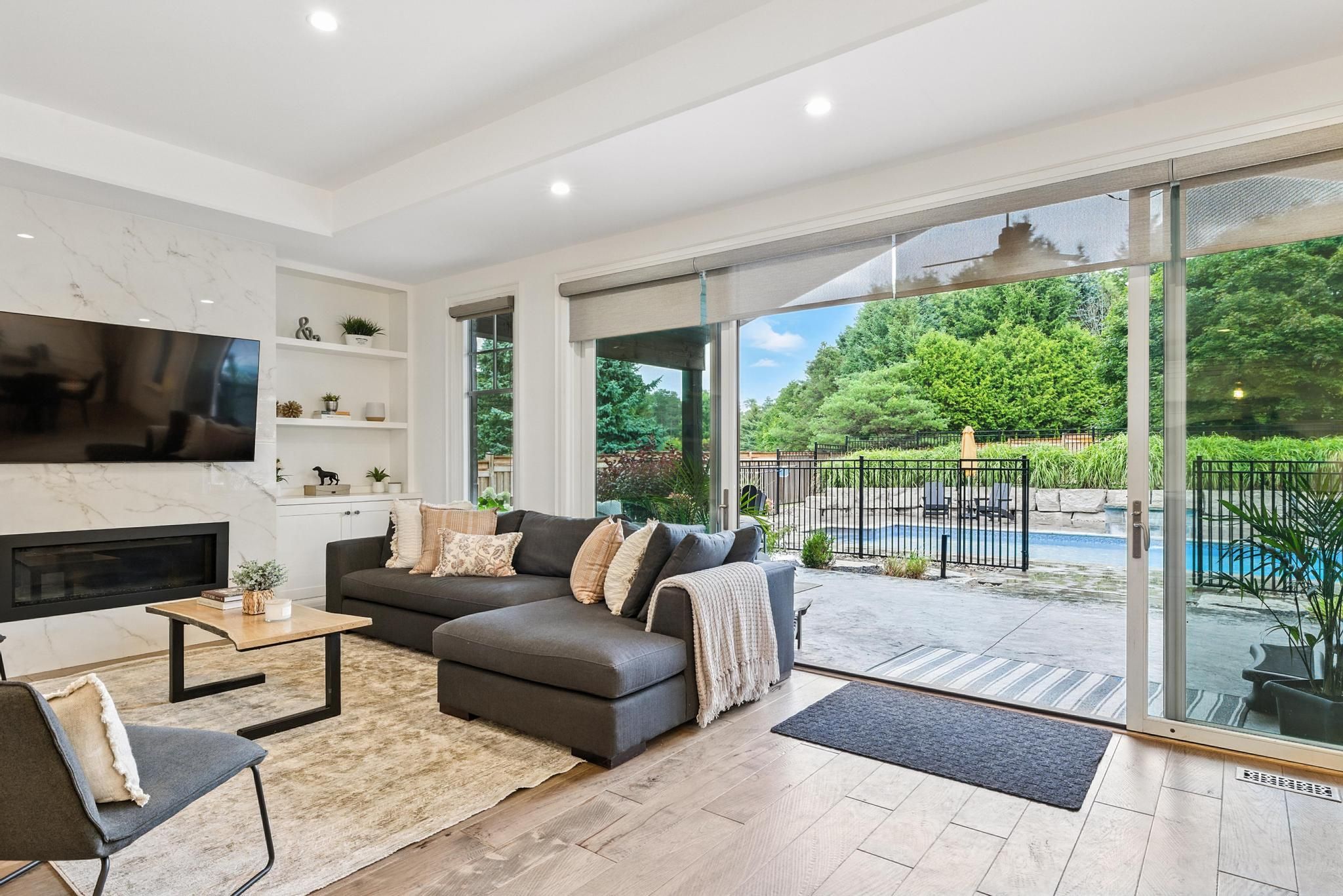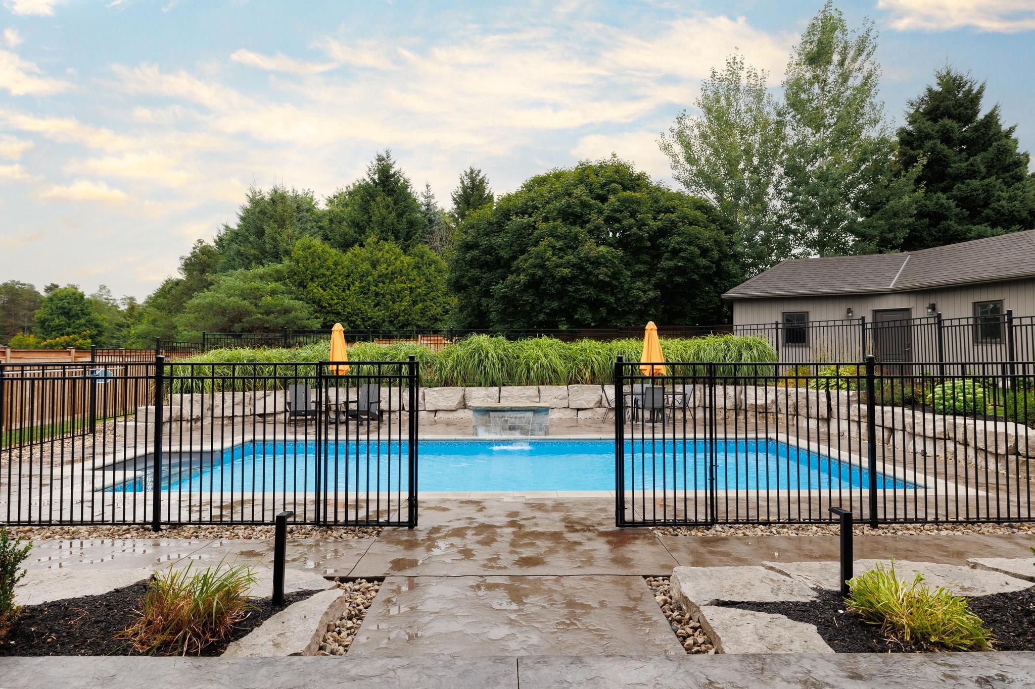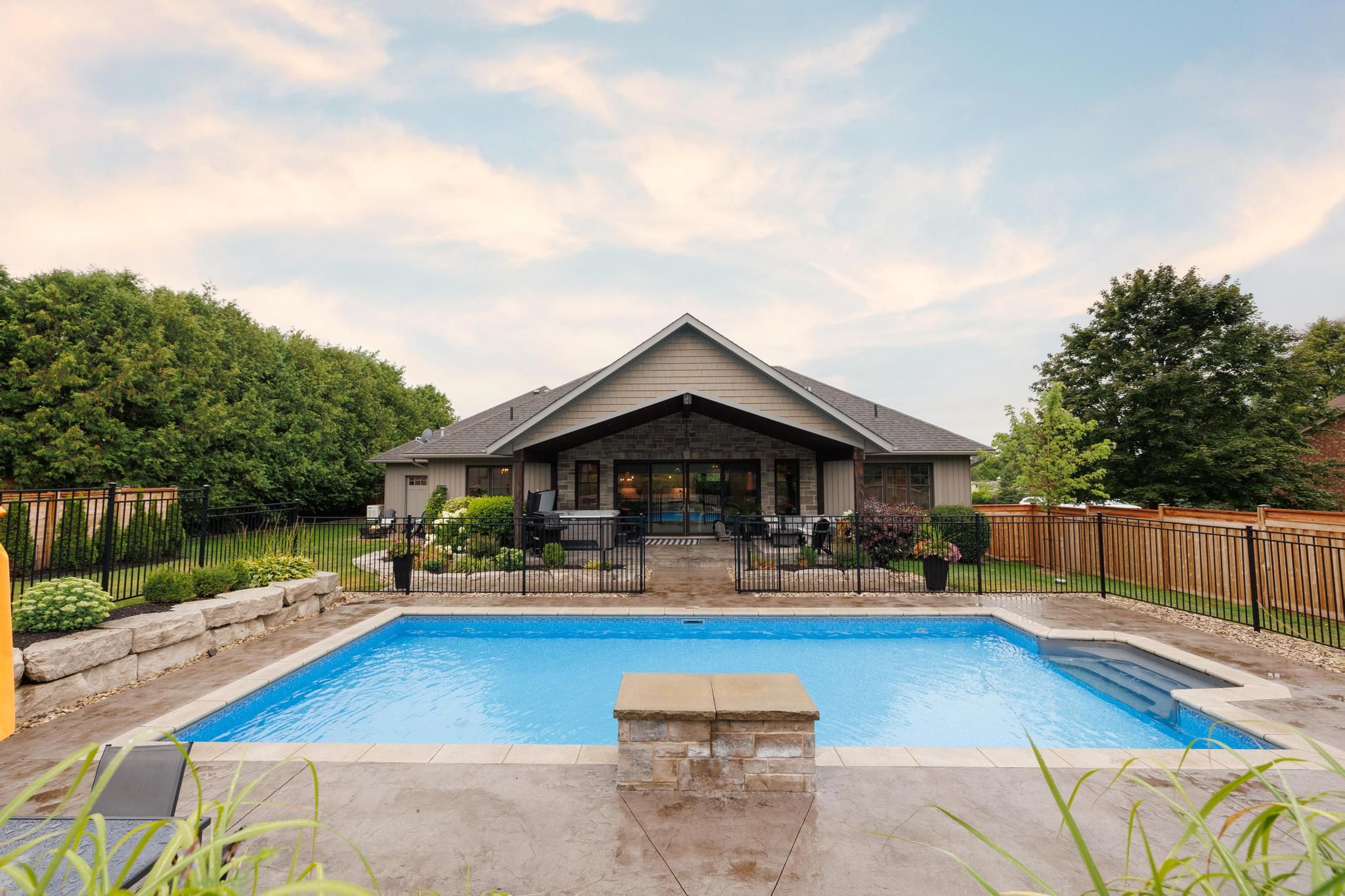 Welcome to 45 amalia crescent, a beautifully designed and custom-built sprawling bungalow offering nearly 5,000 sq ft of finished living space in the heart of belwood. At the center of the home, a chefs kitchen showcases sub-zero appliances, stone countertops, and an induction range by fulgo milano. The open concept living room features a gorgeous gas fireplace bookended with custom millwork, wall to wall windows with remote-operated treatments. The primary suite provides a large walk in closet with built-ins, and a spa-inspired ensuite with heated floors, a freestanding tub, and a dual rain shower. Main floor laundry keeps the layout practical while the finished lower level offers 2 additional bedrooms, 9ft ceilings, a home gym, large living area, a bonus guest room, ample storage, and in-floor heating throughout. Follow the 16ft sliding glass doors to the backyard oasis where you'll find a 16x34ft inground saltwater pool with waterfall, new hot tub, covered living space, drive-in pool shed, and an abundance of natural stone and professional landscaping work. Truly the perfect setting for both relaxation and entertaining. No detail was missed here with a full home back-up power generac system, gas bbq line, heated triple garage with a 4th bay door at the rear for easy mowing, irrigation lines, a fully fenced yard and separate rod-iron fenced pool area for ultimate safety. Surrounded by walking trails, belwood lake, and the charm of local favourites like belwood country market and joanies restaurant, this property offers an ideal blend of small-town living and resort-style luxury just a short drive from fergus for day to day essentials.