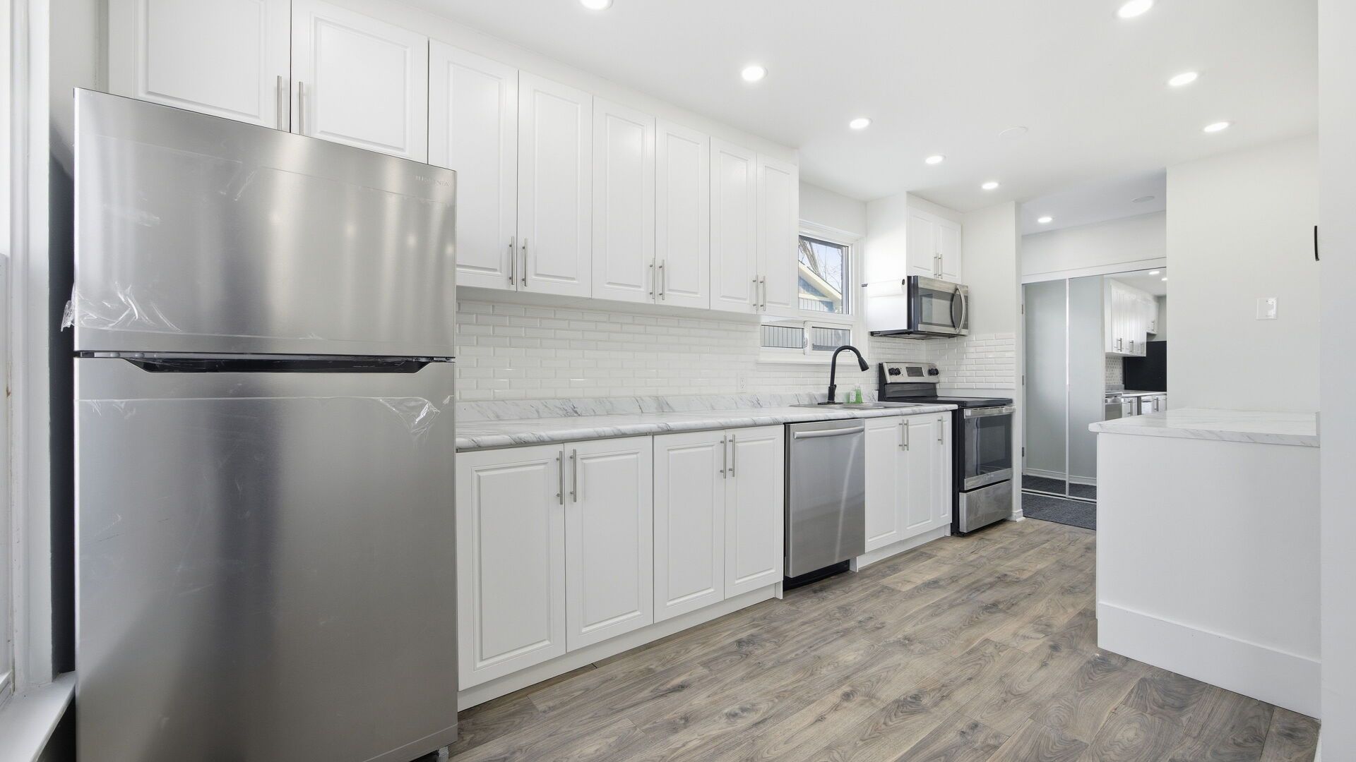 Welcome to 45 austen lane, barrie - a fully detached 4-level backsplit offering approximately 1,800 sq. Ft. Of versatile living space, ideal for first-time buyers, growing families, or investors. Conveniently located with quick access to highway 400, this home is close to schools, recreation centres, shopping, restaurants, and public transit. Step inside to a bright living room featuring a cozy wood-burning fireplace, creating a warm and inviting space for relaxing or entertaining. The renovated kitchen offers updated cabinetry, modern countertops, and newer stainless-steel appliances, providing plenty of room for everyday cooking and family gatherings. The upper level features spacious bedrooms, including a primary bedroom with a walk-in closet and a second bedroom with double closets, along with a fully updated bathroom (2026). The lower level adds two additional bedrooms and another updated bathroom (2026), offering flexible space for extended family, guests, or a home office. The finished basement includes additional living space and a laundry area with kitchenette, creating excellent in-law or multi-generational living potential. Extensive upgrades make this home move-in ready, including new flooring, fresh paint, modern pot lights, and a stylish glass entry door (2026). Major improvements include new windows (2024), gutters and fascia (2024), durable metal roof, and owned furnace & a/c (2022). Parking for up to 4 vehicles on the driveway completes this fantastic opportunity to own a spacious upgraded home in a desirable barrie neighbourhood.