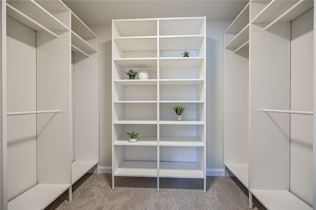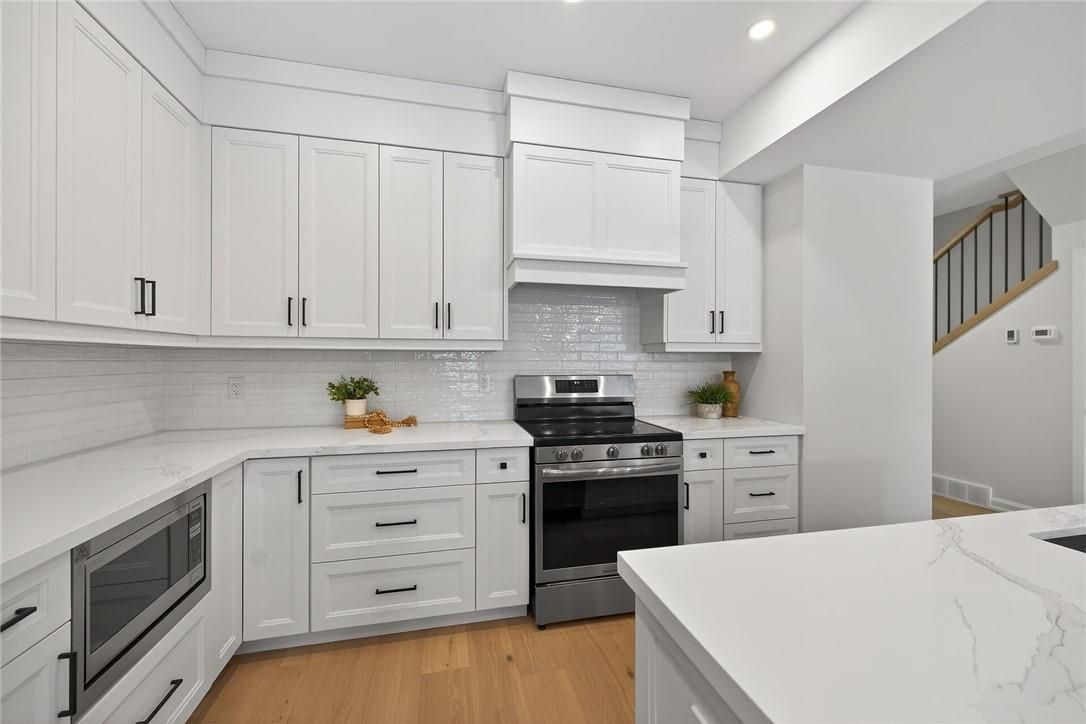 • Chef's kitchen features quartz countertops and under-cabinet lighting.