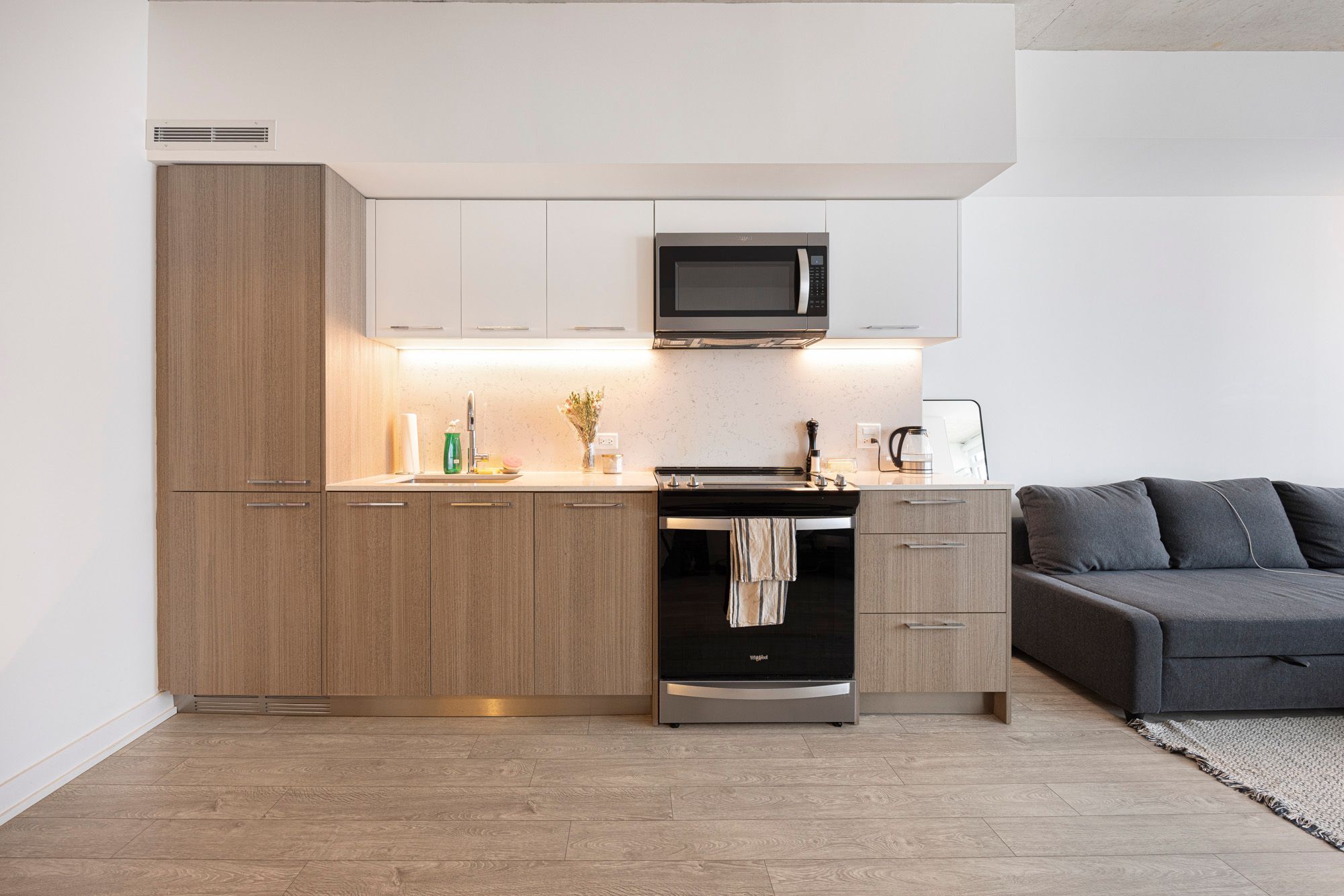 • Spacious 2-bedroom suite with a sleek modern kitchen and open layout.