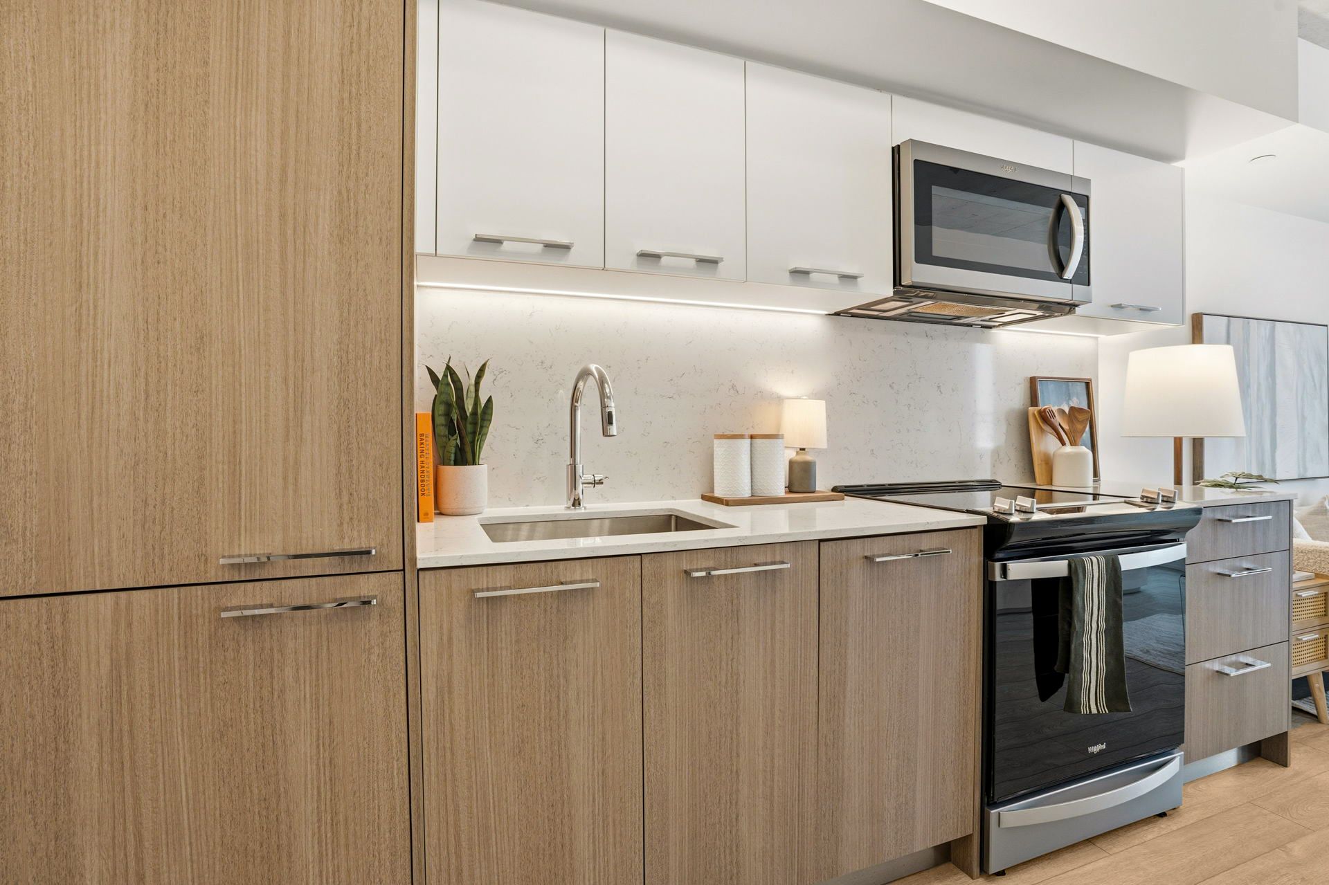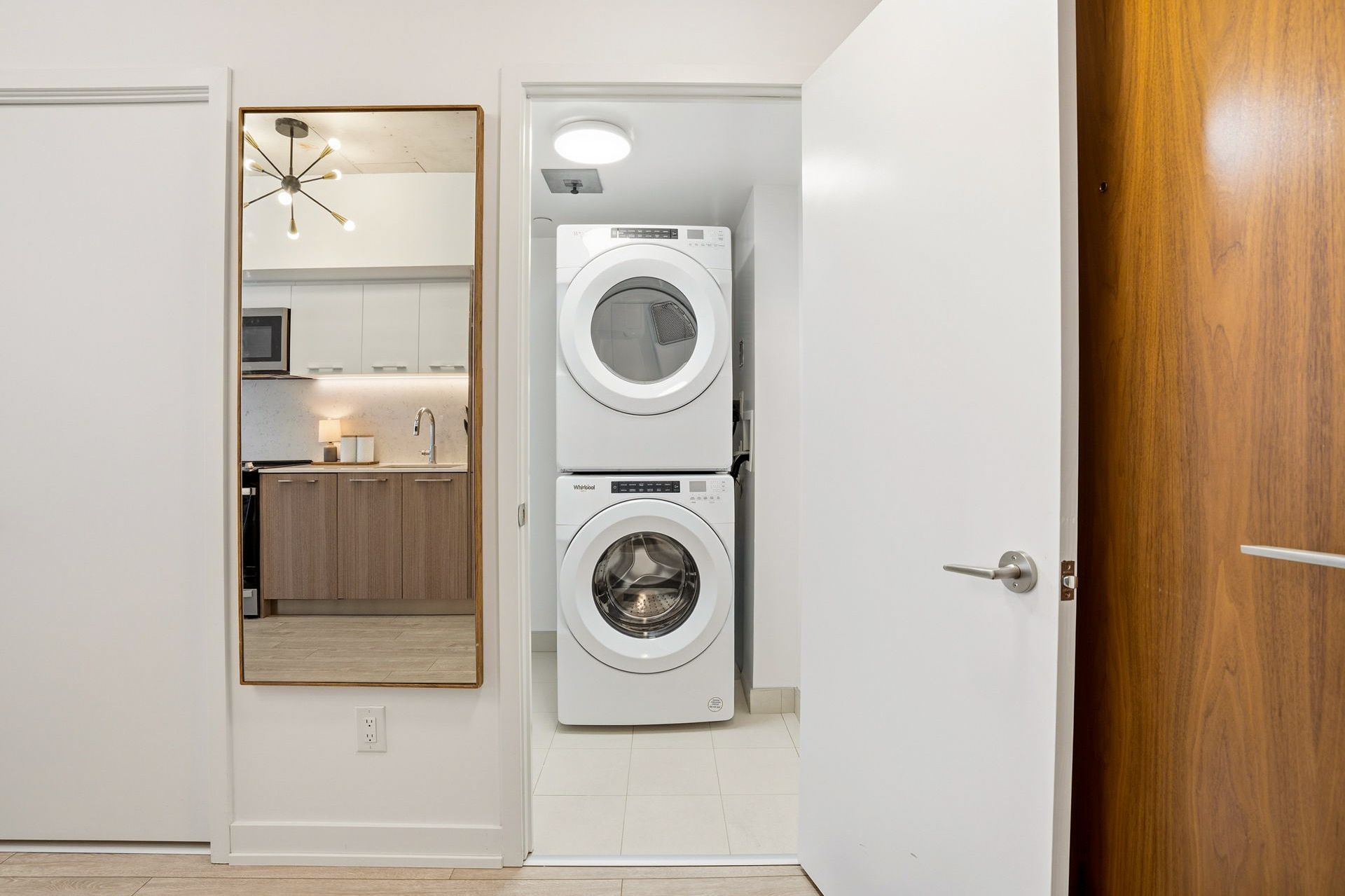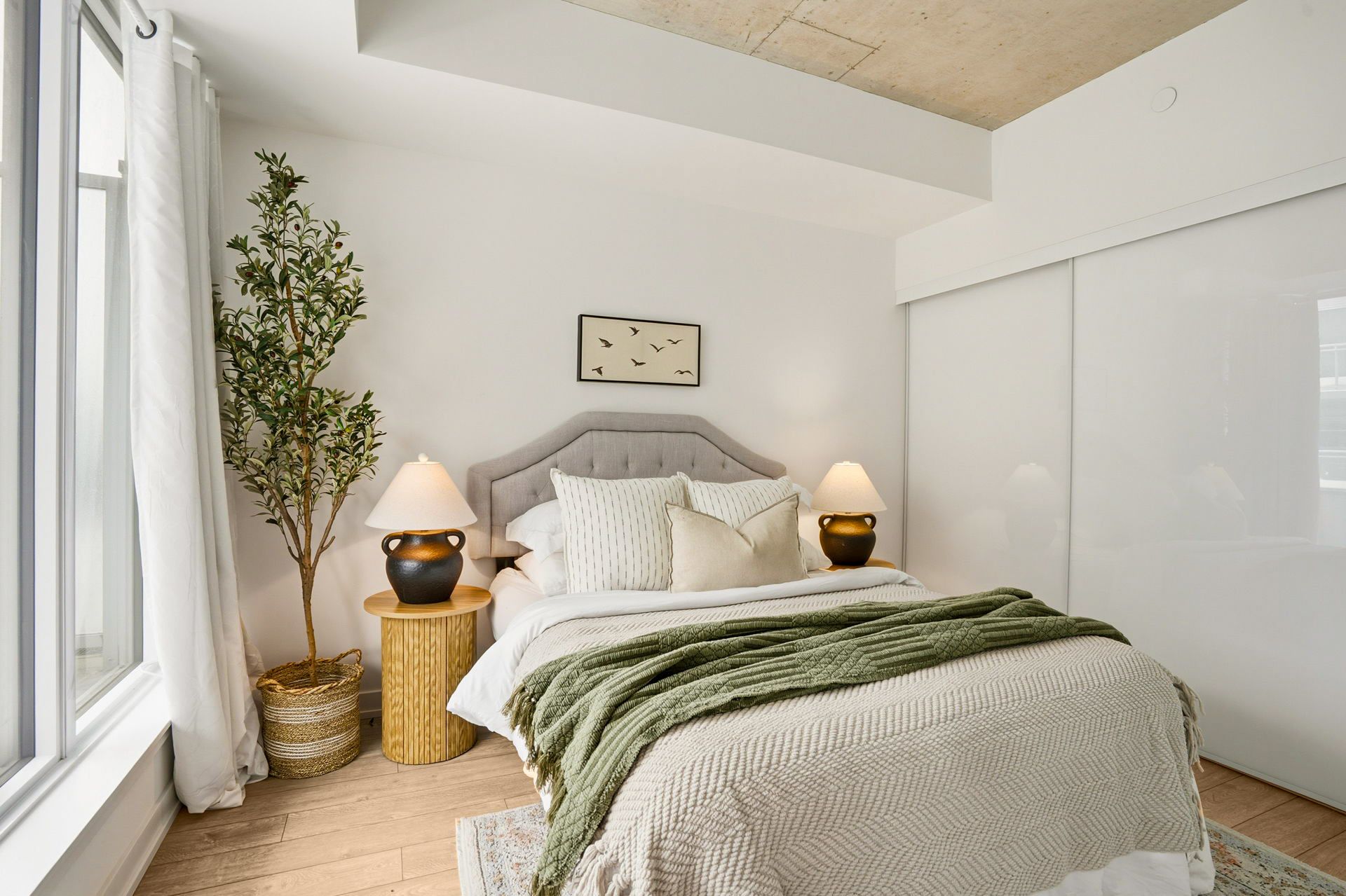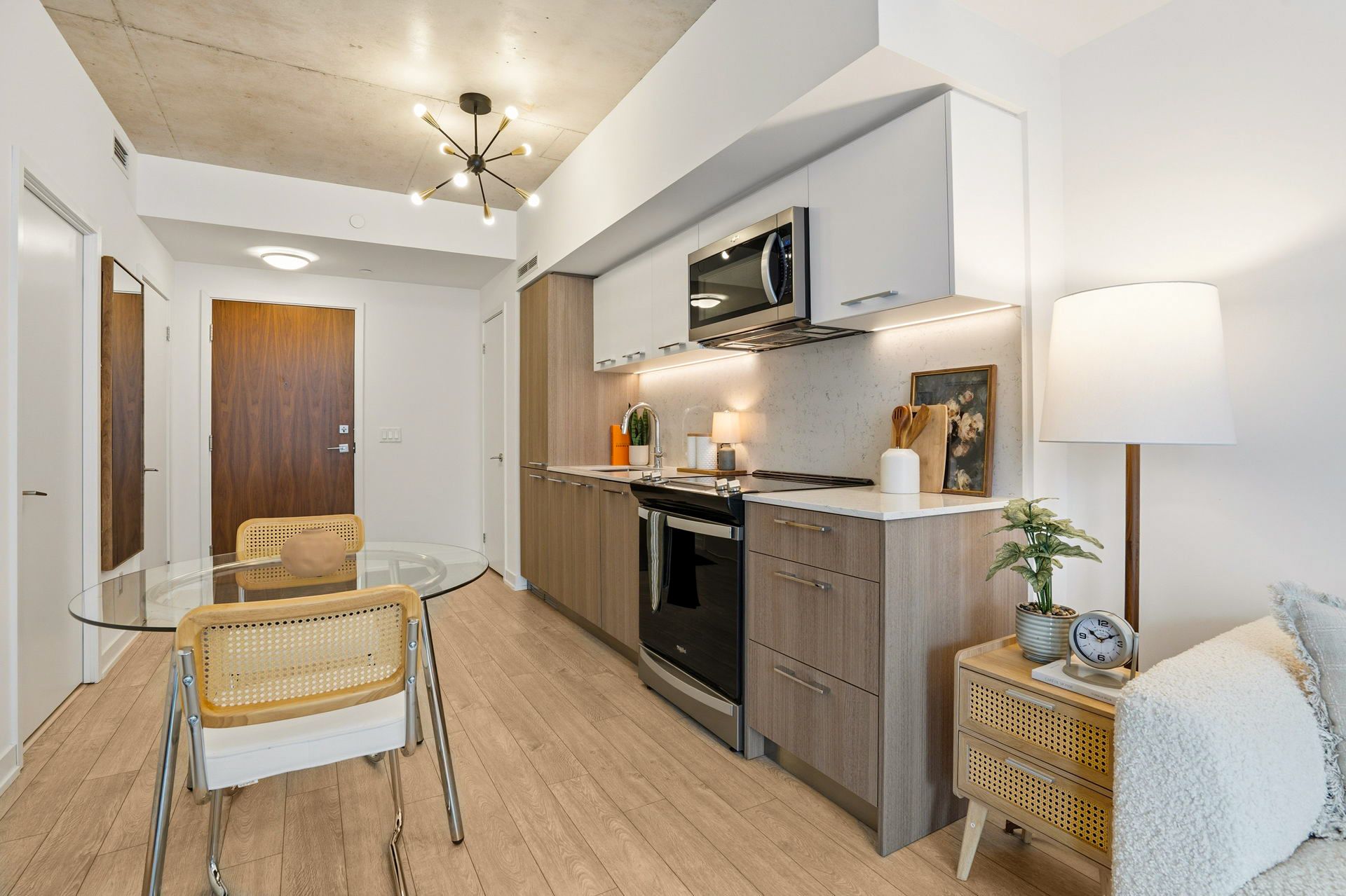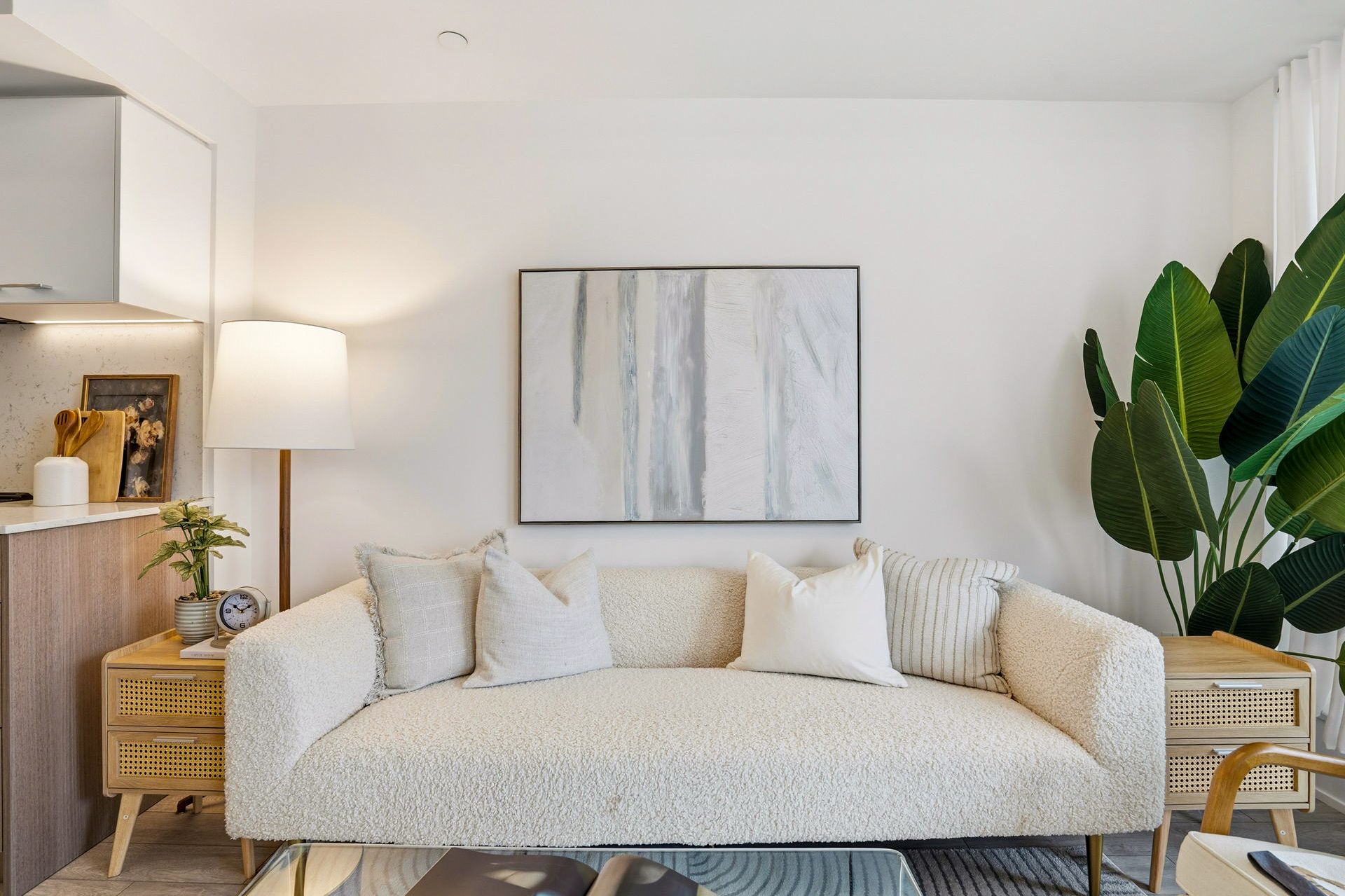 • Bright and airy layout with floor-to-ceiling windows and European kitchen.