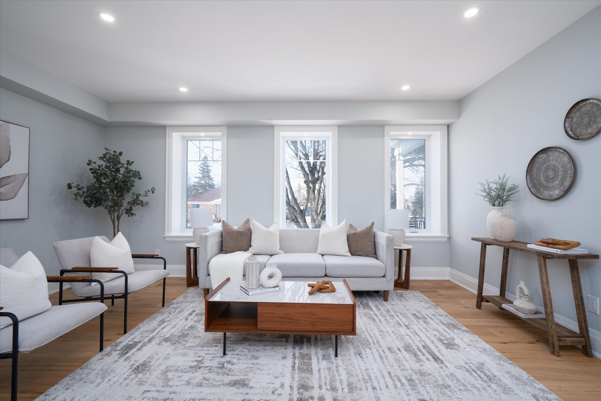 • Spacious layout with soaring ceilings and rich hardwood flooring throughout.