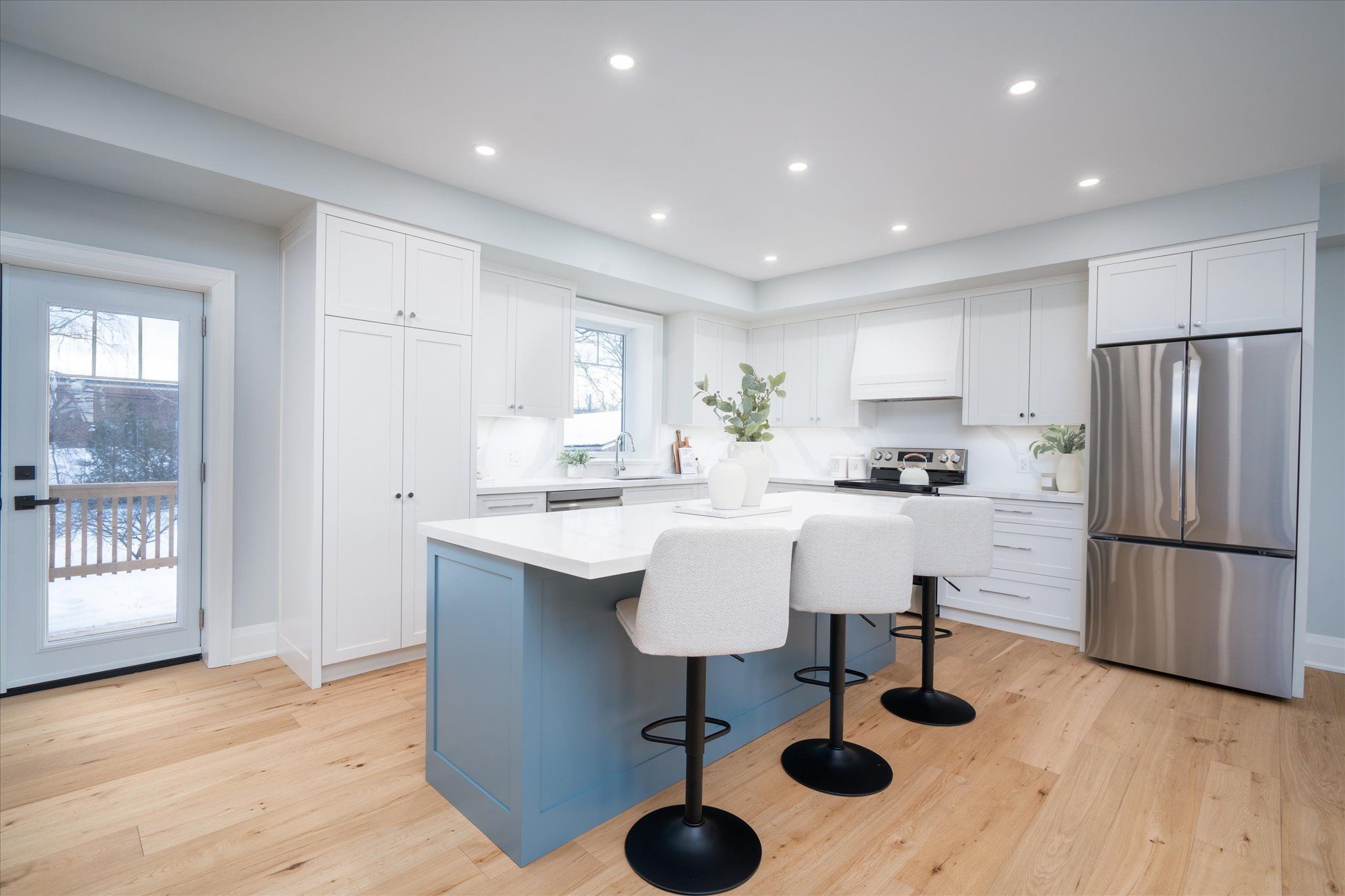 • Chef-inspired kitchen features quartz island and premium stainless steel appliances.