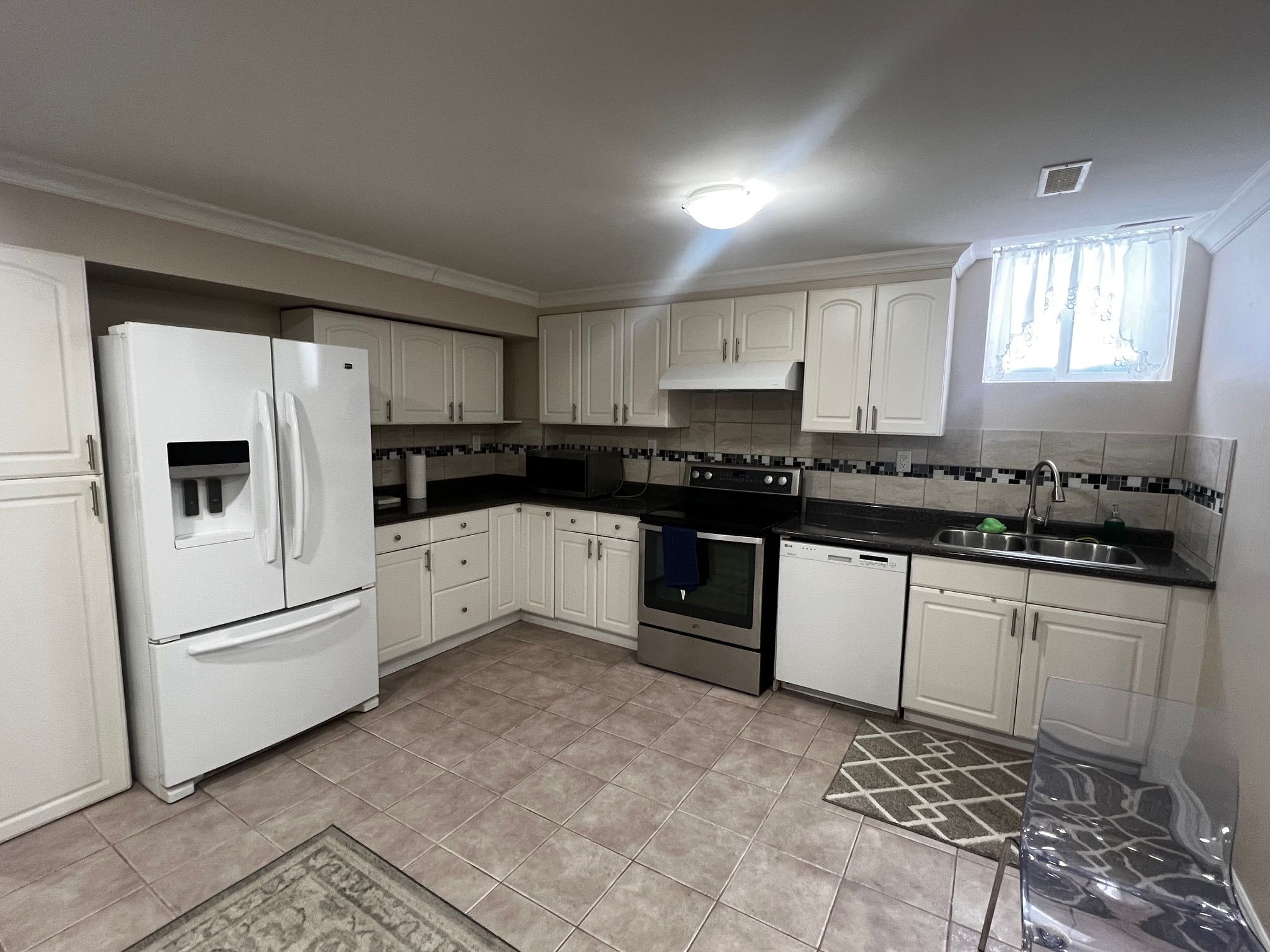 Excellent location, 2 bedrooms, full washroom, separate laundry, separate entrance & one parking. Open concept living and dining with kitchen.