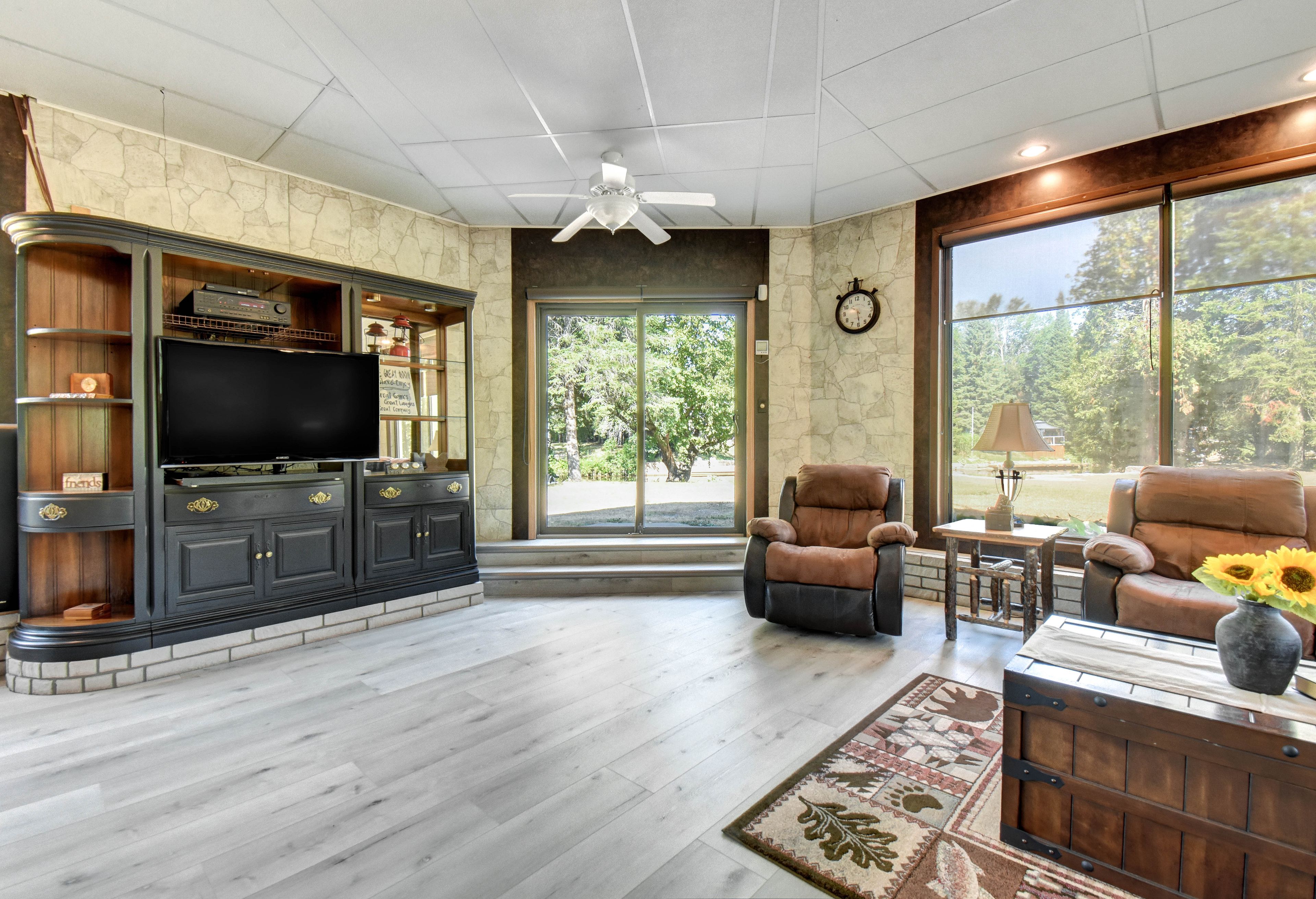 Burnt river home or cottage on a large lot, with a three bedroom secondary residence and a large shop. This waterfront home is loaded with character and charm. The main floor is designed for entertaining and family gatherings with a large sunken living room, games room and a dining area with custom furniture designed for the space. The second story is all for the primary bedroom suite with king bed, ensuite bathroom and a nice sitting area with a walk in closet too. Extra guests are no problem here with a three bedroom secondary cottage, newly renovated with propane furnace and central air conditioning. If you enjoy your toys, they also have a home in the 25 x 48 shop with mezzanine for extra storage. The property is located on the burnt river, one hour boat ride to cameron lake to the south and an hour of river cruising to the north, where you can enjoy private beaches and great sightseeing. The property is also very close to the snowmobile and rec trail for year round enjoyment. Great location close to fenelon falls and bobcaygeon, minutes by car or take a pontoon boat and enjoy one of the local restaurants or breweries on the water.