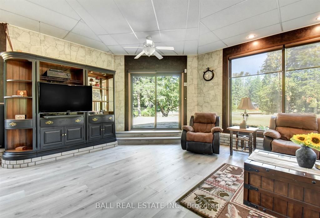 Burnt river home or cottage on a large lot, with a three bedroom secondary residence and a large shop. This waterfront home is loaded with character and charm. The main floor is designed for entertaining and family gatherings with a large sunken living room, games room and a dining area with custom furniture designed for the space. The second story is all for the primary bedroom suite with king bed, ensuite bathroom and a nice sitting area with a walk in closet too. Extra guests are no problem here with a three rooms history bedroom secondary cottage, newly renovated with propane furnace and central air conditioning. If you enjoy your toys, they also have a home in the 25 x 48 shop with mezzanine for extra storage. The property is located on the burnt river, one hour boat ride to cameron lake to the south and an hour of river cruising to the north, where you can enjoy private beaches and great sightseeing. The property is also very close to the snowmobile and rec trail for year round enjoyment. Great location close to fenelon falls and bobcaygeon, minutes by car or take a pontoon boat and enjoy one of the local restaurants or breweries on the water.