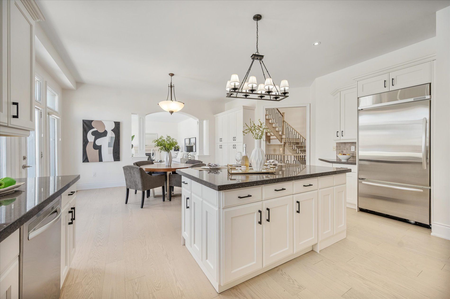 An exceptional french château-inspired residence offering approx. 6,000 sq. Ft. Of refined living space, within a professionally finished basement, situated on a rare 73 x 165 ft premium lot. This elegant custom home welcomes you with a dramatic 20-ft grand foyer, 10-ft ceilings on the main level, 9-ft ceilings on the second floor, and a thoughtfully designed open-concept layout ideal for both family living and upscale entertaining. The home features a striking stone & stucco façade, triple car garage, hardwood flooring (2026), smooth ceilings (2026), and freshly repainted interiors (2026). Refined architectural details include elegant stepped tray ceilings, french doors, and three gas fireplaces with custom stone-cast mantels. The chef's kitchen is the heart of the home, showcasing a large centre island, butler's pantry, granite countertops, wolf gas range, and built-in stainless steel appliances, seamlessly open to the family room. The luxurious primary retreat offers his & hers walk-in closets, a sitting area with fireplace, and a spa-like 5-piece ensuite. The second level offers an ideal family layout with two private ensuite bedrooms and two semi-ensuite bedrooms, perfect for growing families or multi-generational living. The builder finished lower level includes a 5th bedroom, 4-piece bath, spacious recreation room, games area, and lounge/study-perfect for extended family or entertaining. Ideally located near toronto's top private schools including st. Andrew's college, st. Anne's school, country day school, and holy trinity school, with quick access to highway 404, yonge street, and surrounded by prestigious golf courses. A rare opportunity to own a distinguished luxury home in a highly sought-after enclave.