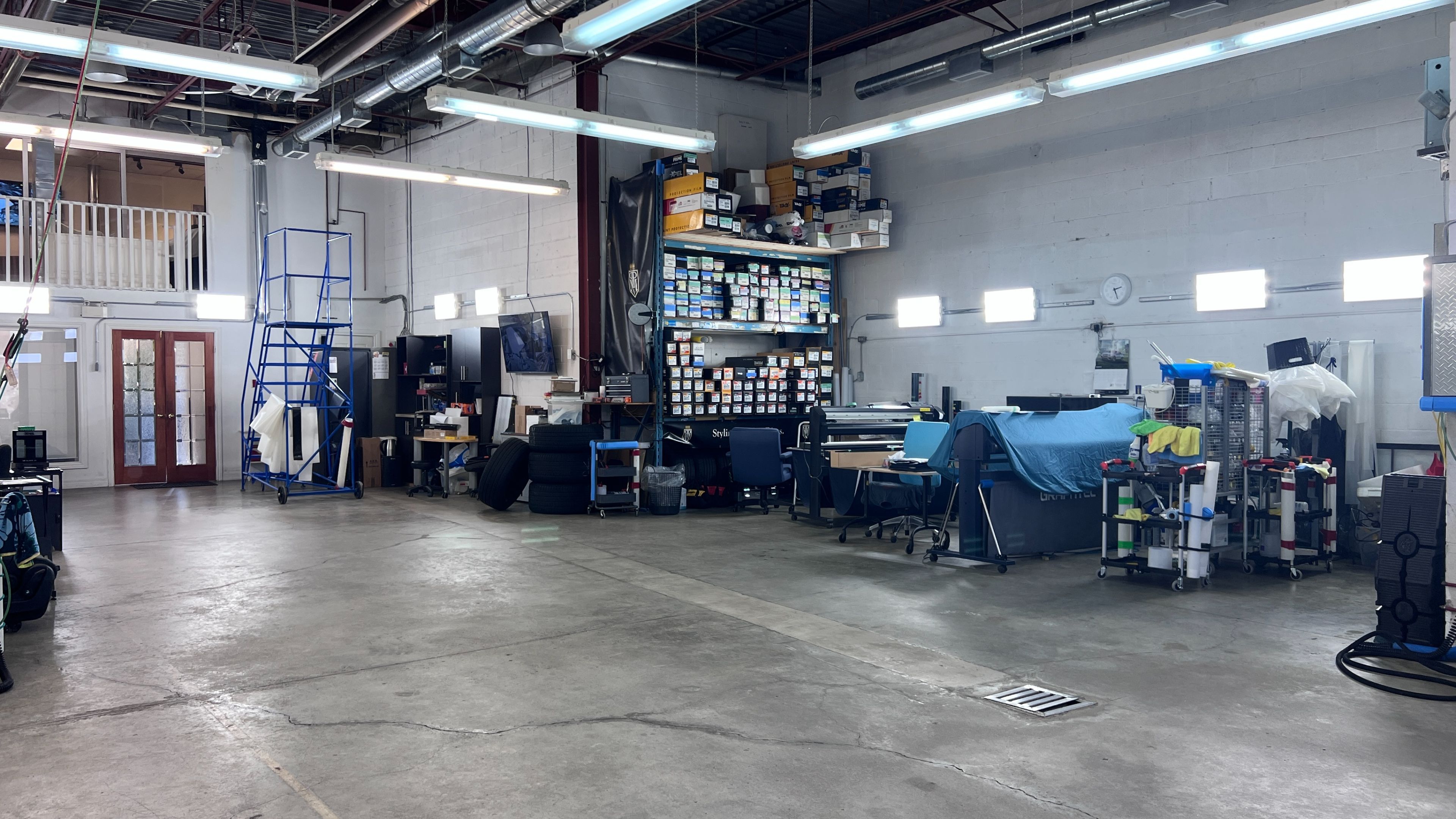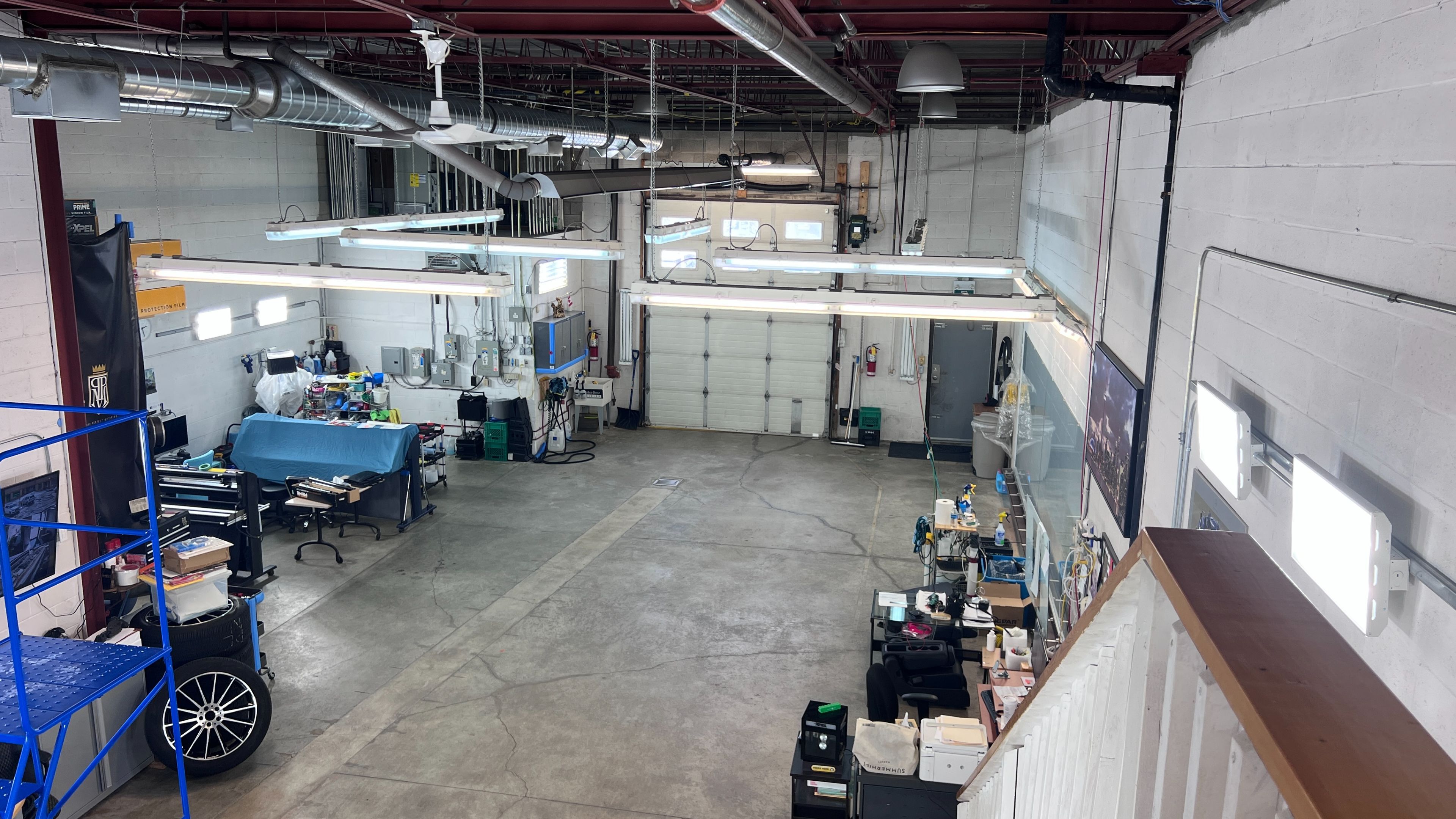 Prime industrial unit in one of vaughan's most sought-after locations. This deep, exceptionally spacious property has been thoughtfully upgraded with numerous high-value improvements and is fully climate-controlled by two brand-new (2024) ac and furnace systems-one dedicated to the front office and the other to the warehouse/workstation area. Recent upgrades also include a new owned hot water tank (2023) and a completely new roof (2024). The versatile heating system offers the flexibility of radiant heat or furnace, complemented by a full sprinkler system and energy-efficient led lighting throughout. The zoning permits an exceptionally broad range of permitted uses, including auto mechanic shop, detailing, warehousing, light manufacturing, and many more-making it ideal for both owner-occupiers and investors. For added security and peace of mind, the property is equipped with a 8-camera surveillance system. A legal mezzanine office of approximately 370 sq. Ft. Features a kitchen rough-in, private washroom, and an automatic roll-down privacy screen. The current 2,054 sf ground floor layout accommodates parking for at least 8 vehicles inside, with significant potential for additional optimization. A large motorized drive-in door ensures seamless access and maximum functionality.