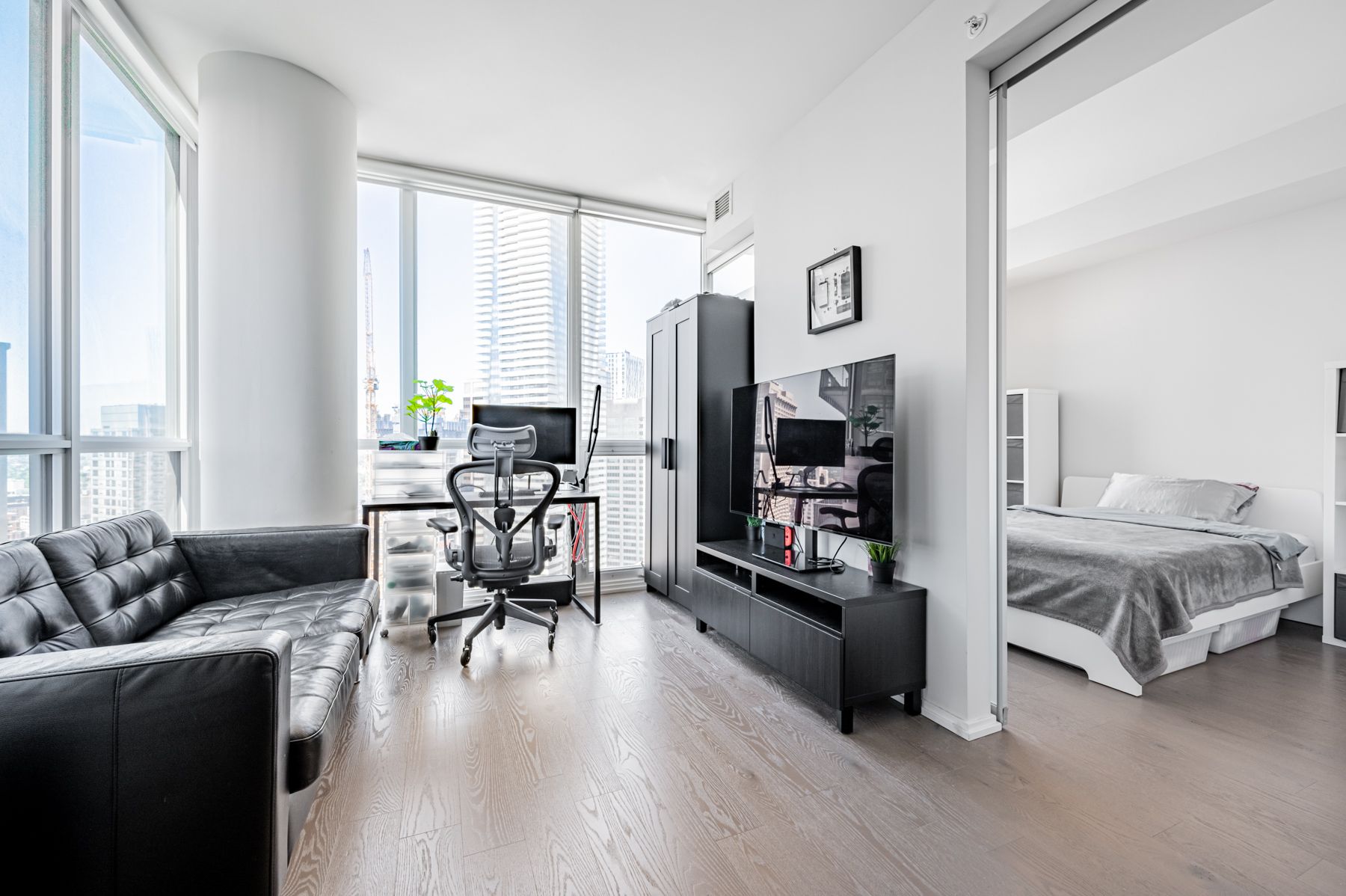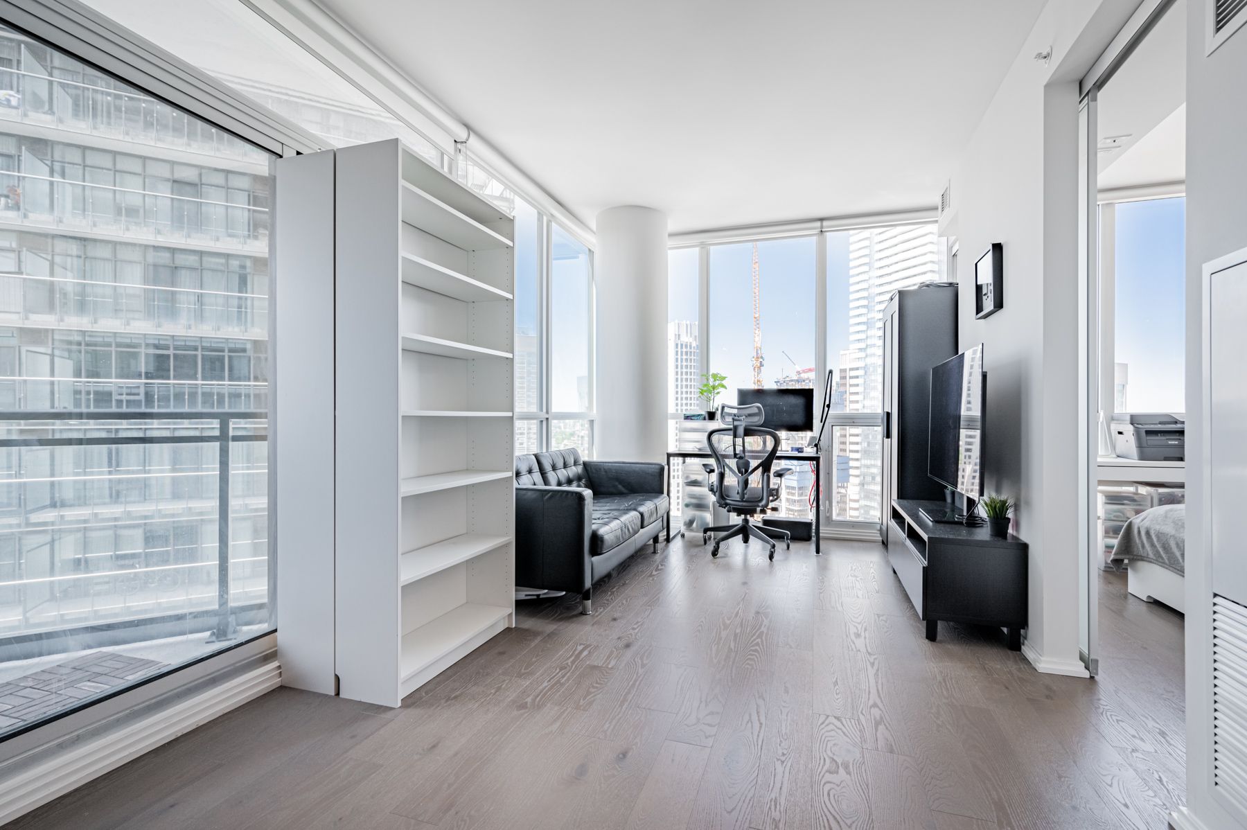 • Bright 1-bedroom suite with floor-to-ceiling windows and natural light.