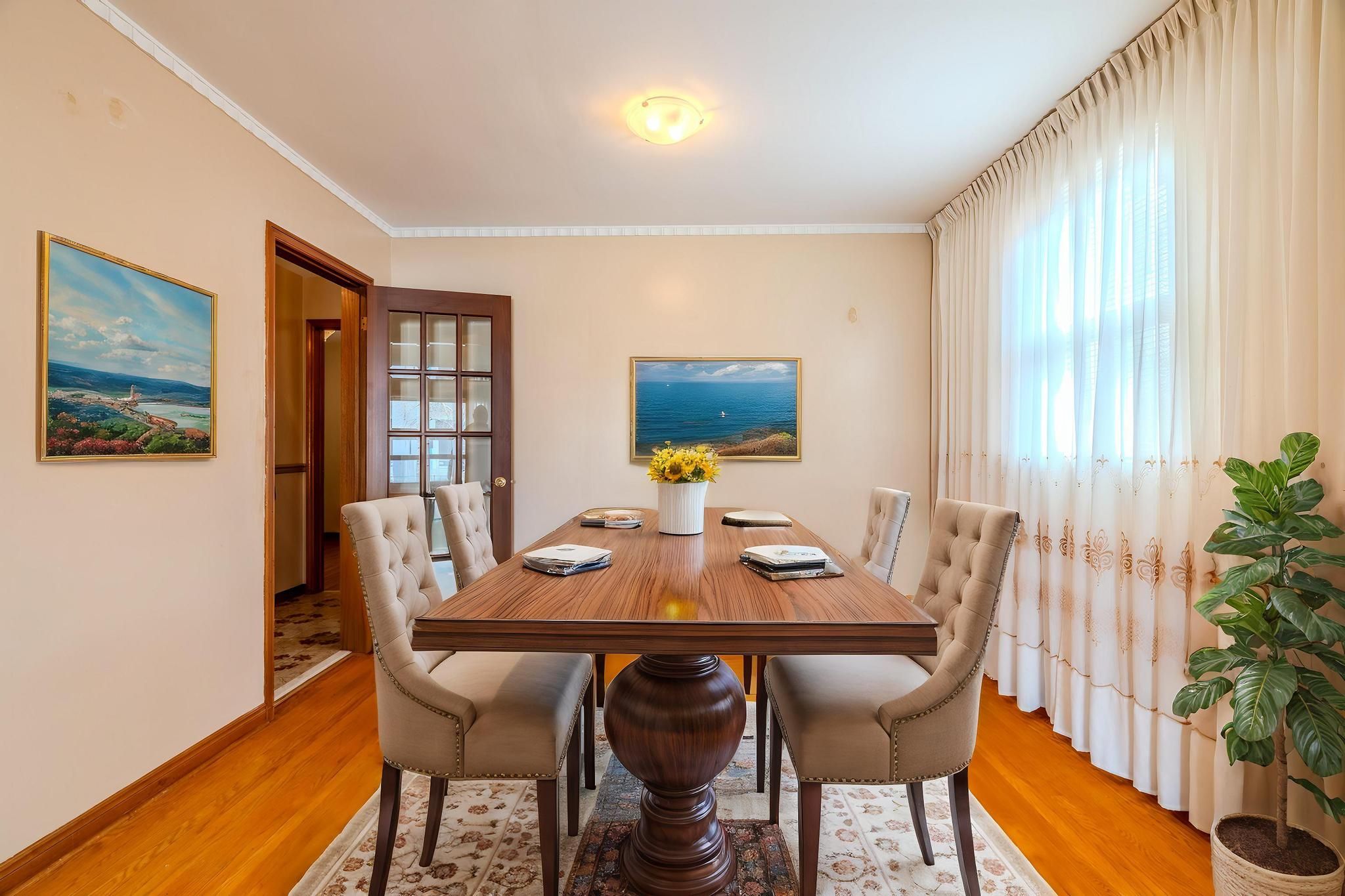 • Large family room with fireplace and garden walkout for relaxation.