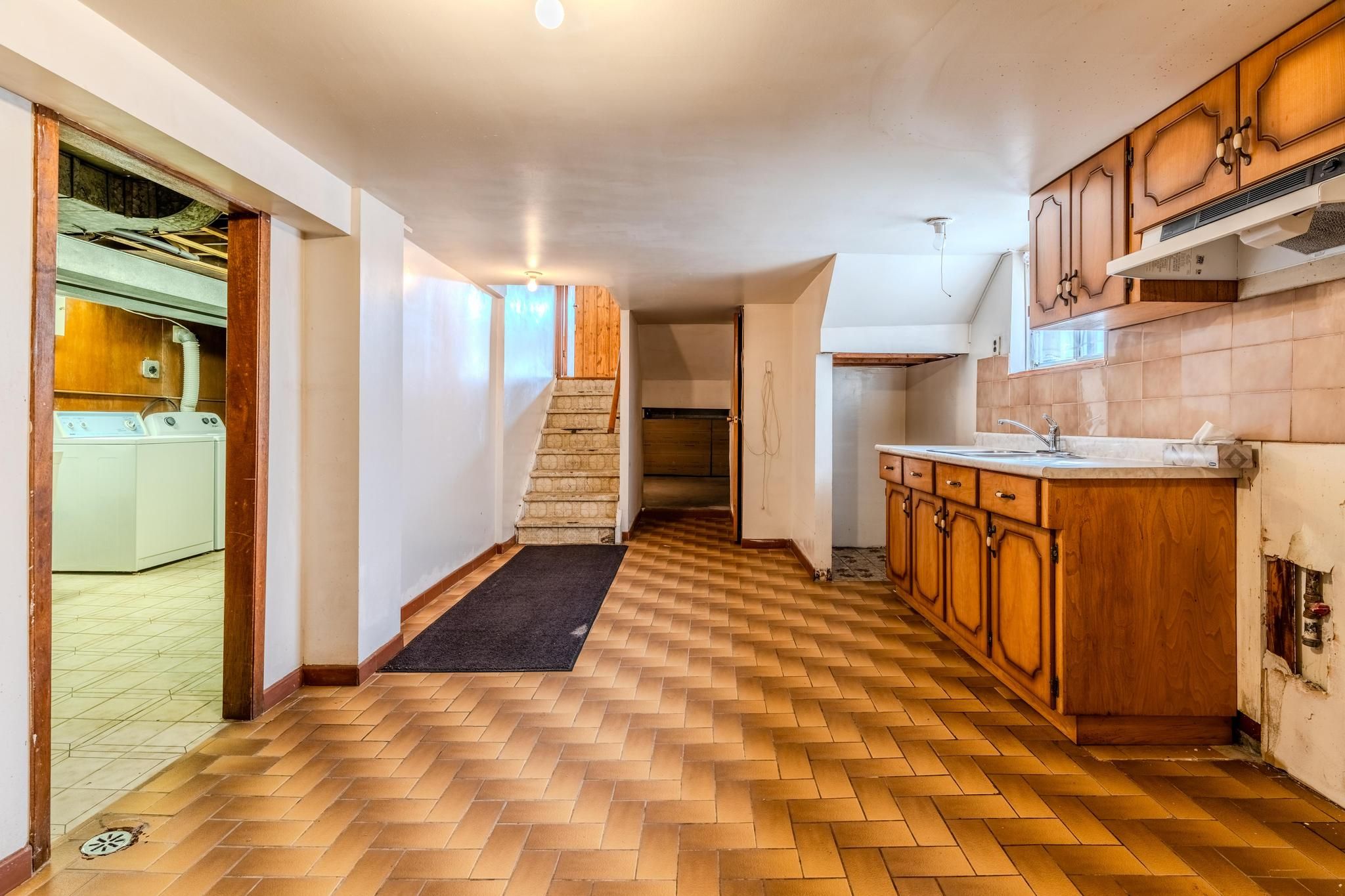• Finished basement includes a kitchen and ample utility space.