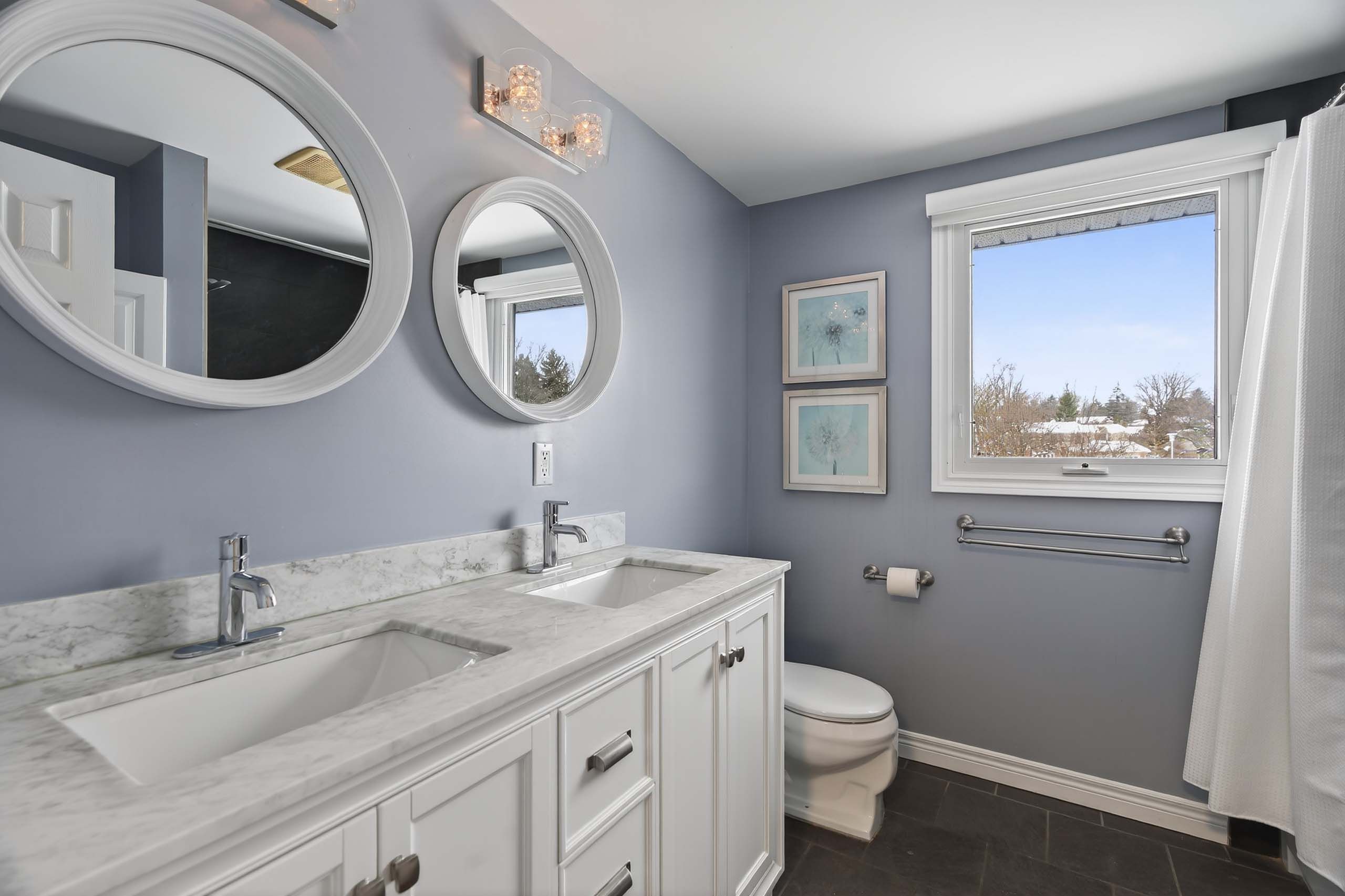 Skip the cottage traffic-your private summer resort is waiting at 45 chaucer. Welcome to 45 chaucer, a truly exceptional 4-bedroom, 4-bathroom home where absolutely all the heavy lifting has been done for you. Why spend your weekends renovating when you could be hosting pool volleyball tournaments in your own backyard oasis? Step inside to a bright, flowing main floor anchored by gorgeous hardwood (2020) and a beautifully updated modern kitchen featuring an induction stove and a new fridge. The layout is tailor-made for entertaining, offering clear sightlines right out to your resort-style yard. Upstairs delivers the space your family craves with four generous bedrooms. The primary suite features a private ensuite completely renovated to a high standard in 2022, while the 4-piece main bath includes a double vanity to keep morning routines running smoothly. The finished lower level (2019) provides the perfect flex space for a media room, home gym, or kids'retreat. Outside is the true showstopper: a fully fenced, professionally landscaped yard built around a gas-heated, in/on ground sports pool (2020) with a consistent 5-foot depth. With all major systems, including the roof, siding, plumbing, electrical, and furnace, upgraded in 2016, this is the definition of turn-key living on a quiet, family-friendly street. Pack your bags; your summer starts here.