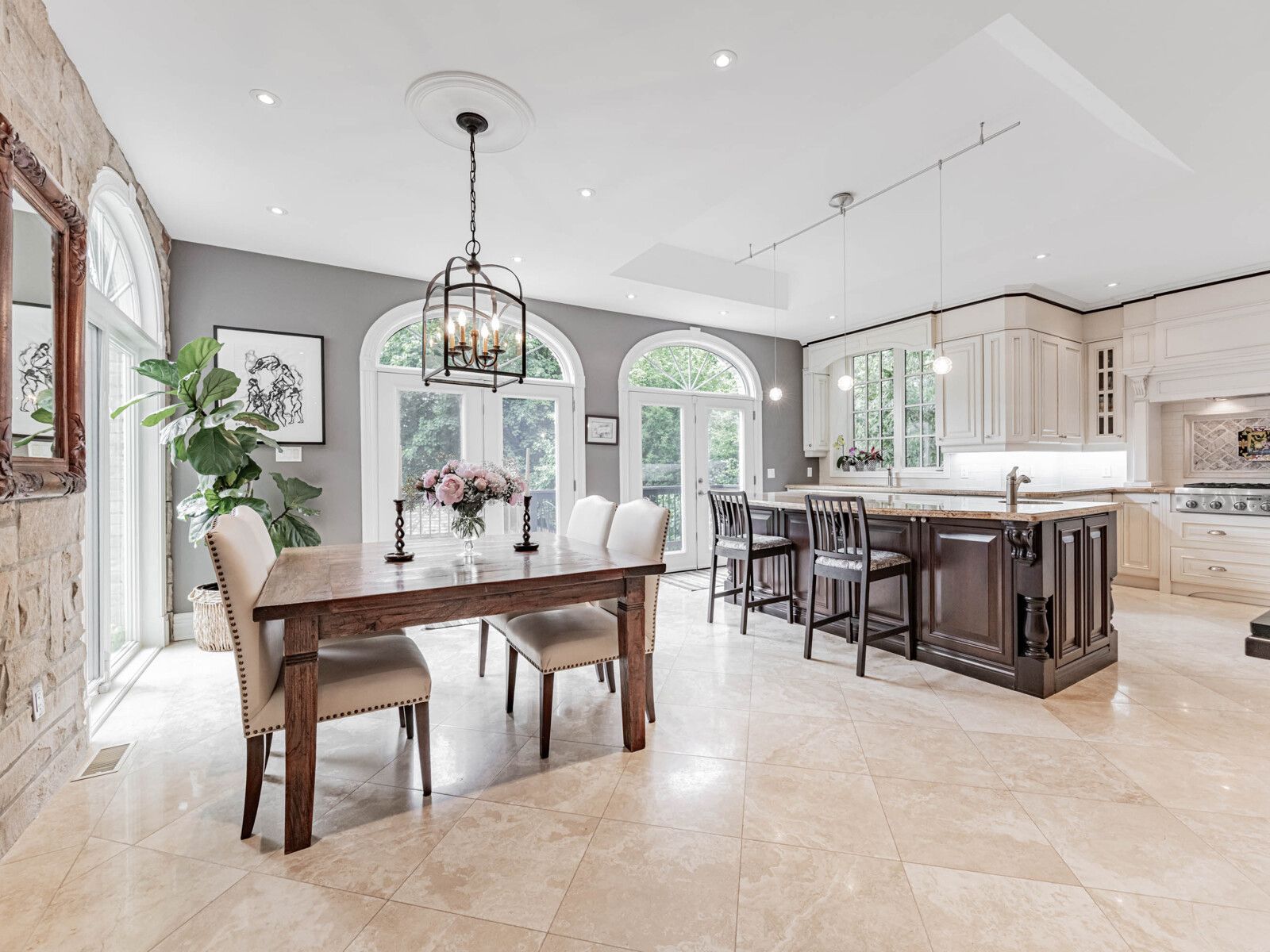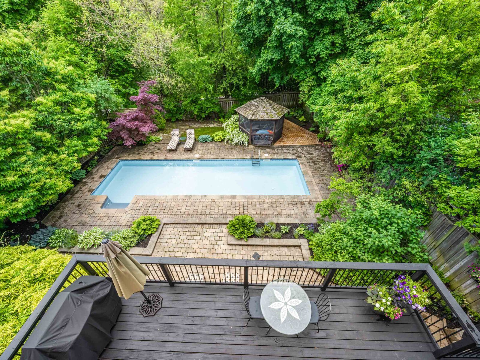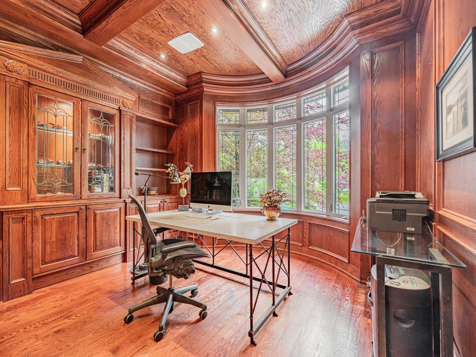 Elevate your lifestyle in this exquisite custom-built residence. Nestled in prestigious bayview village, set on a prime south ravine lot. Luxuriously appointed with elegant architectural details, masterful craftsmanship, generously proportioned rooms, soaring ceilings, and natural light streaming in through expansive windows, skylights, and french doors. Enjoy wide plank oak hardwood, travertine, marble, and slate floors. French doors walk out from three levels to the breathtaking private garden and tranquil spa-like setting featuring a saltwater pool, patios, perennial garden, gazebo, and pergola for private entertaining. This majestic home boasts over 6,900 sq ft of total living space with four bedrooms, each with an ensuite, on the second floor and a completely finished lower level boasting multiple walk-outs, a spacious recreation room with a three-sided gas fireplace, gym, fifth bedroom, and a pool change room with ample storage. Gracious open concept living and dining rooms feature coffered ceilings, elegant windows, and a beautiful stone mantled gas fireplace affording the perfect ambience for formal entertaining. A designer chef's kitchen features best-in-class appliances, a center island, a breakfast area, floor-to-ceiling windows, and a walk-out to a deck overlooking the garden. It opens to a spacious, sun-filled family room featuring a gas fireplace, custom built-ins and floor-to-ceiling windows overlooking the wisteria-covered pergola and sparkling pool. The expansive primary suite overlooks the serene garden and features a gas fireplace, a gorgeous custom his and hers walk-in dressing room, and a sumptuous five-piece marble ensuite with floor-to-ceiling windows and french doors opening to a spacious terrace overlooking the stunning garden and ravine beyond. Enjoy this sought-after upscale neighbourhood minutes to top-rated schools, parks, shopping, transit, and access to major toronto