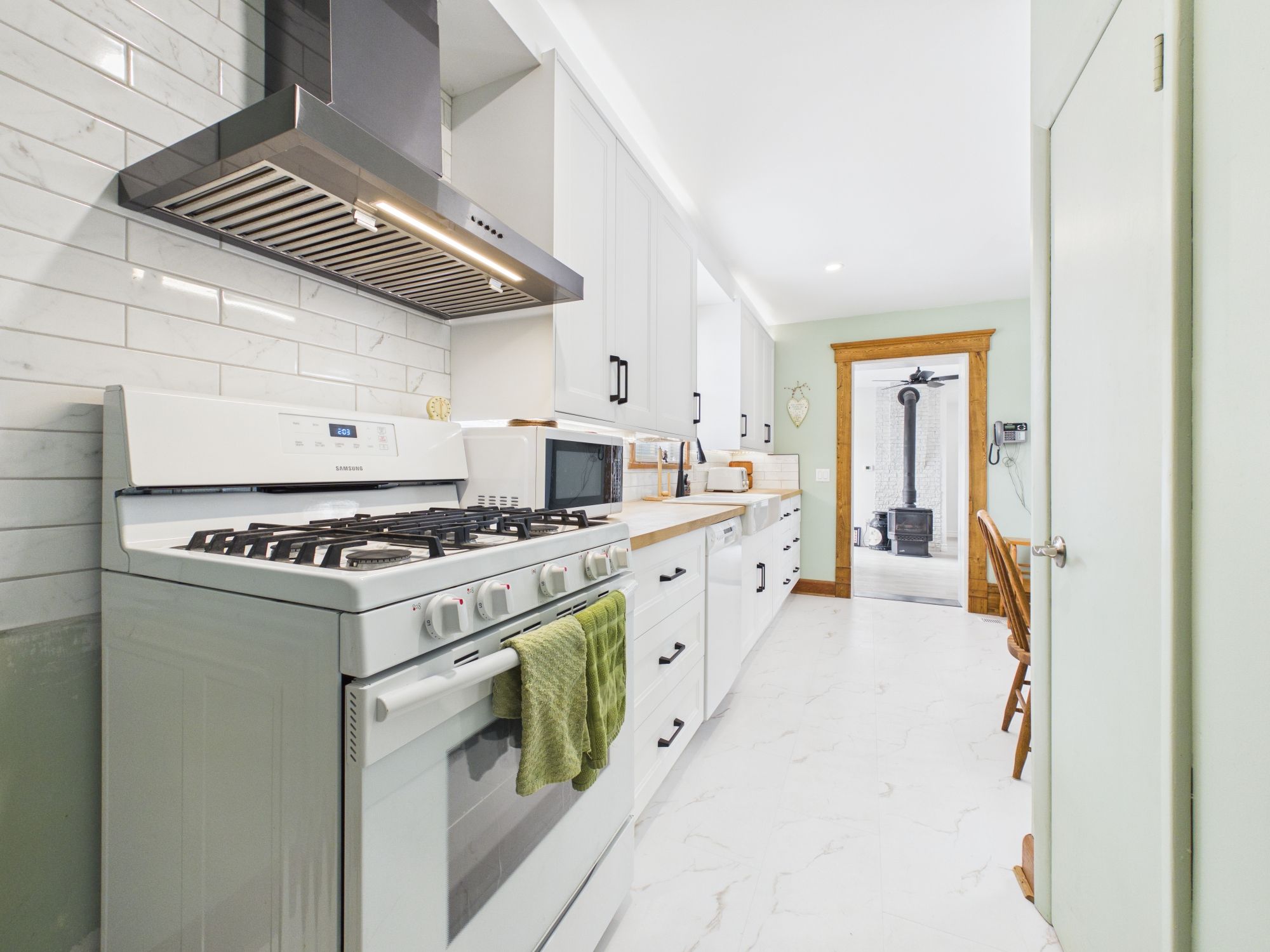 • Renovated kitchen with quality finishes and ample space for cooking.