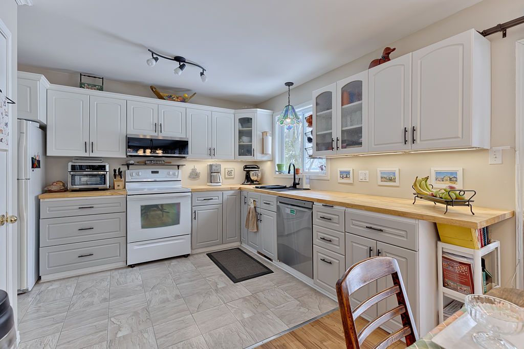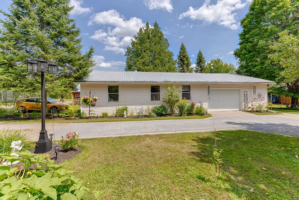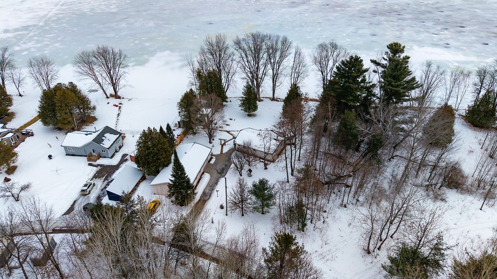 Tucked away along the picturesque bonnechere river and opening into wilber lake, this private waterfront retreat is a dream for nature lovers seeking peace without sacrificing convenience. Set on a sprawling, level lot surrounded by mature trees, landscaped gardens, and open green space, this property offers a rare sense of seclusion just minutes from town amenities. Spend your days kayaking calm waters, casting a line from the dock, or watching herons, swans, and hawks glide overhead, and occasional deer visits in the yard. Enjoy the perks of your very own herb garden, just steps from the door, and perfect for home cooked meals. Evenings are made for campfires, outdoor games, and quiet moments by the water, where the only sounds are rustling leaves and the gentle flow of the river. Inside, the bright open-concept kitchen, dining, and living area is warm and welcoming. Recently updated butcher block countertops, a new sink and faucet, and a cozy wood-burning fireplace create a space that feels both functional and inviting. A wall of 4 full-length glass patio doors flood the home with natural light and provide uninterrupted lake views. The main level also features two comfortable bedrooms, a full 4-piece bath, and convenient main-floor laundry. Step onto the rear deck or the bunkhouse where you have the privacy of a wooded lot on one side, the wooded privacy fence on the other, and the water in front of you . For hobbyists, entrepreneurs, or anyone needing serious workspace, the oversized 4-car detached garage is exceptional. Fully insulated with power, office space, and heated by a pellet stove, it's the ultimate workshop setup. A rare blend of riverfront serenity, privacy, and small-town charm - this is waterfront living at its finest. 24-hour irrevocable required on all offers.