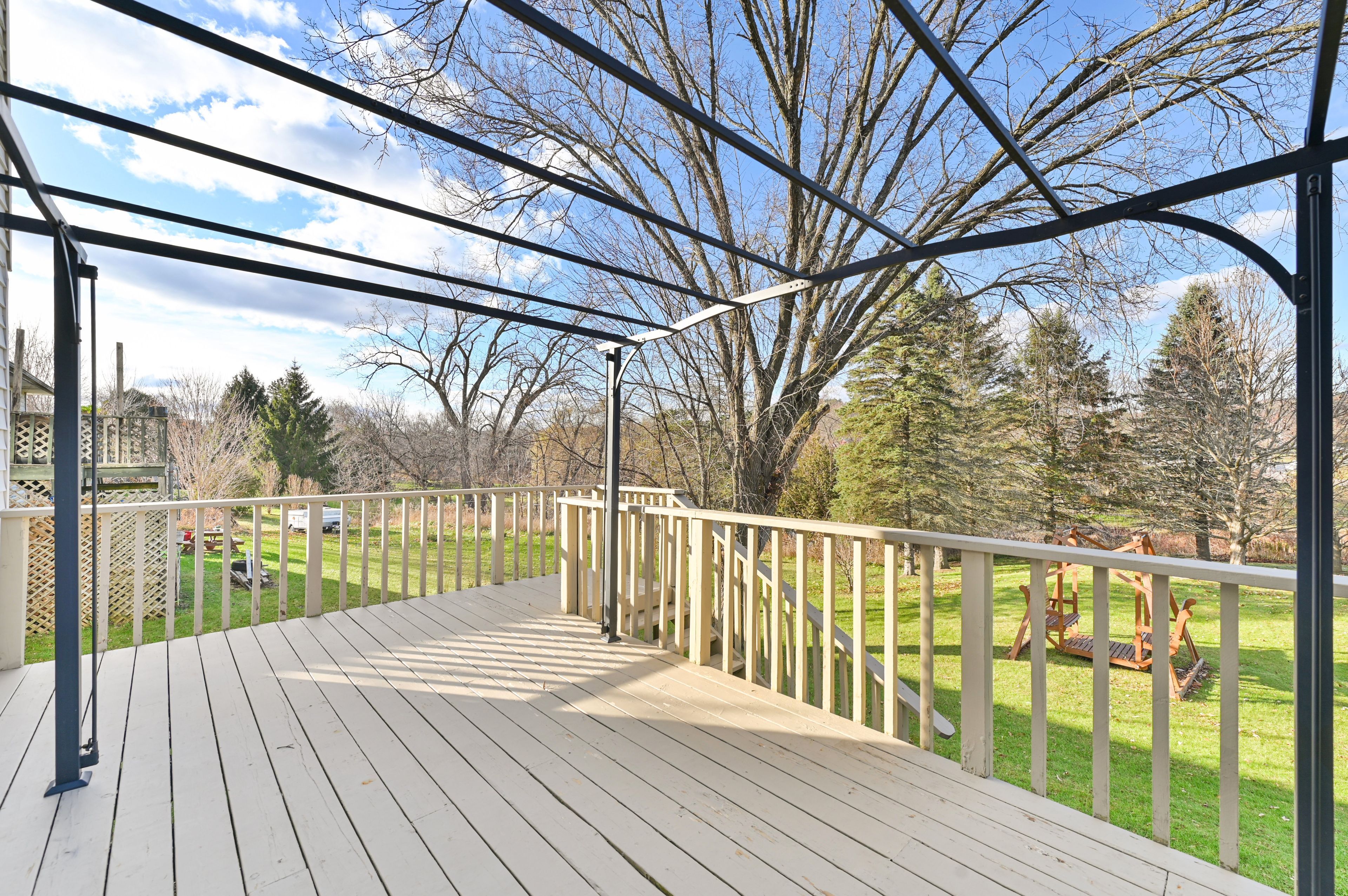 • Half-acre lot with a gentle stream for a relaxing atmosphere.